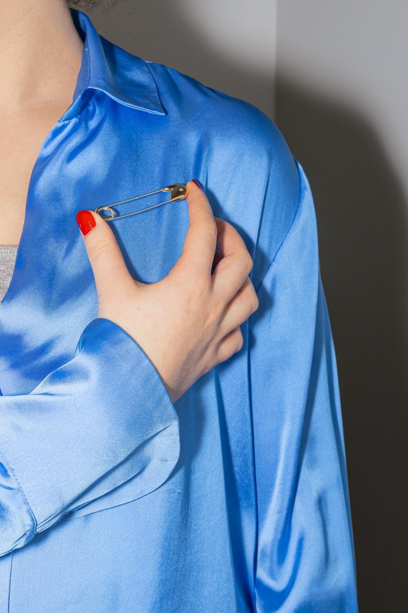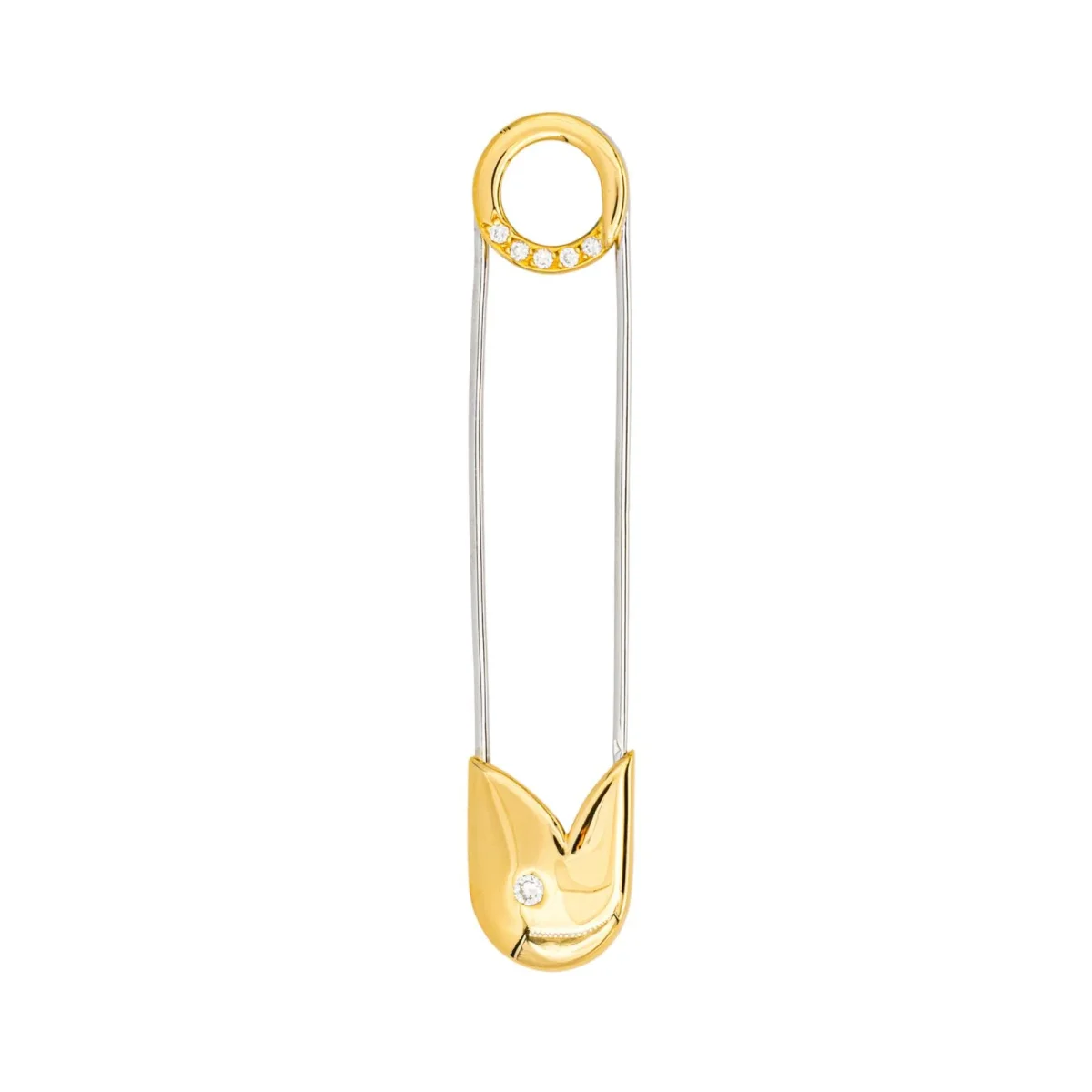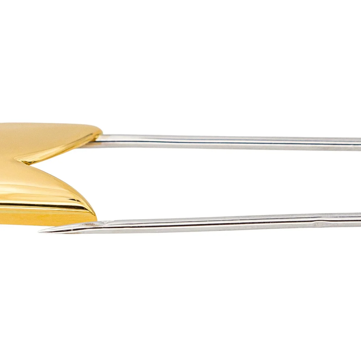 Epingle en or jaune 750 millièmes (18 carats), sertie de 6 diamants, taille brillant, environ G-SI, d’un poids total d’environ 0,16 ct, (un diamant d’un poids d’environ 0,06 ct, 5 diamants d’un poids d’environ 0,02), dimensions : 6,90 cm x 1,35 cm, poids total : 7,20 g, poinçon hibou, très bon état