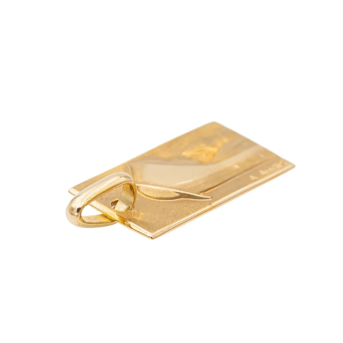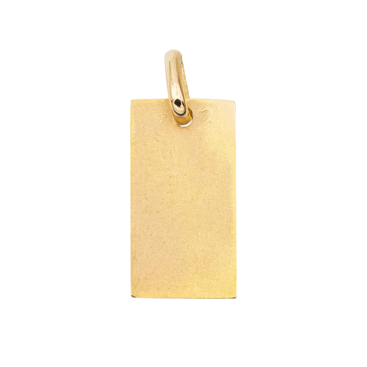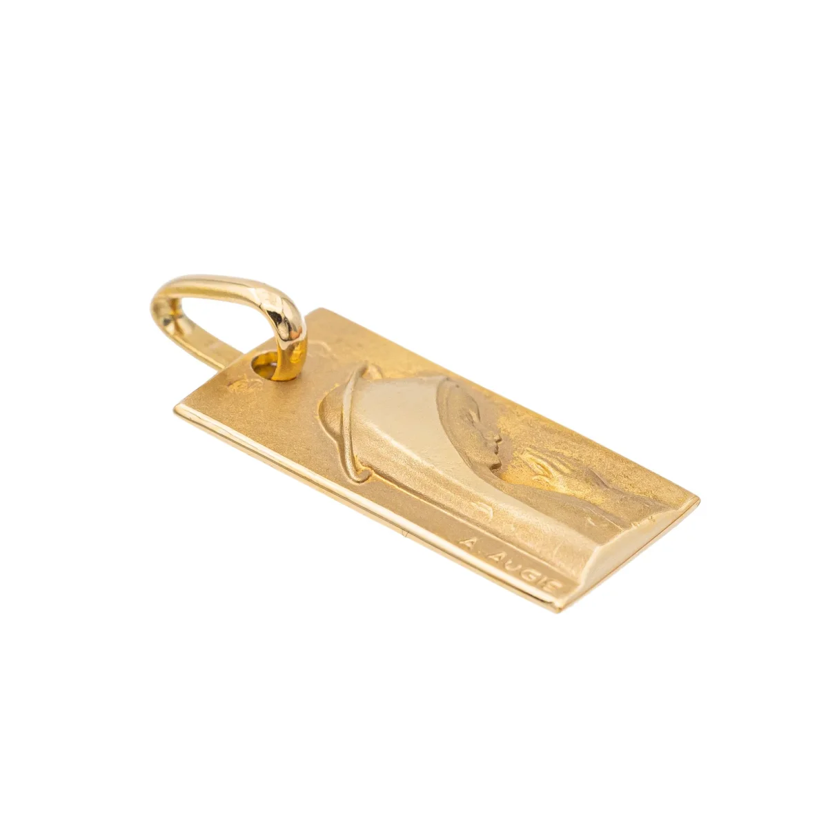 Médaille religieuse rectangulaire, en or jaune 750 millièmes (18 carats),Vierge, signée Augis, largeur: 0,79 cm, longueur: 1,52 cm, poids total: 1,21 g, poinçon tête d’aigle, excellent état