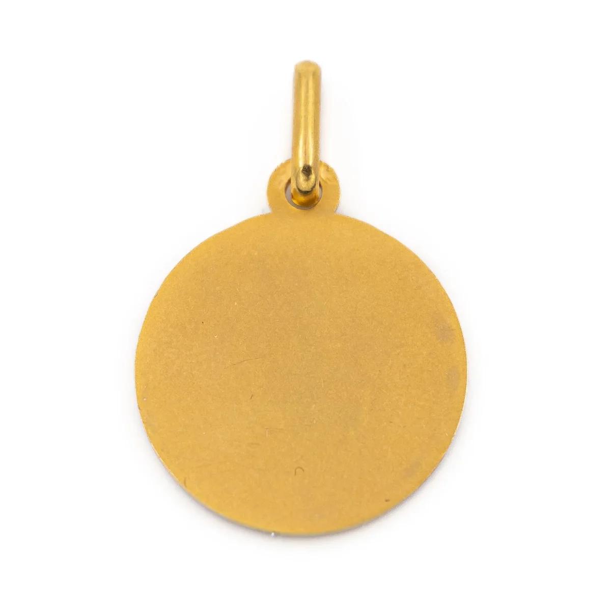 Pendentif religieux en or jaune 750 millièmes (18 carats), figurant la vierge Marie et l’enfant Jésus, dimensions avec la bélière: 2,75 cm x 1,80 cm, poids total: 3,23 g, poinçon tête d’aigle, excellent état