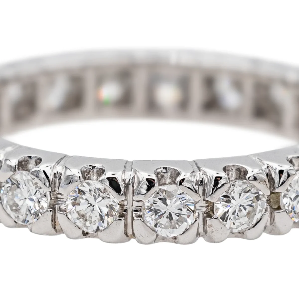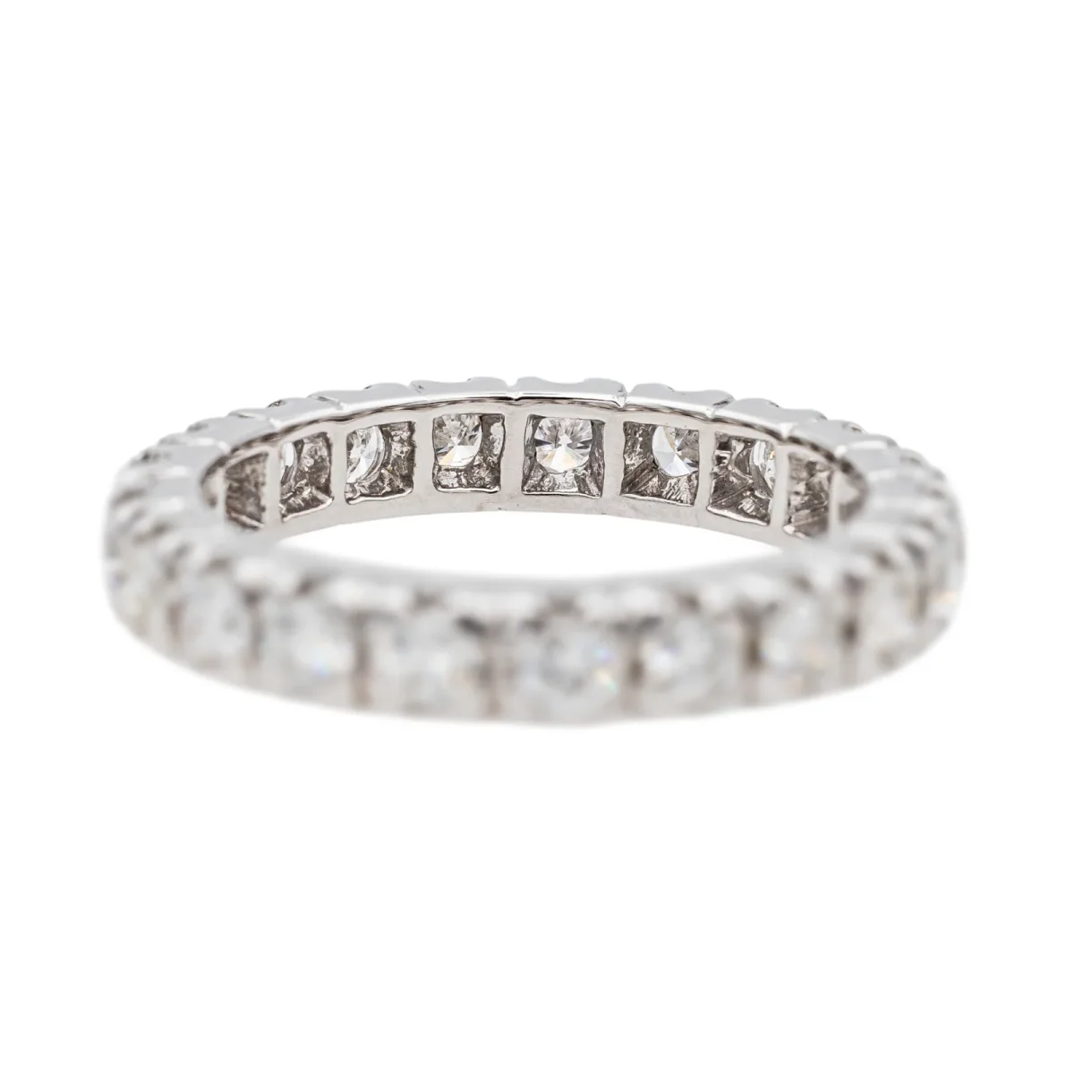 Alliance tour complet en or blanc 750 millièmes (18 carats), sertie de 21 diamants taille brillant environ G-SI, d’environ 0,05 ct chacun, poids total diamants : environ 1,05 cts, largeur sur le dessus : 0,33 cm, tour de doigt : 52, poids total : 4,26 g, poinçon tête d’aigle, excellent état