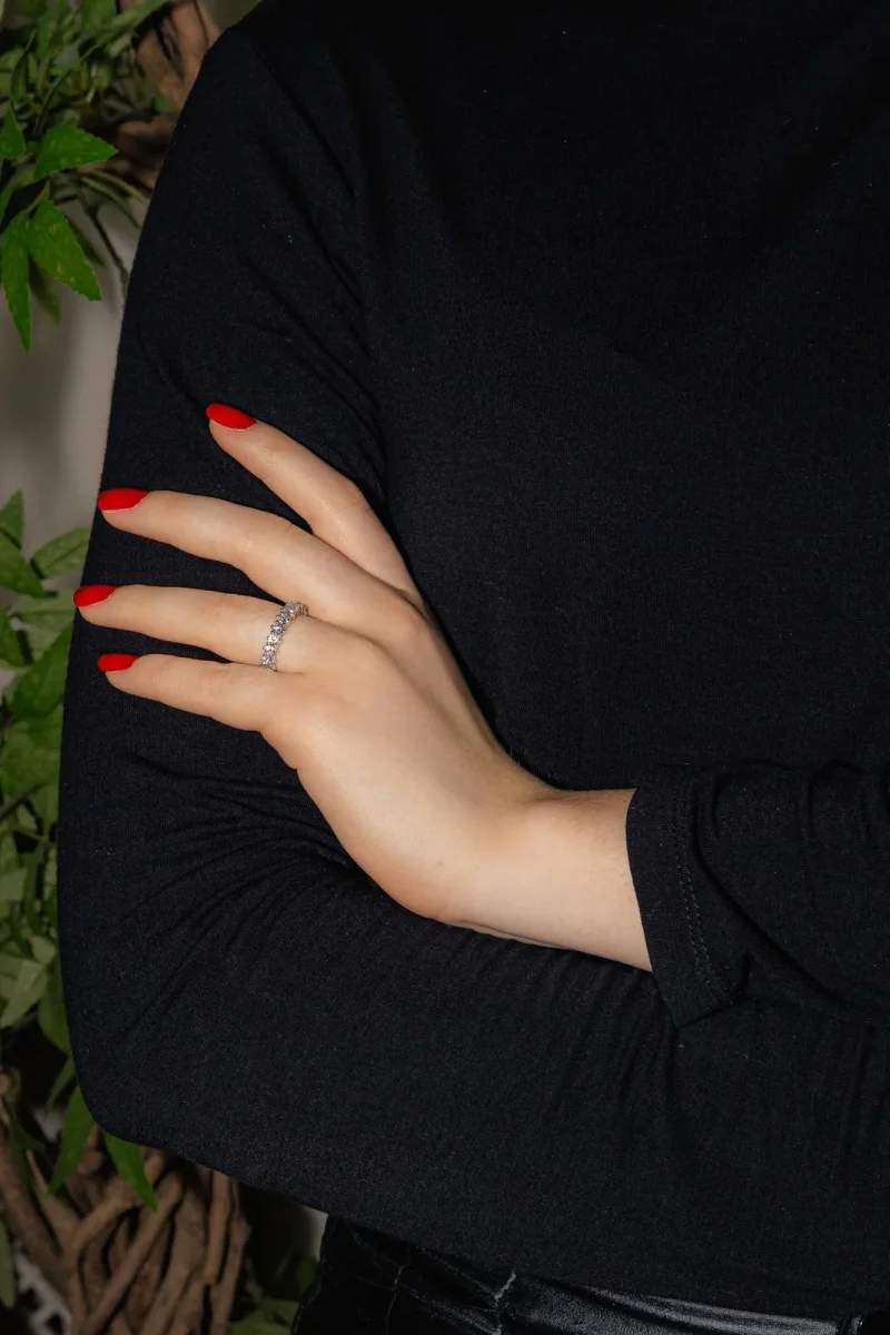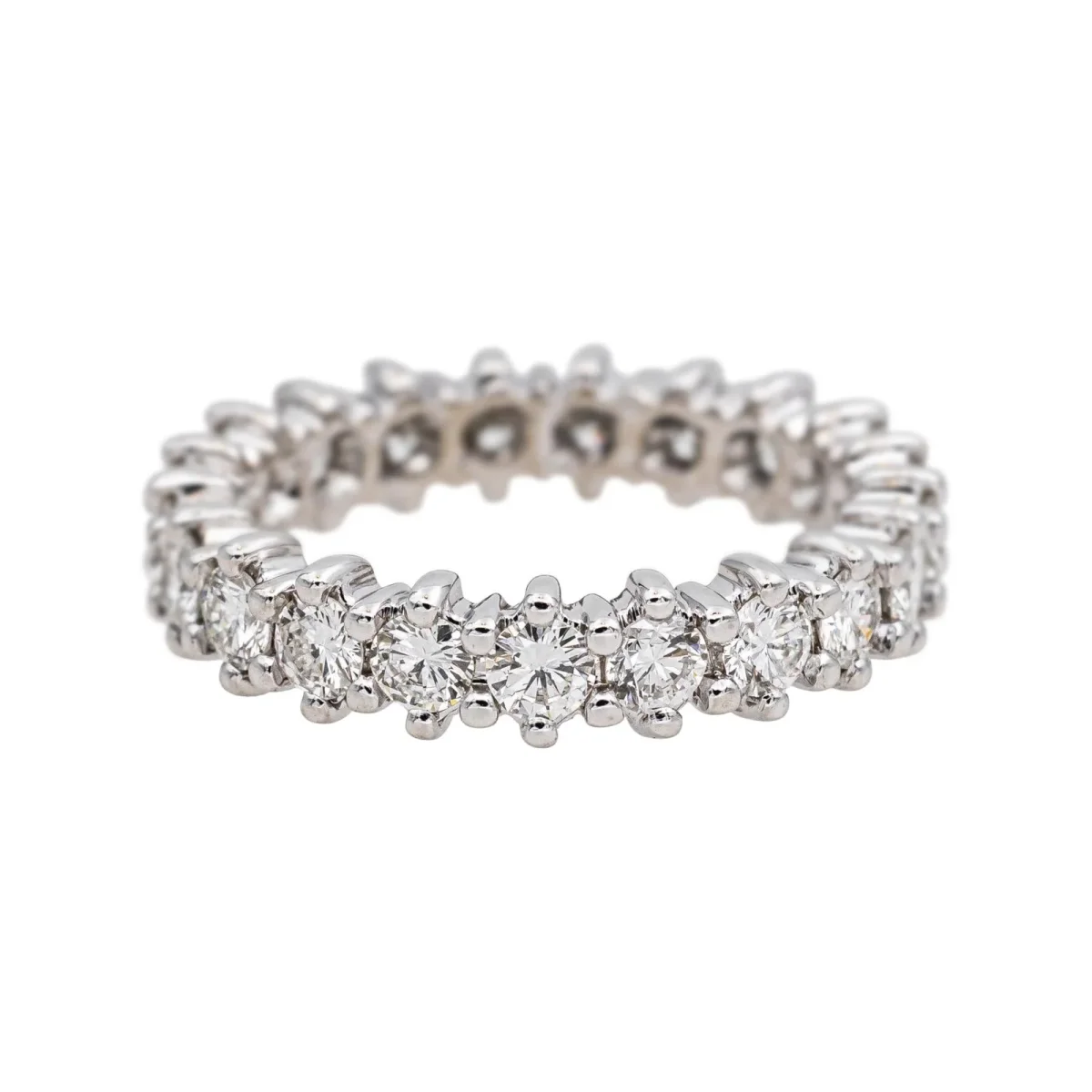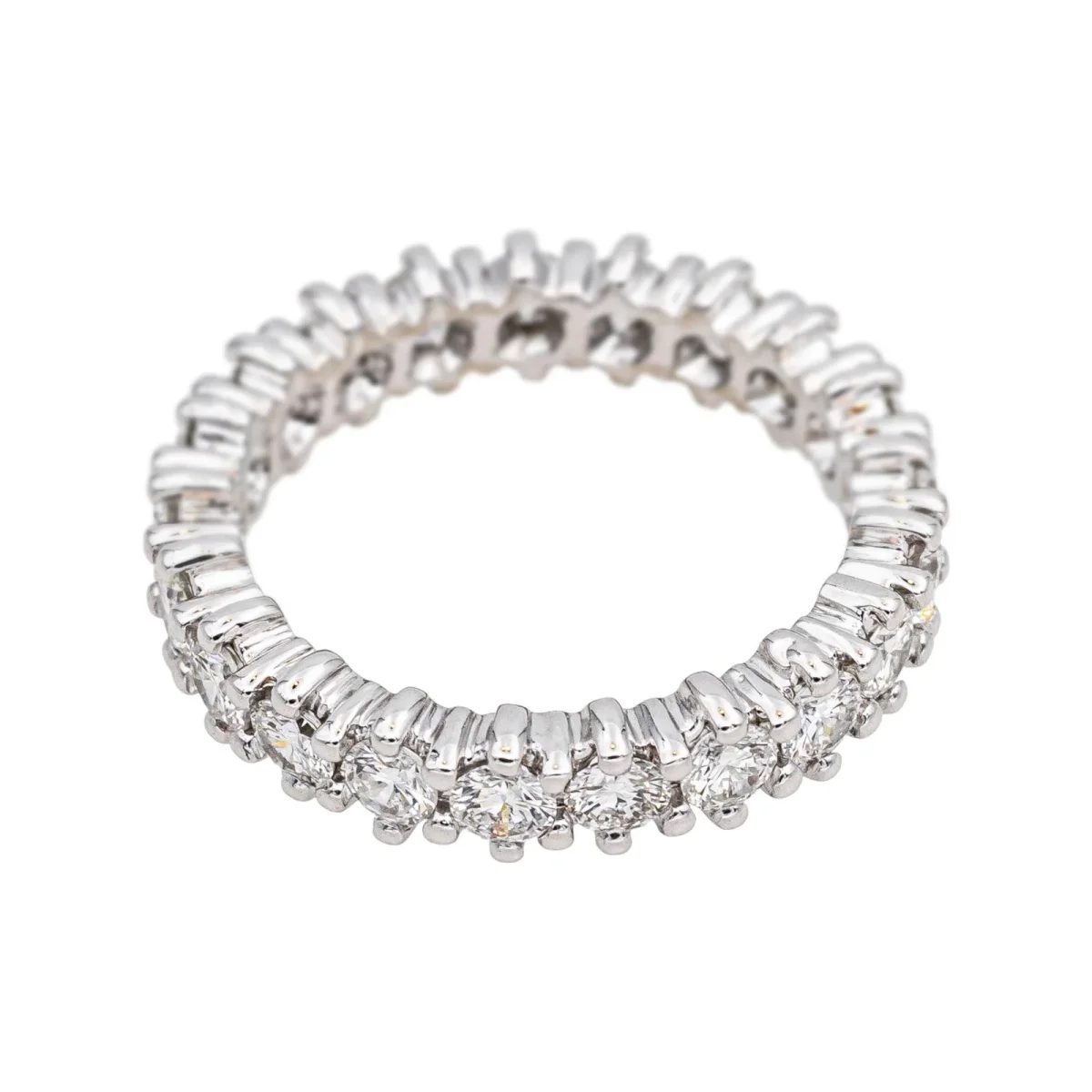 Alliance tour complet en or blanc 750 millièmes (18 carats), sertie de 20 diamants taille brillant environ H-VS, d’environ 0,13 ct chacun, poids total diamants : environ 2,50 cts, largeur sur le dessus : 0,47 cm, tour de doigt : 55, poids total : 5,55 g, poinçon tête d’aigle, excellent état