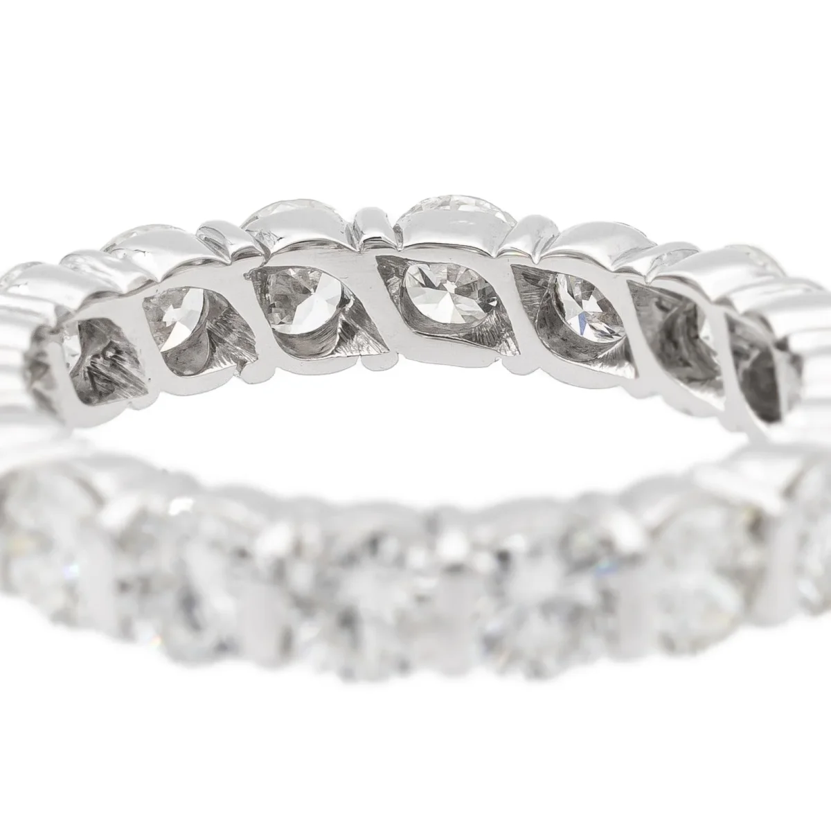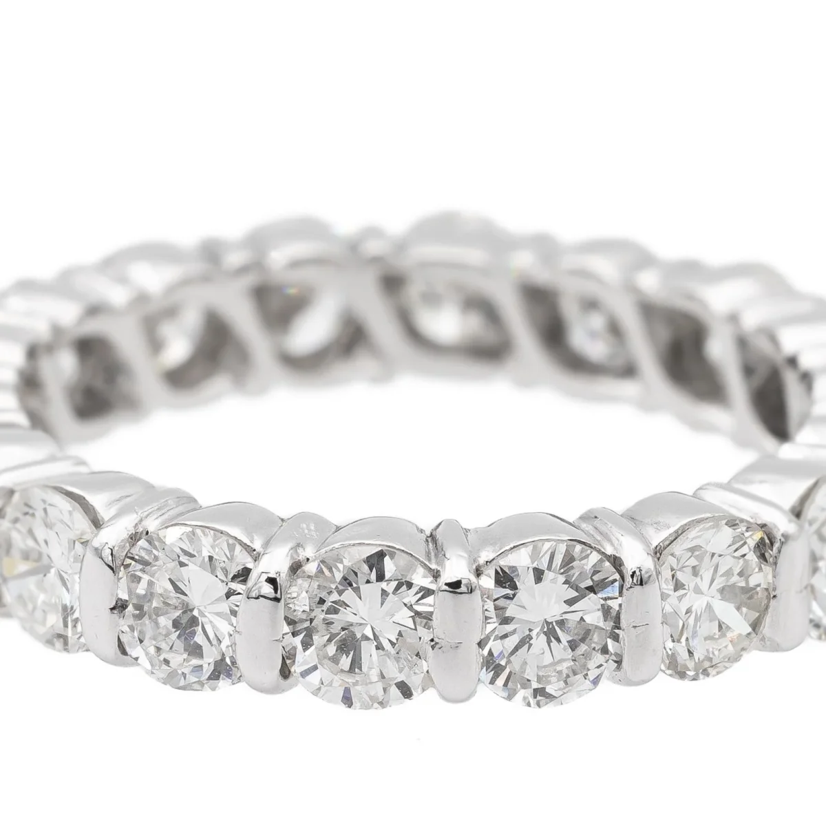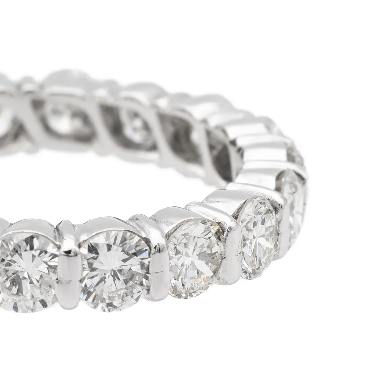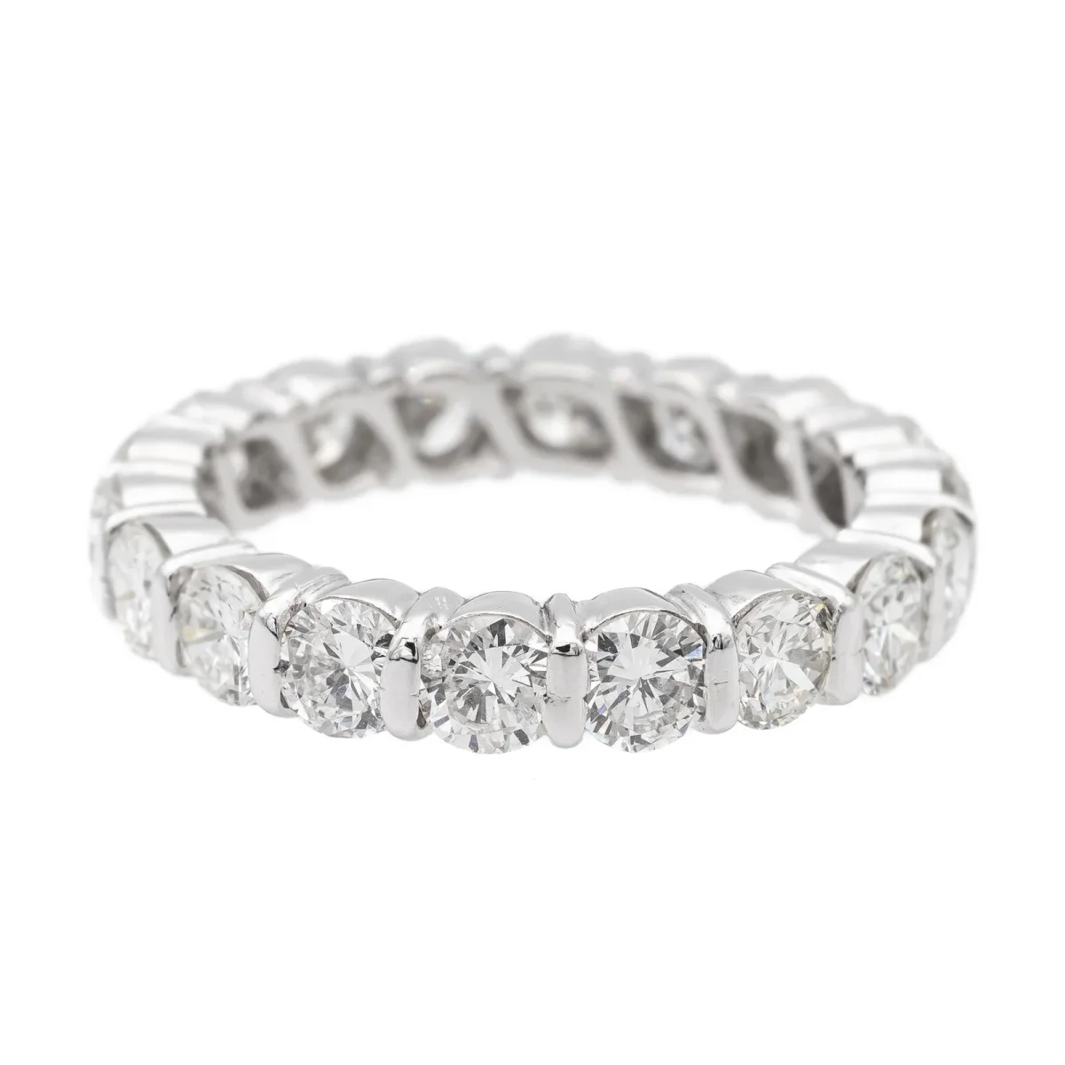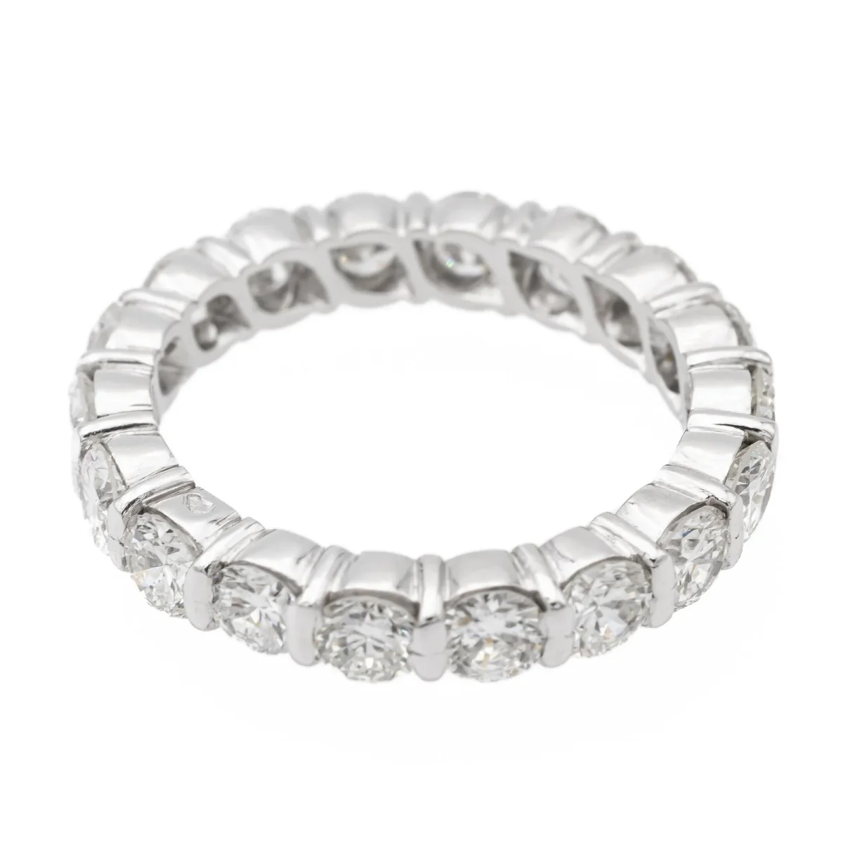 Alliance tour complet en or blanc 750 millièmes (18 carats), sertie de 18 diamants taille brillant environ H-VS, d’environ 0,15 ct chacun, poids total diamants: environ 2,7 cts ct, largeur sur le dessus: 0,34 cm, tour de doigt: 52, poids total: 4,46 g, poinçon tête d’aigle, excellent état