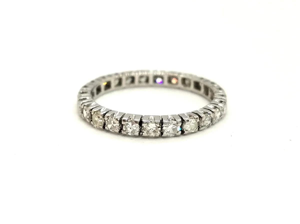 Alliance en or blanc 750 millièmes (18 carats), tour de complet de 25 diamants taille brillant H-VSI pour environ 0,50 ct au total, tour de doigt: 53, largeur: 0,22 cm, poids total: 1,99 g, poinçon tête d’aigle, excellent état