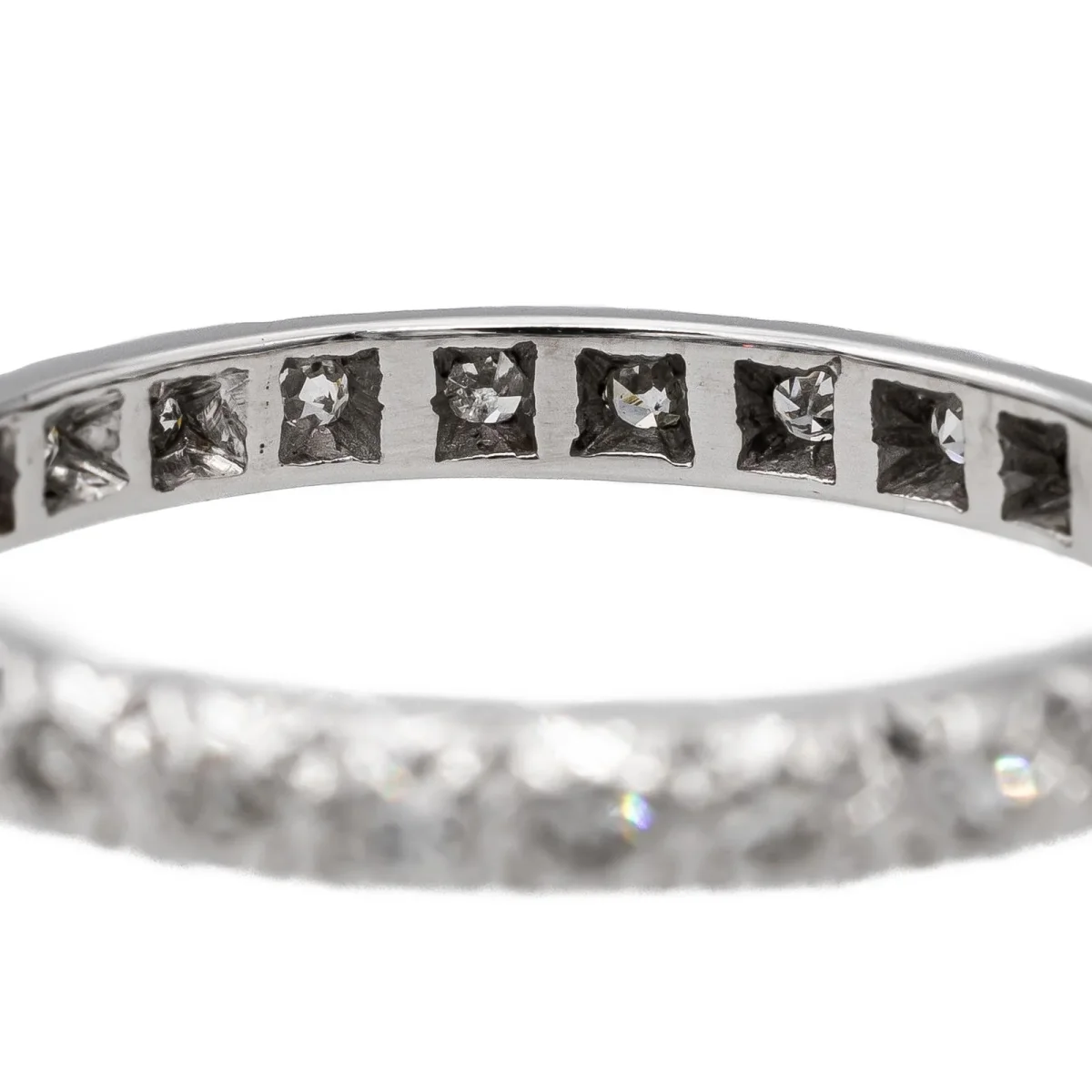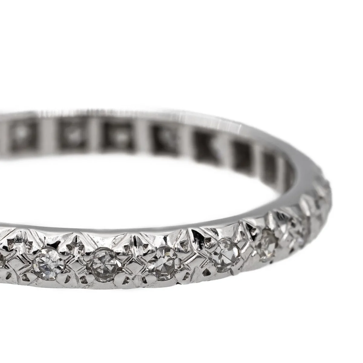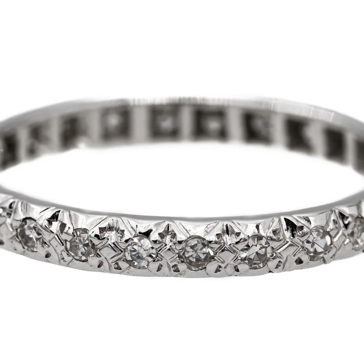 Alliance tour complet en or blanc 750 millièmes (18 carats) testé, sertie de 26 diamants taille huit/huit estimés H/SI, d’environ 0,02 ct chacun, poids total diamants: environ 0,52 ct, largeur sur le dessus: 0,24 cm, tour de doigt: 57, poids total: 2,17 g, excellent état