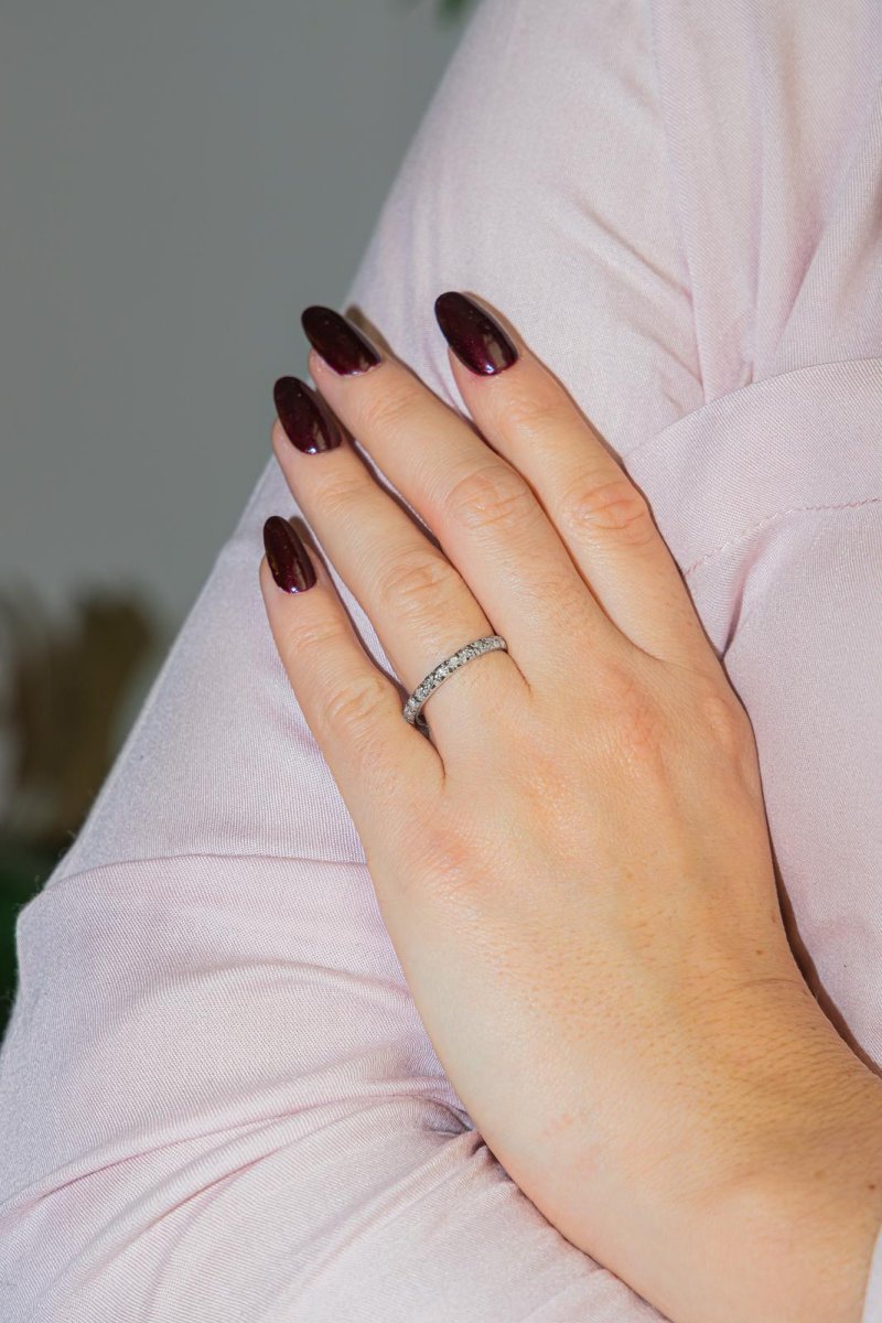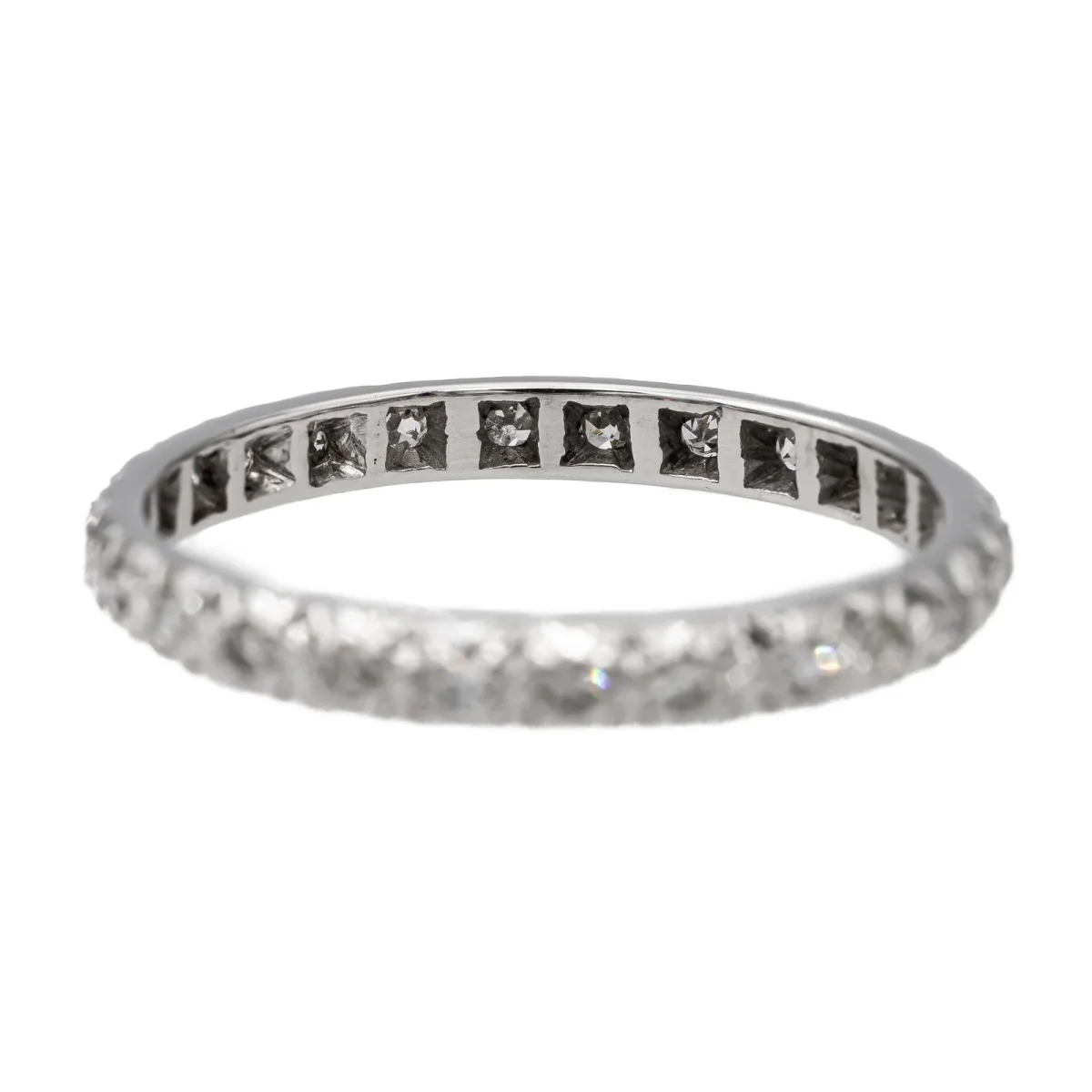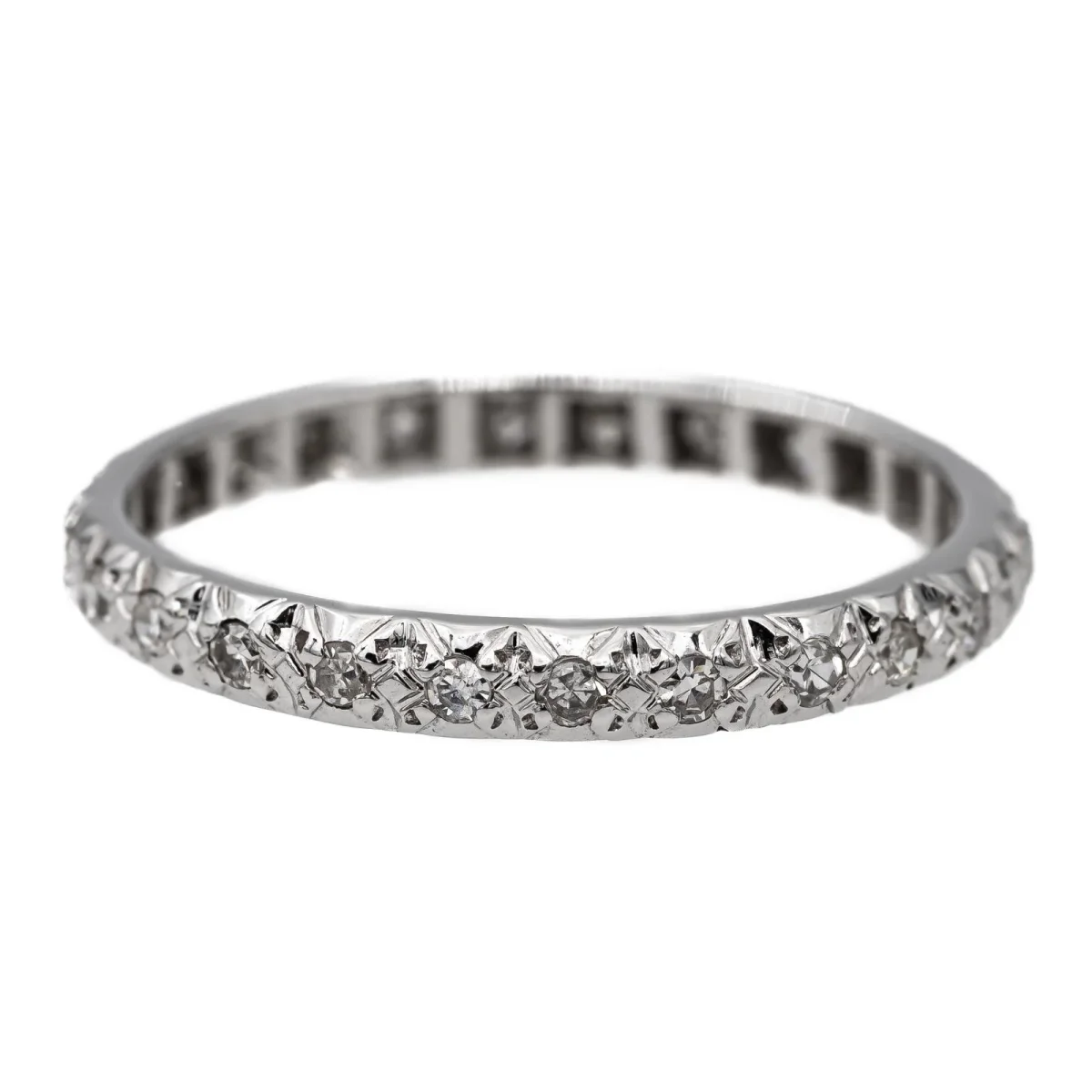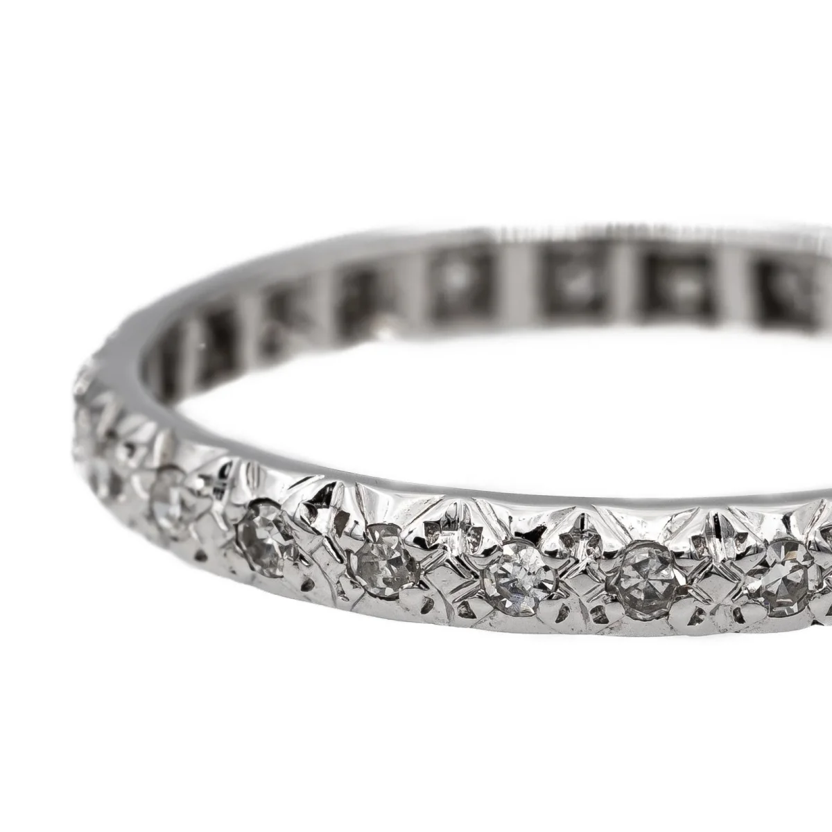 Alliance tour complet en or blanc 750 millièmes (18 carats) testé, sertie de 26 diamants taille huit/huit estimés H/SI, d’environ 0,02 ct chacun, poids total diamants: environ 0,52 ct, largeur sur le dessus: 0,24 cm, tour de doigt: 57, poids total: 2,17 g, excellent état