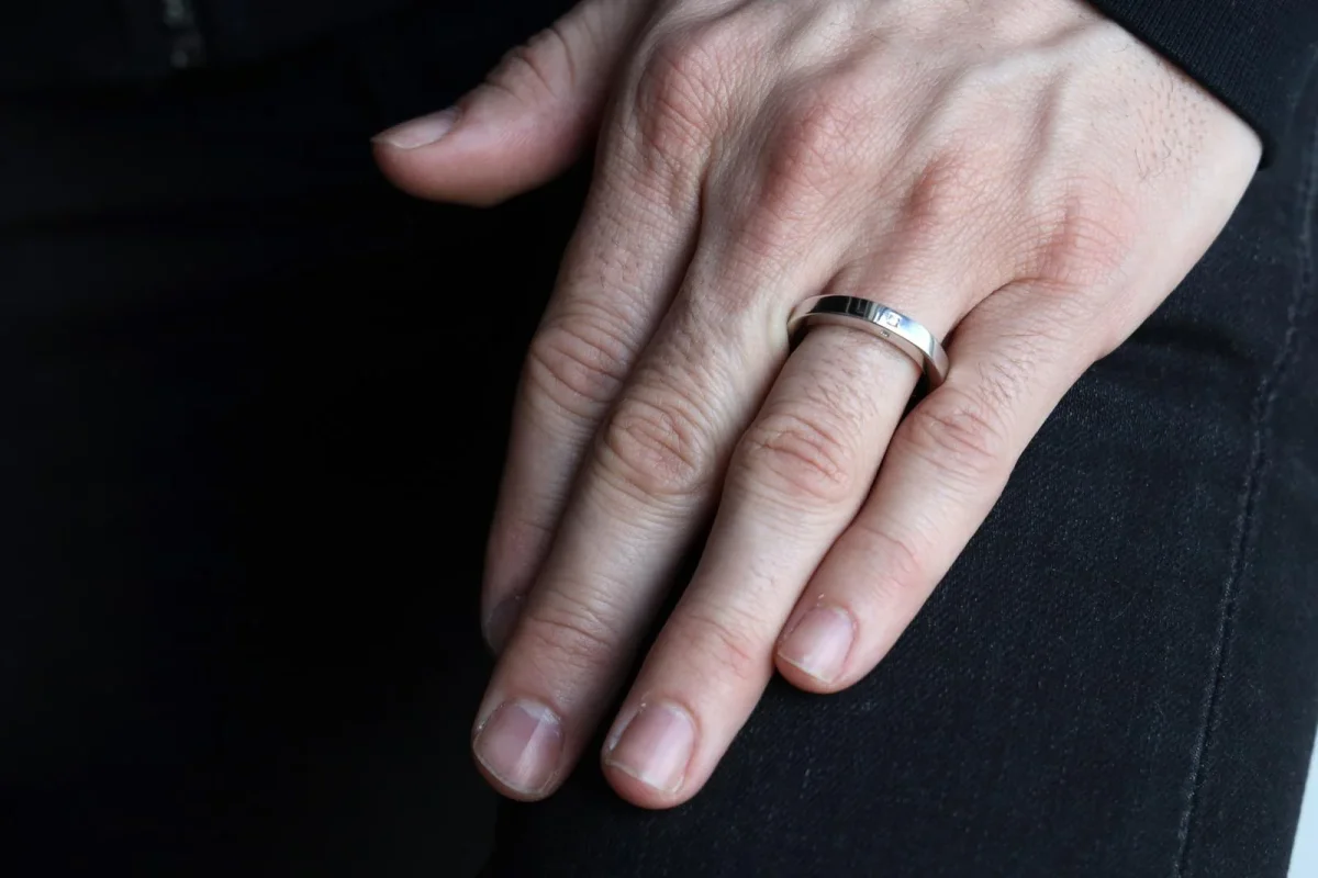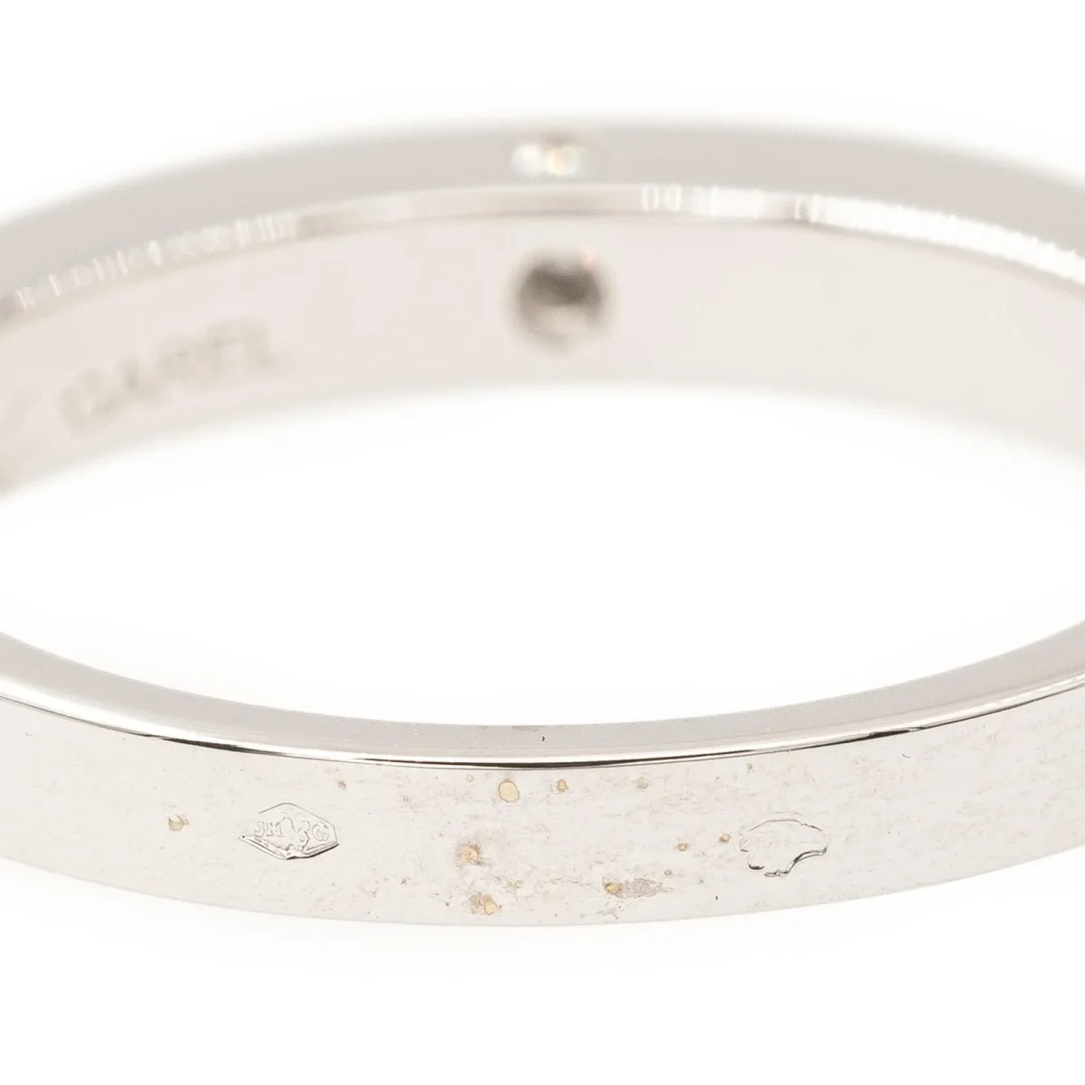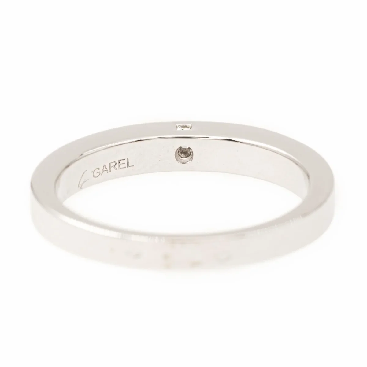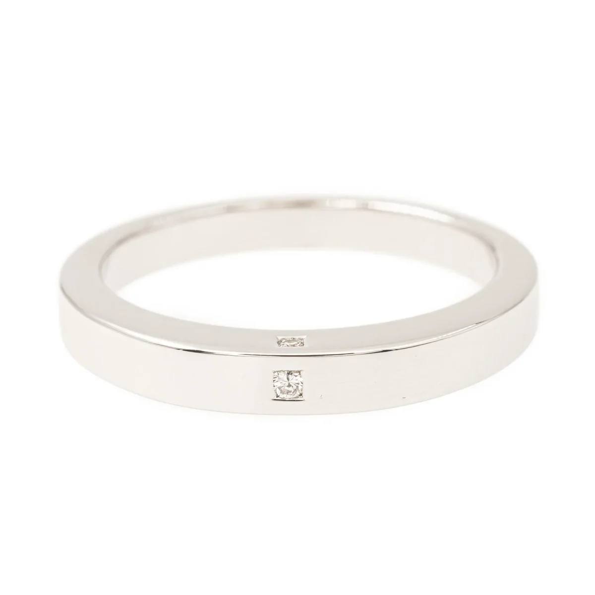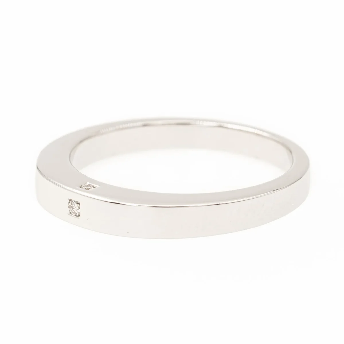Bague en or blanc 750 millièmes (18 carats), sertie de 3 diamants taille brillant environ G/VS, d’un poids total d’environ 0,04 ct (1 diamant d’environ 0,02 ct et 2 diamants d’environ 0,01 ct chacun), largeur sur le dessus: 0,35 cm, taille de doigt: 63, poids total: 7,80 g, poinçon tête d’aigle, excellent état
