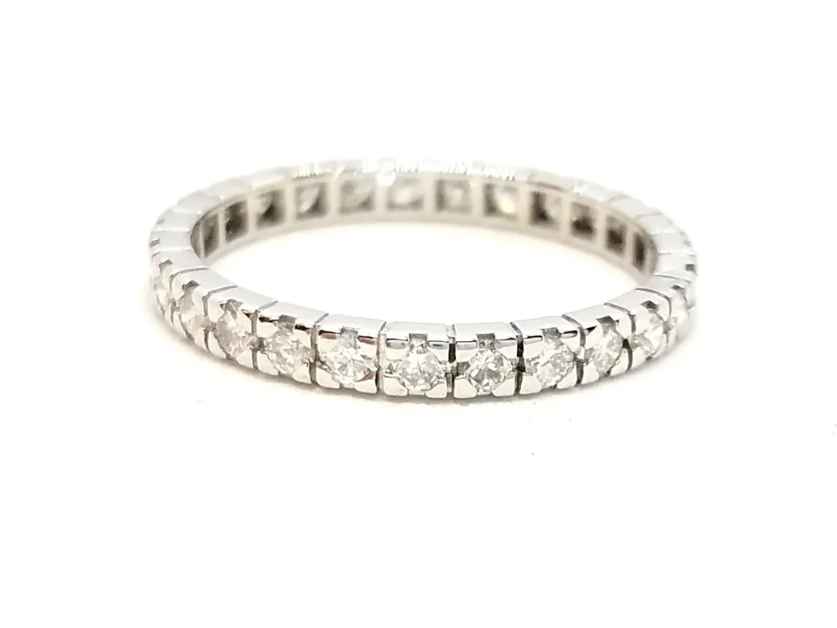 Bague alliance en or blanc 750 millièmes (18 carats), tour complet sertis de 27 diamants taille brillant G-H VSI pour environ 0,23 ct au total, largeur: 0,20 cm, tour de doigt: 48, poinçon tête d’aigle, poids total: 1,20 g, excellent état