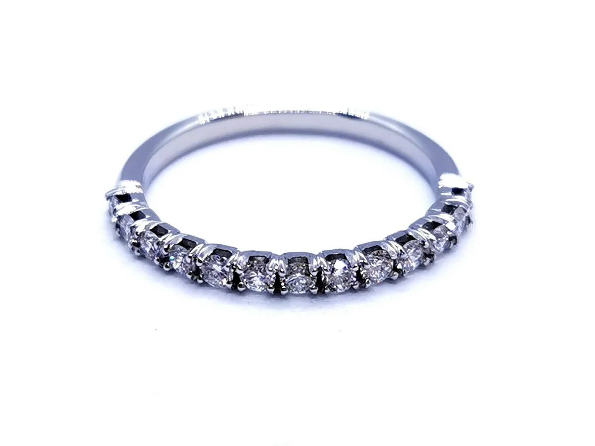 Demie alliance en or blanc 750 millièmes (18 carats), sertie de 13 diamants taille brillant F-VS pour 0,46 ct au total, serti griffes, tour de doigt: 53, largeur: 0,19 cm, poids total: 1,77 g, poinçon tête d’aigle, état neuf