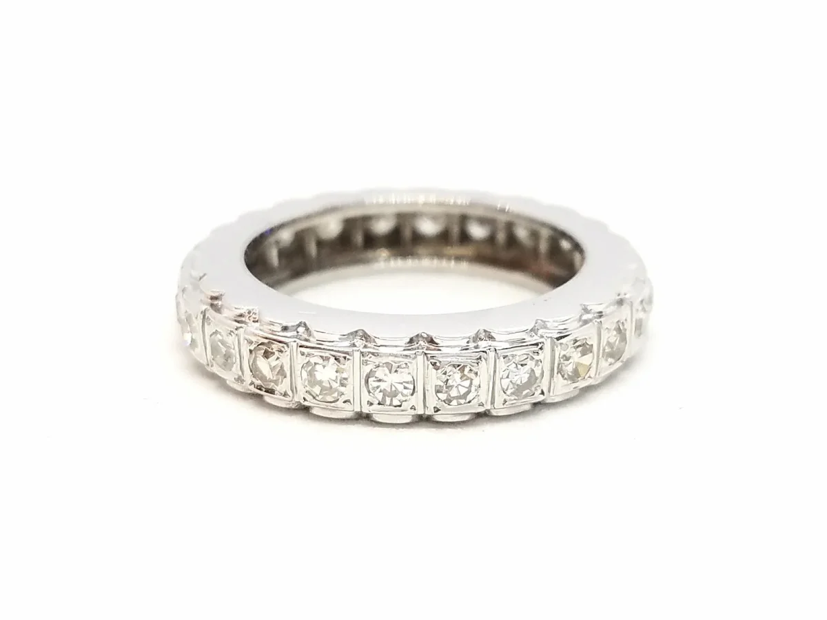 Bague alliance en or blanc 750 millièmes (18 carats), tour complet sertis de 24 diamants taille 8/8 G-H VSI pour environ 0,36 ct au total, largeur dessus: 0,40 cm, hauteur: 0,30 cm, tour de doigt: 50, poinçonnée, poids total: 4,55 g, excellent état