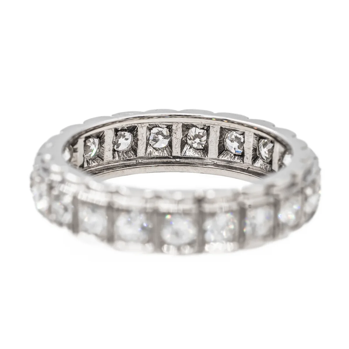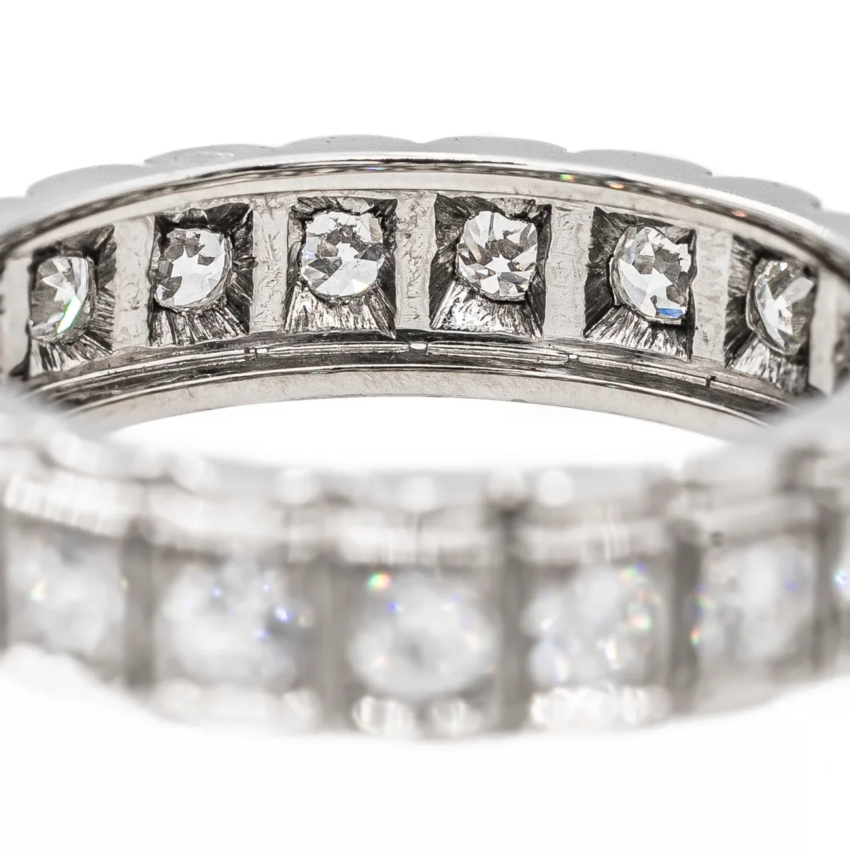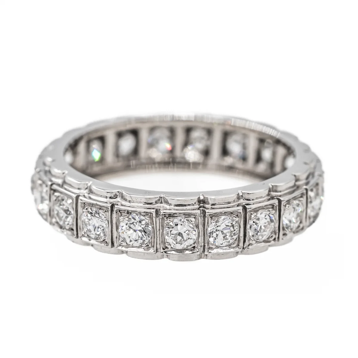 Alliance tour complet en or blanc 750 millièmes (18 carats), sertie de 21 diamants taille brillant environ G-VS, d’environ 0,04 ct chacun, poids total diamants: environ 0,84 ct, largeur sur le dessus: 0,46 cm, tour de doigt: 52, poids total: 4,19 g, poinçon tête d’aigle, excellent état