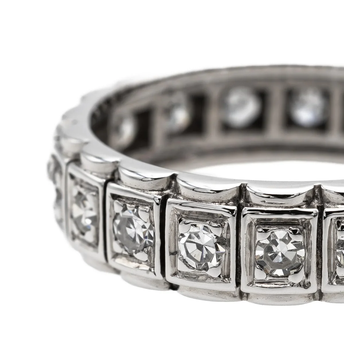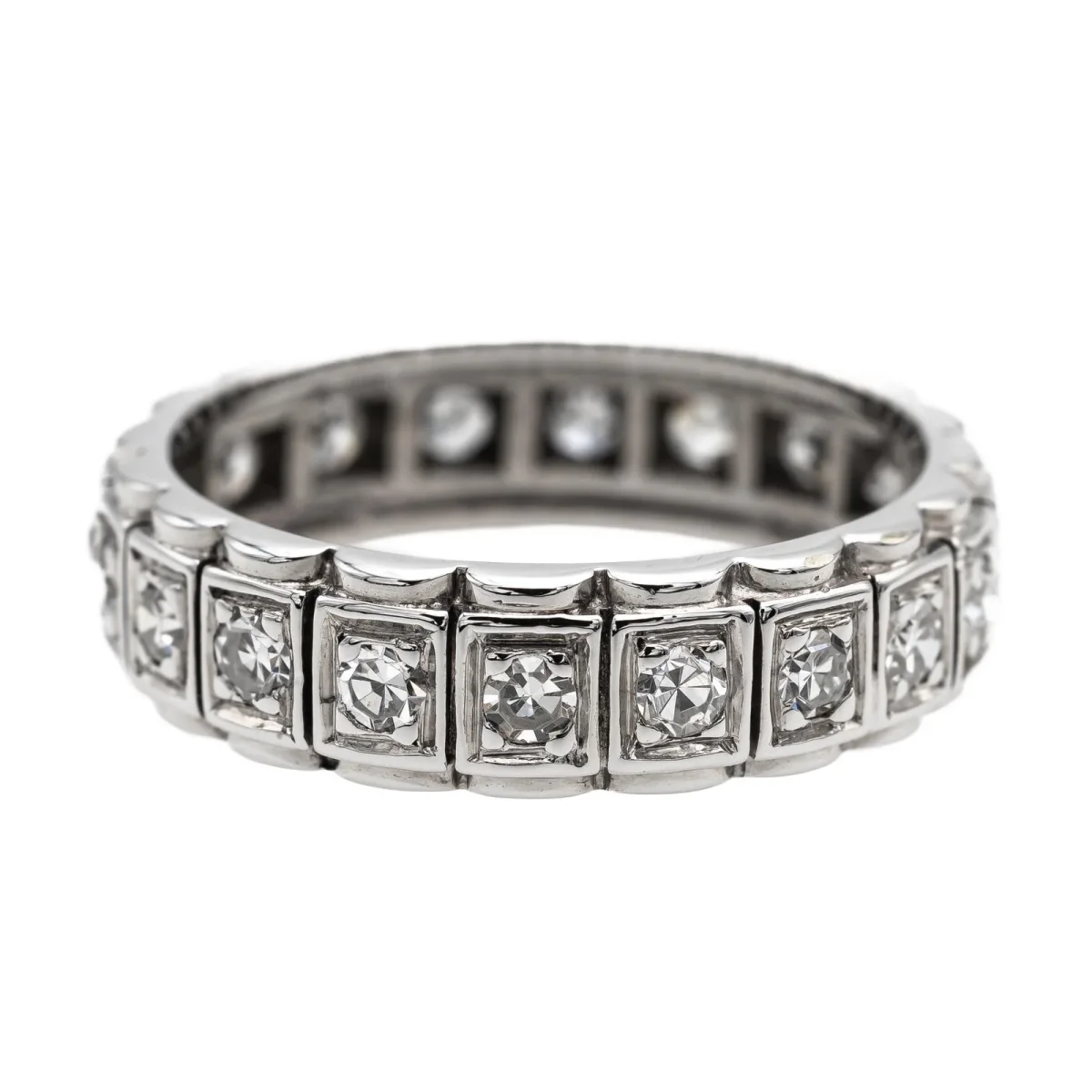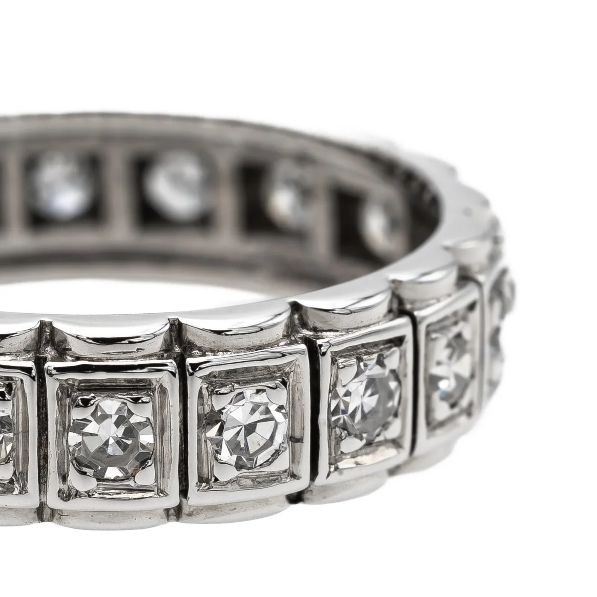 Alliance tour complet en or blanc 750 millièmes (18 carats), sertie de 20 diamants taille brillant environ 0,02 ct chacun, estimés G/VS, Poids total estimé des diamants: 0,40 ct, Tour de doigt: 52, Largeur sur le dessus: 0,51 cm, Poids total: 4,31 g,poinçonnée, Excellent état