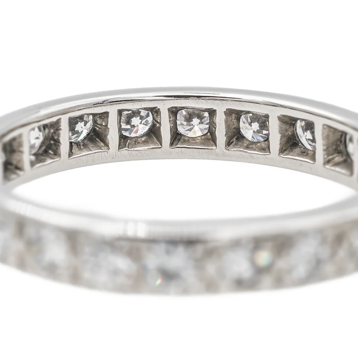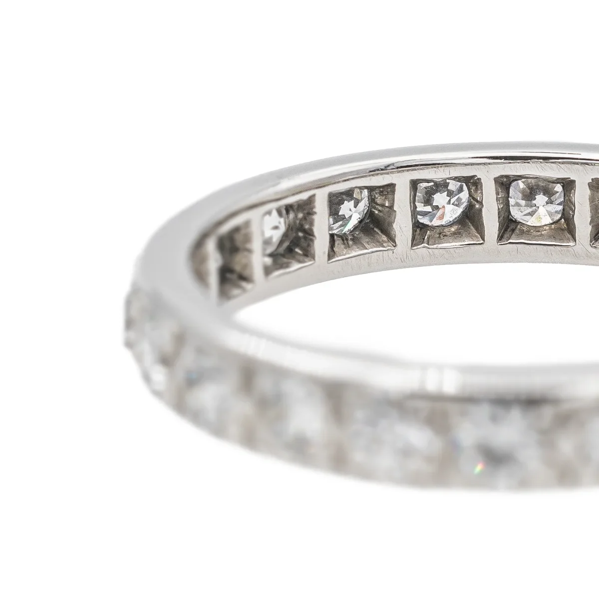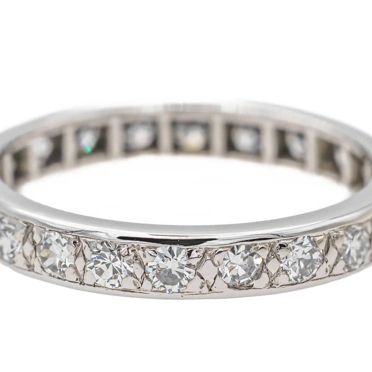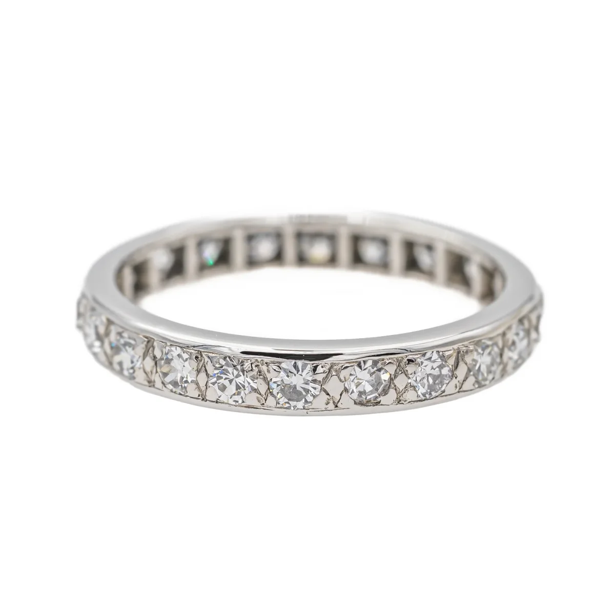 Alliance tour complet en or blanc 750 millièmes (18 carats) testé, sertie de 22 diamants, taille brillant, environ G-SI, d’environ 0,03 ct chacun, poids total diamants : environ 0,66 ct, un diamant égrisé, largeur sur le dessus : 0,30 cm, tour de doigt : 50, poids total : 2,55 g, excellent état