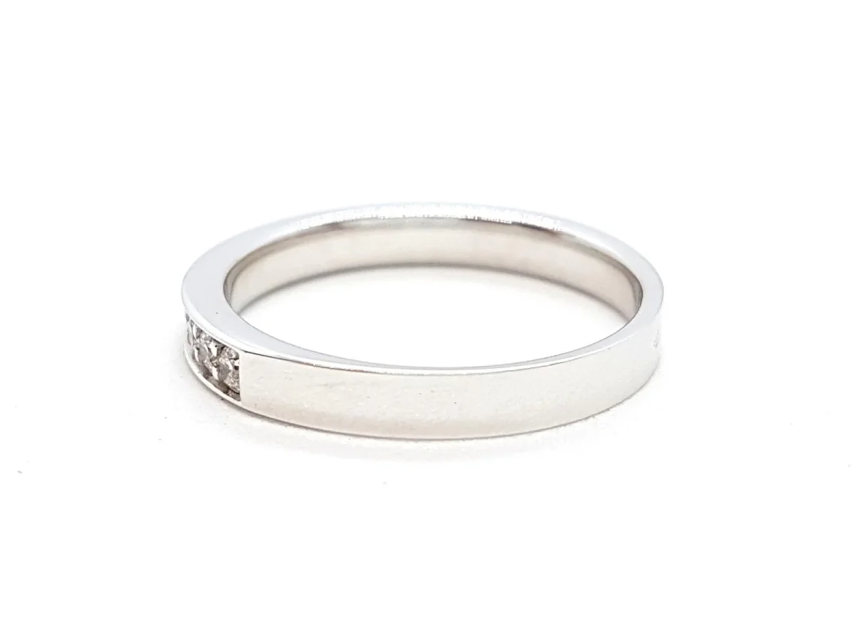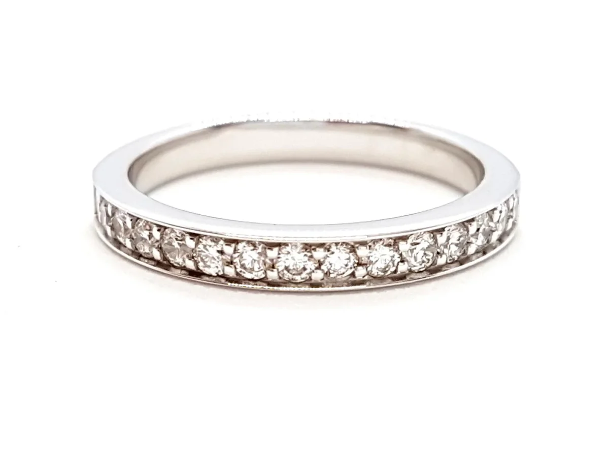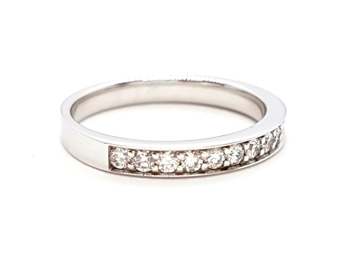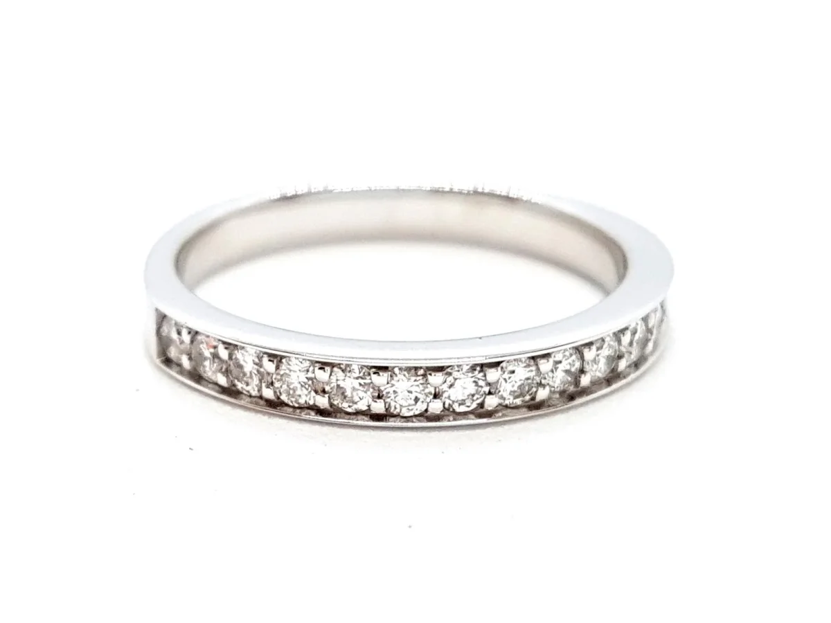 Bague en or blanc 750 millièmes (18 carats), demi alliance sertie de 15 diamants taille brillant G-H SI pour environ 0,50 ct au total, tour de doigt: 56, largeur sur le dessus: 0,3 cm, poids total: 3,52 g, poinçon tête d’aigle, état neuf