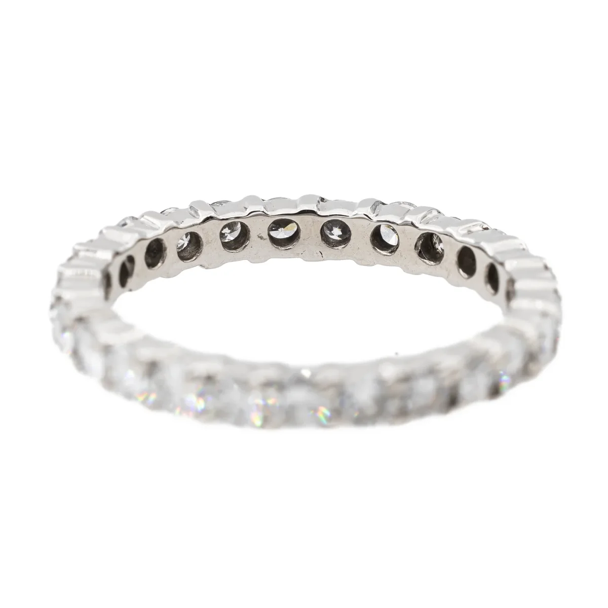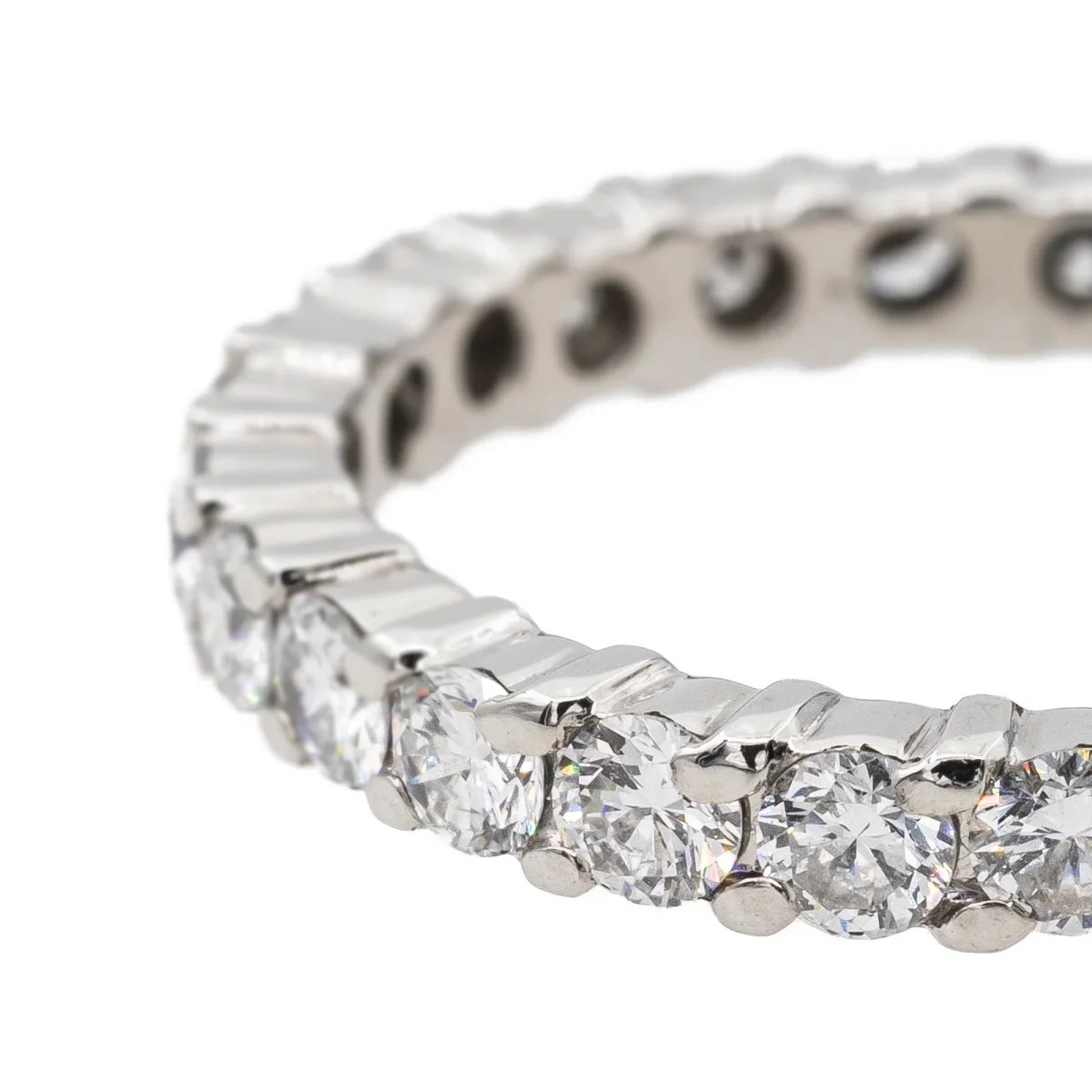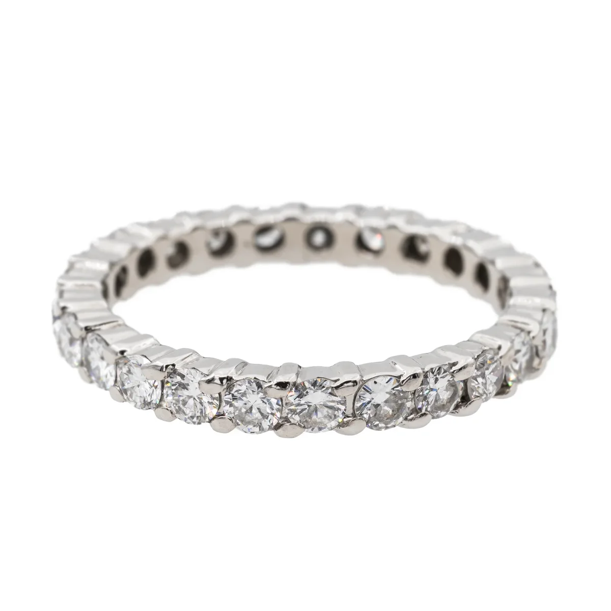 Alliance tour complet en or blanc 750 millièmes (18 carats), sertie de 25 diamants taille brillant estimés G-VS, d’environ 0,05 ct chacun, poids total diamants: environ 1,25 cts, largeur sur le dessus: 0,28 cm, tour de doigt: 54,5, poids total: 3,11 g, poinçon hibou, excellent état