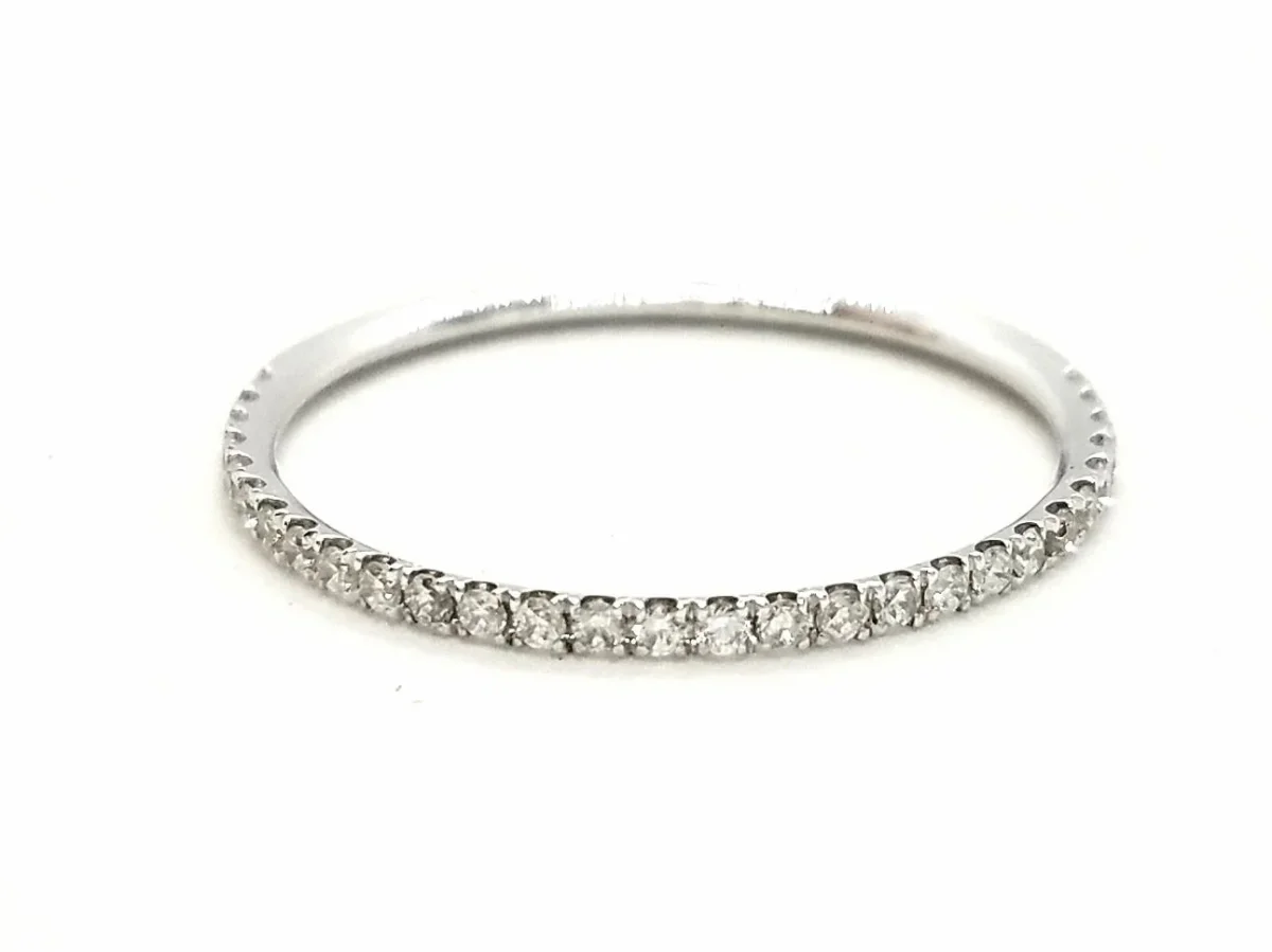demi alliance en or blanc 750 millièmes (18 carats), pavée de 29 diamants taille brillant F-VS pour un total de 0,16 ct, micro serti, tour de doigt: 53, largeur de l’anneau: 0,11 cm, poids total: 0,79 g, poinçon tête d’aigle, état neuf