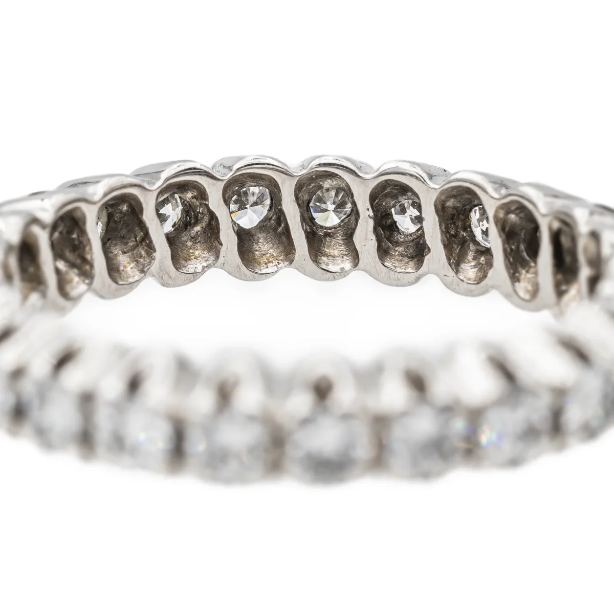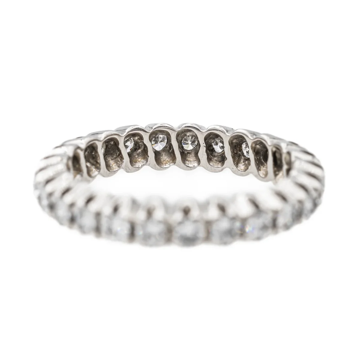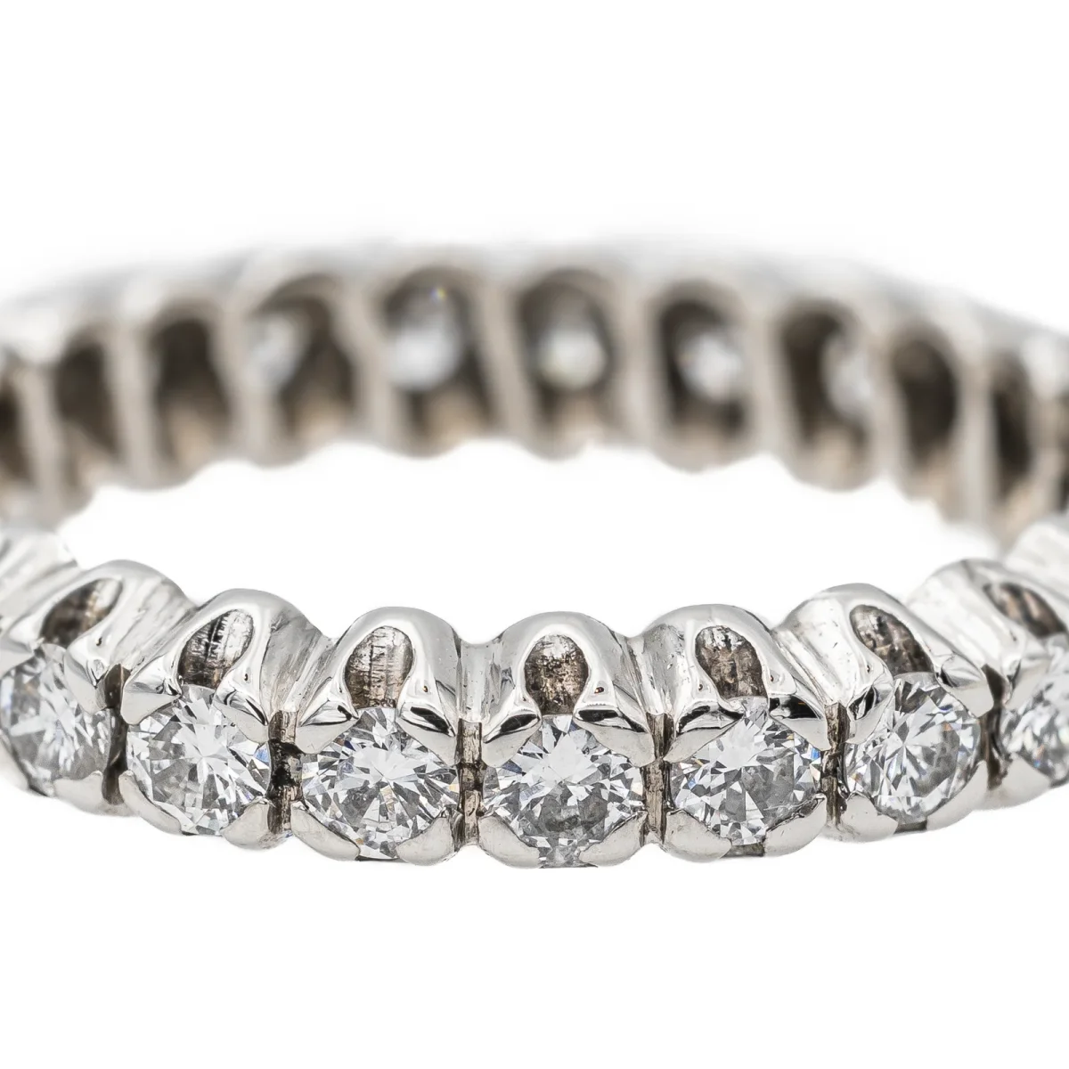 Alliance tour complet en or blanc 750 millièmes (18 carats) testé, sertie de 25 diamants taille brillant estimés G-VS, d’environ 0,03 ct chacun, poids total diamants: environ 0,75 ct, largeur sur le dessus: 0,38 cm, tour de doigt: 54, poids total: 3,90 g, excellent état