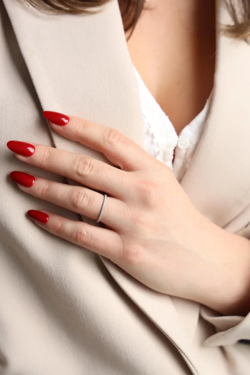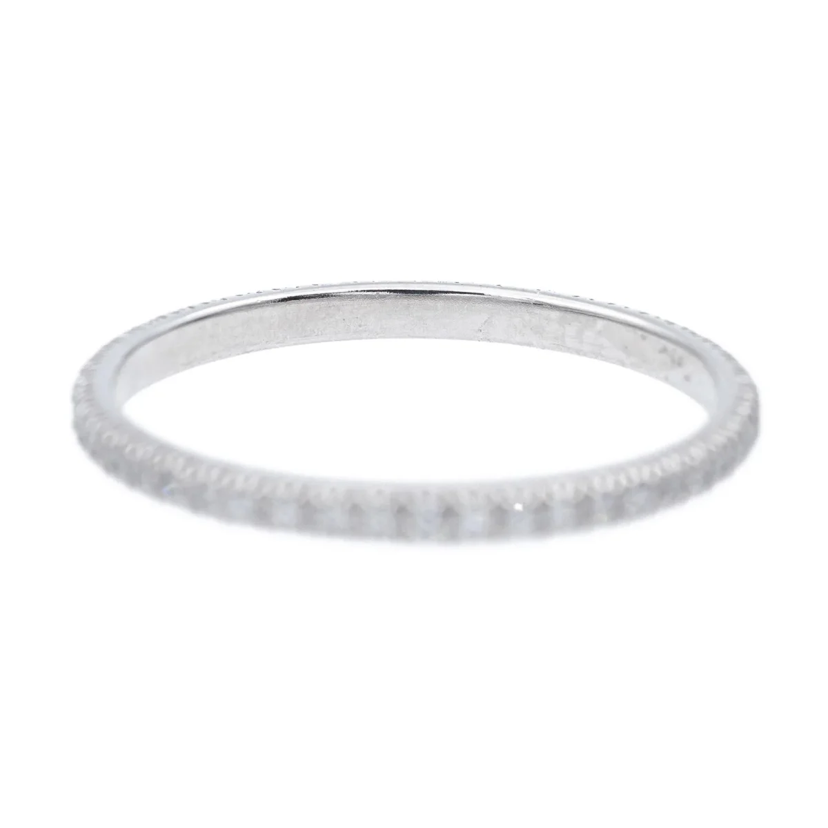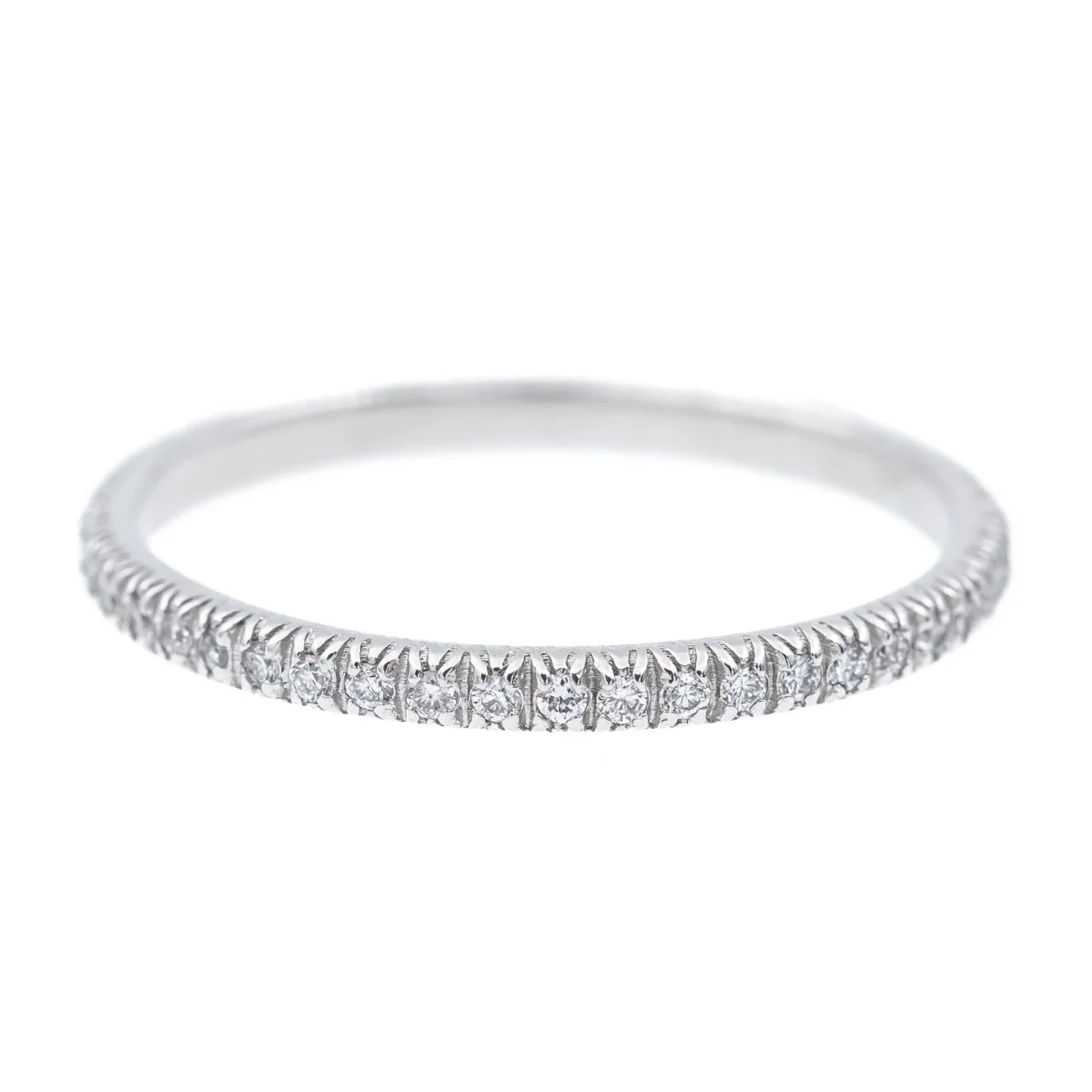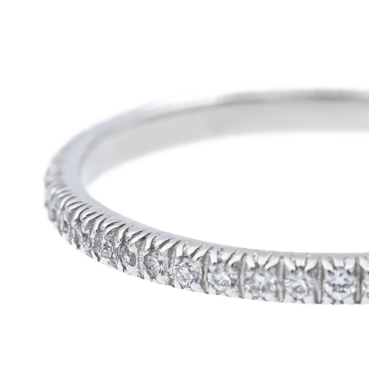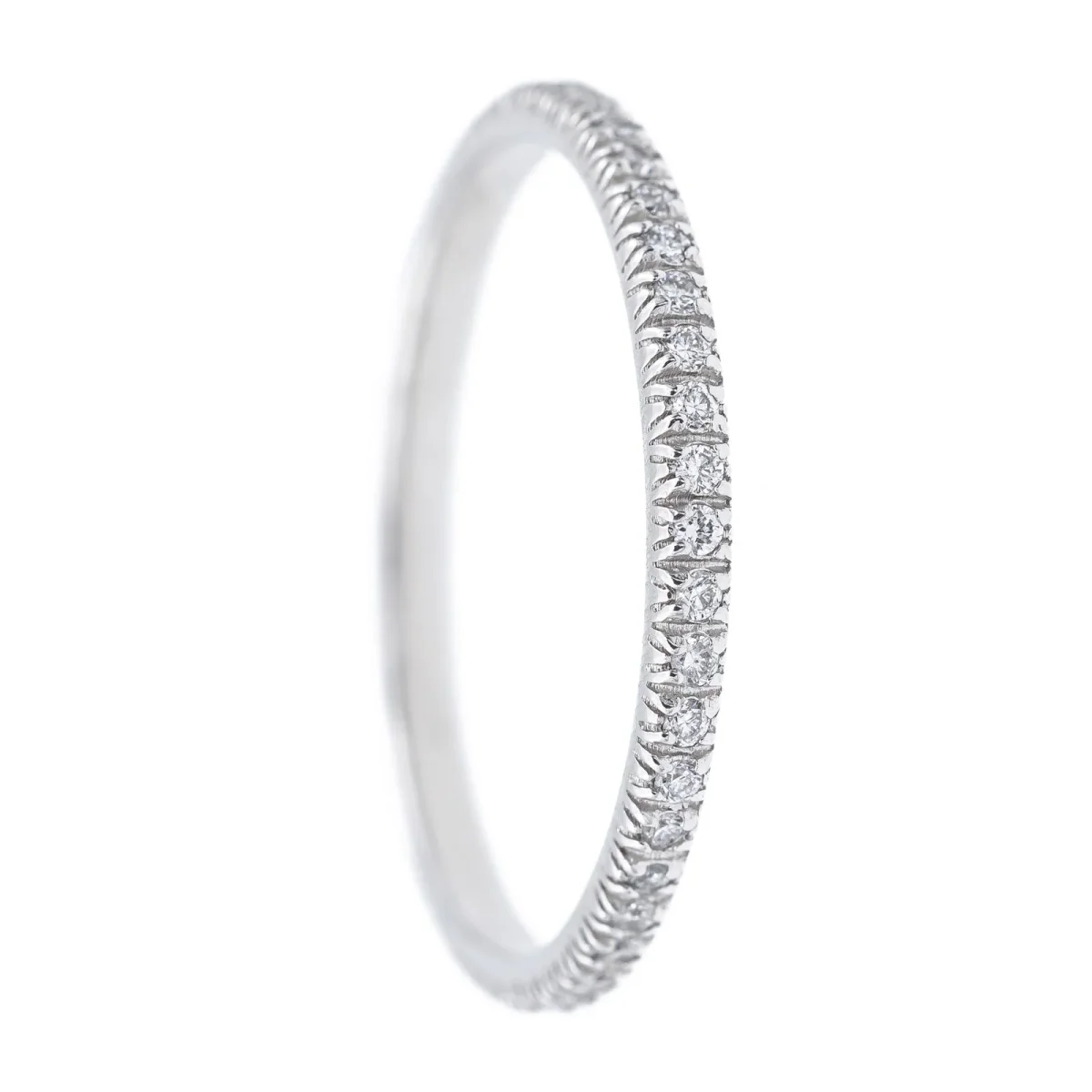 Alliance tour complet en or blanc 750 millièmes (18 carats) testé, sertie de 47 diamants taille brillant environ H/VS, d’environ 0,005 cts chacun, poids total diamants: environ 0,235 cts, largeur sur le dessus: 0,16 cm, tour de doigt: 51,5, poids total: 1,28 g, excellent état