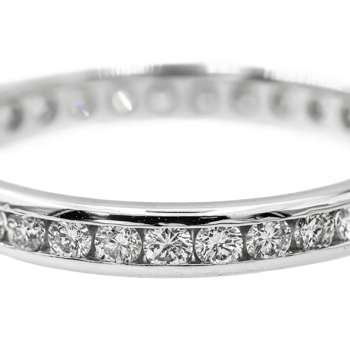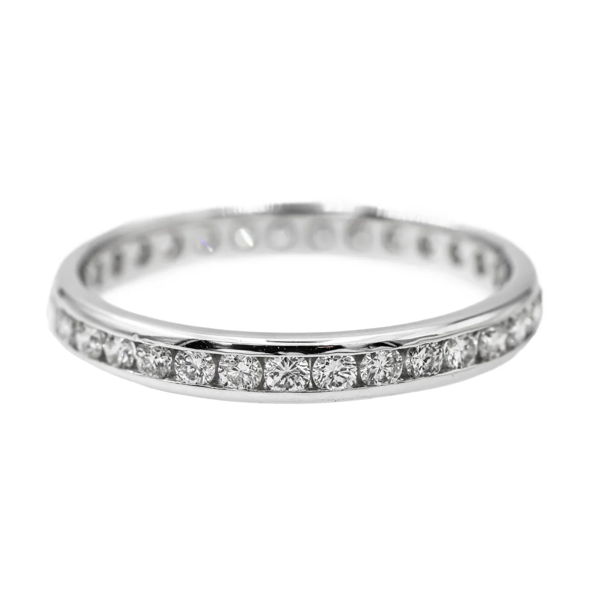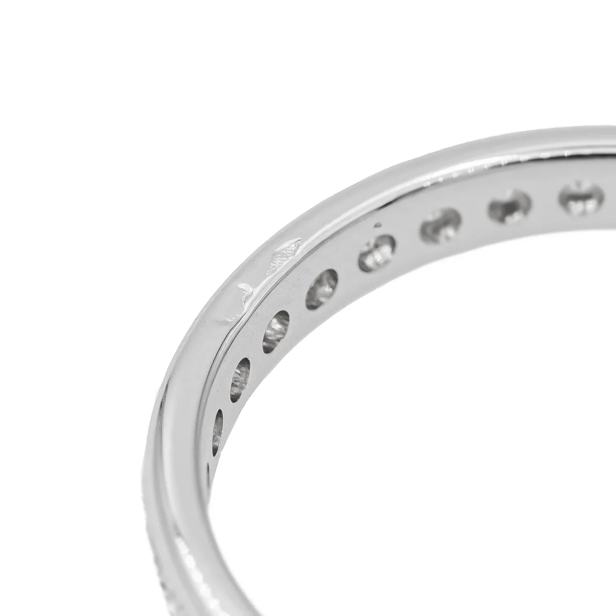 Alliance tour complet en or blanc 750 millièmes (18 carats), sertie de 33 diamants taille brillant environ G-SI, d’environ 0,025 ct chacun, poids total diamants: environ 0,825 ct, largeur sur le dessus: 0,30 cm, tour de doigt: 61, poids total: 2,82 g, poinçon tête d’aigle, excellent état