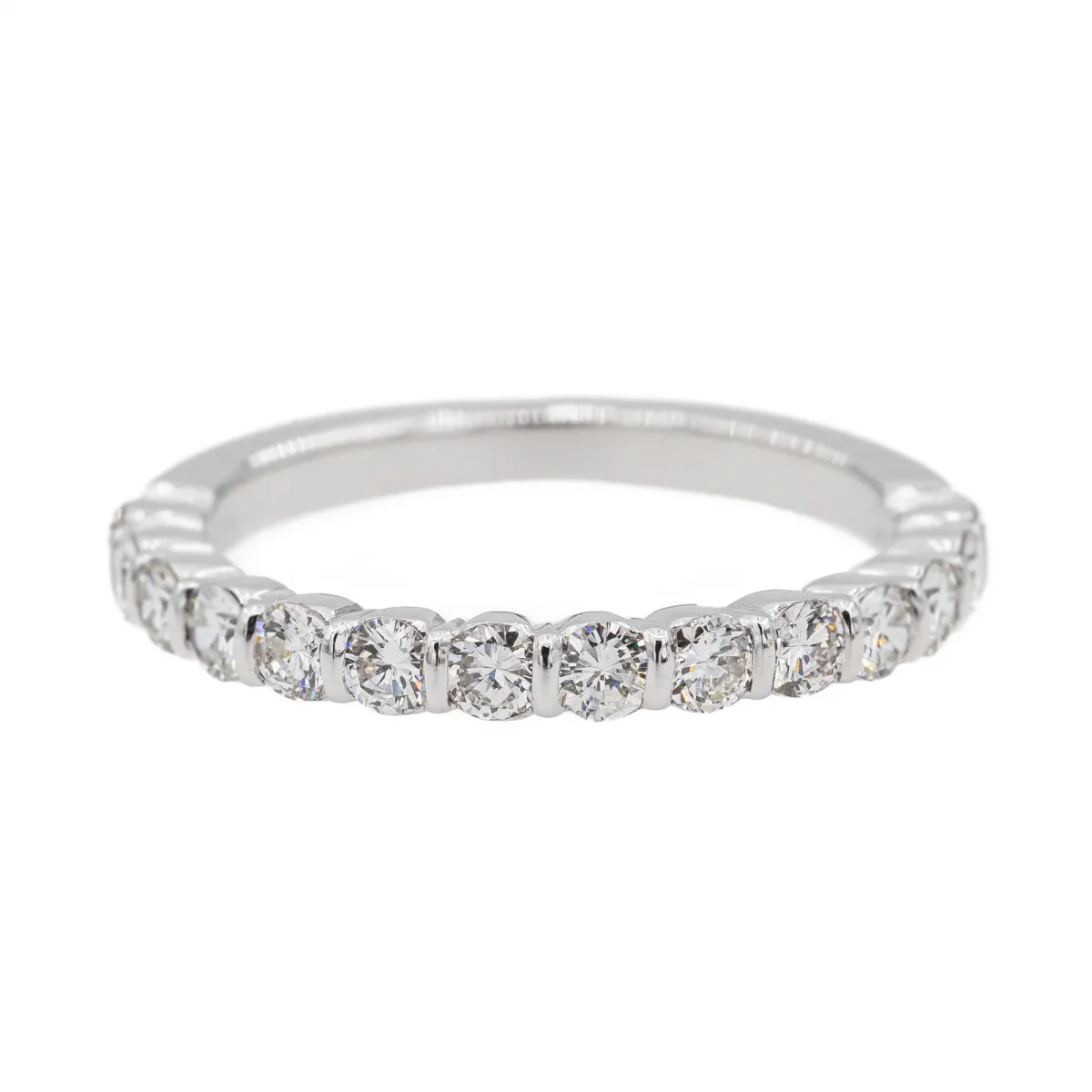 Demi alliance en or blanc 750 millièmes (18 carats), sertie de 14