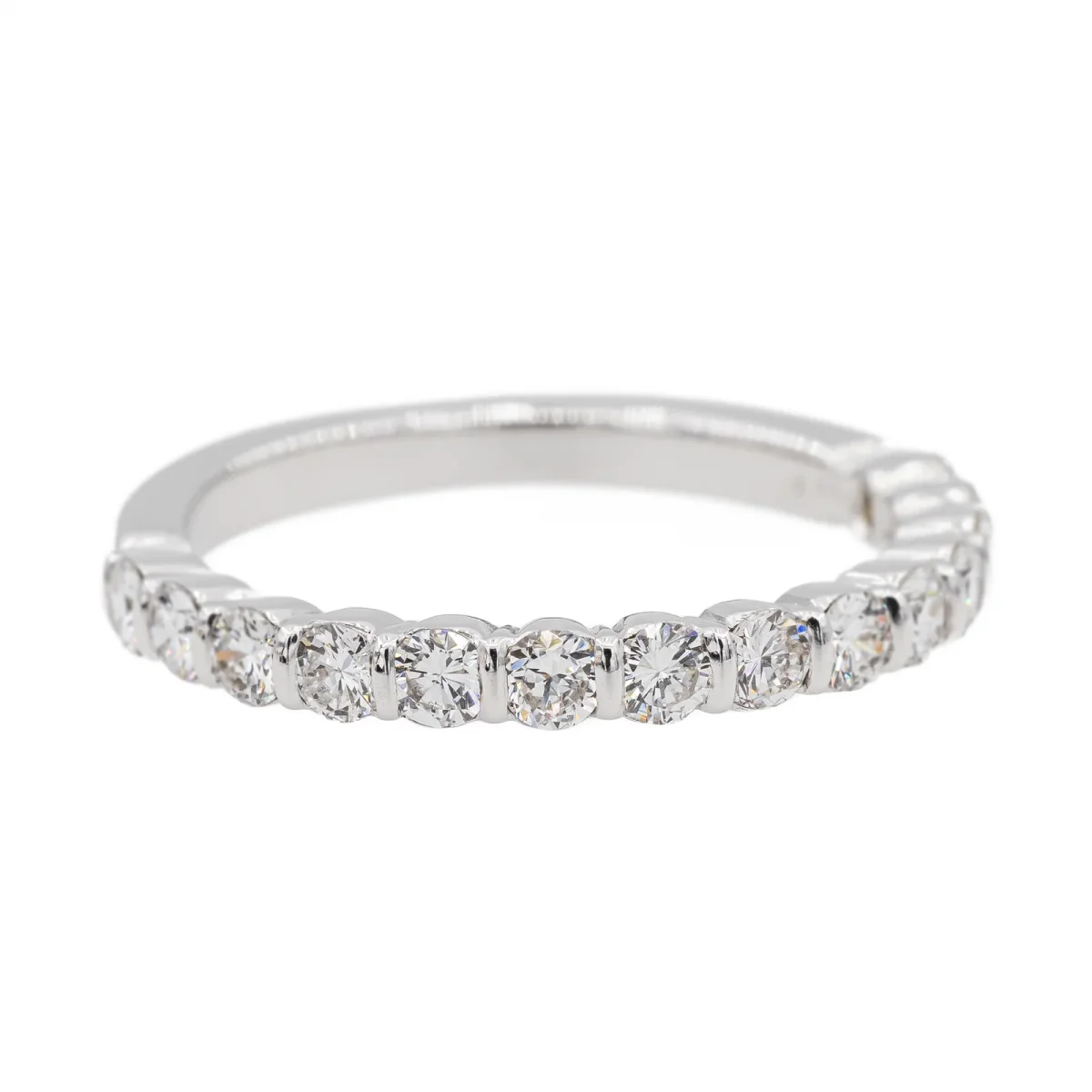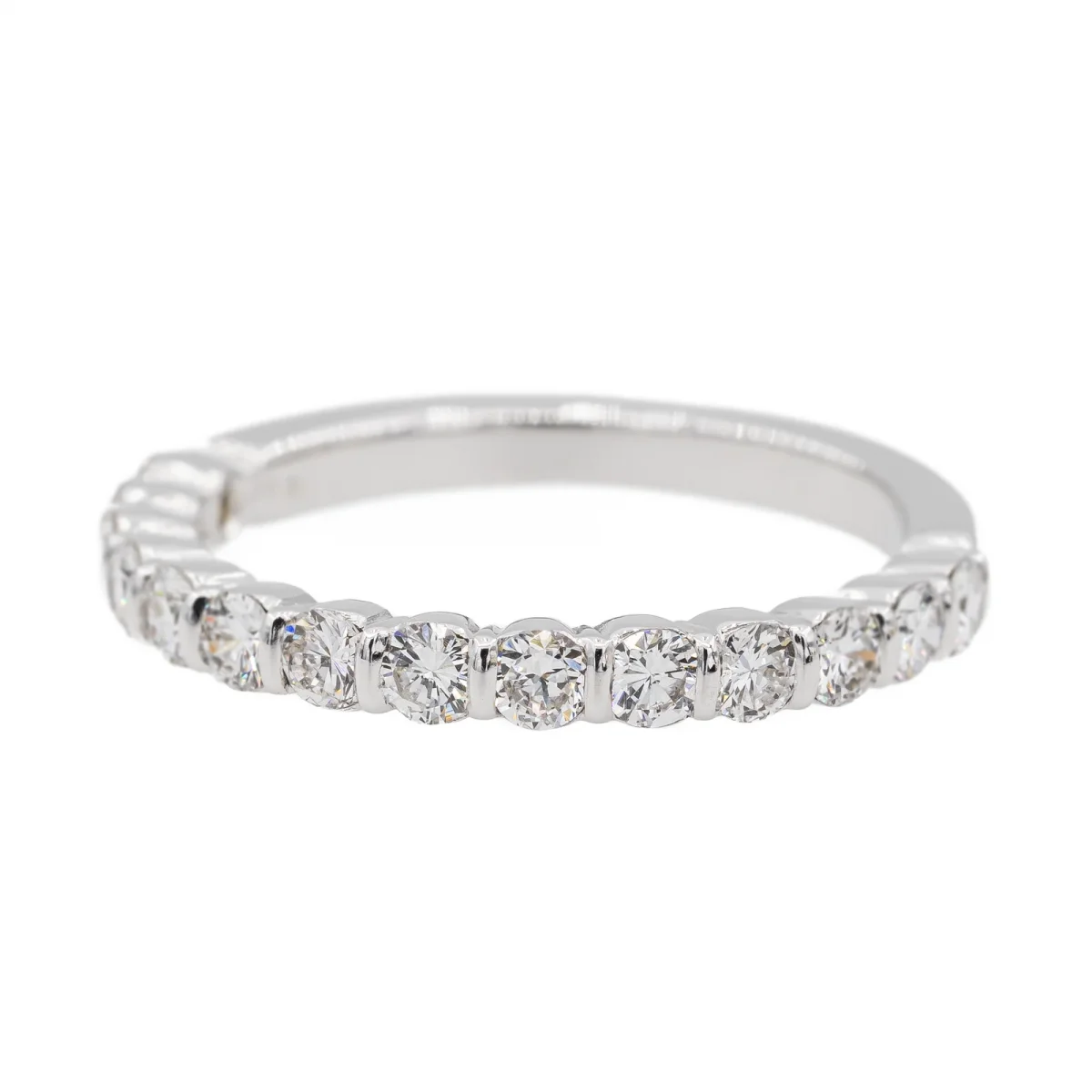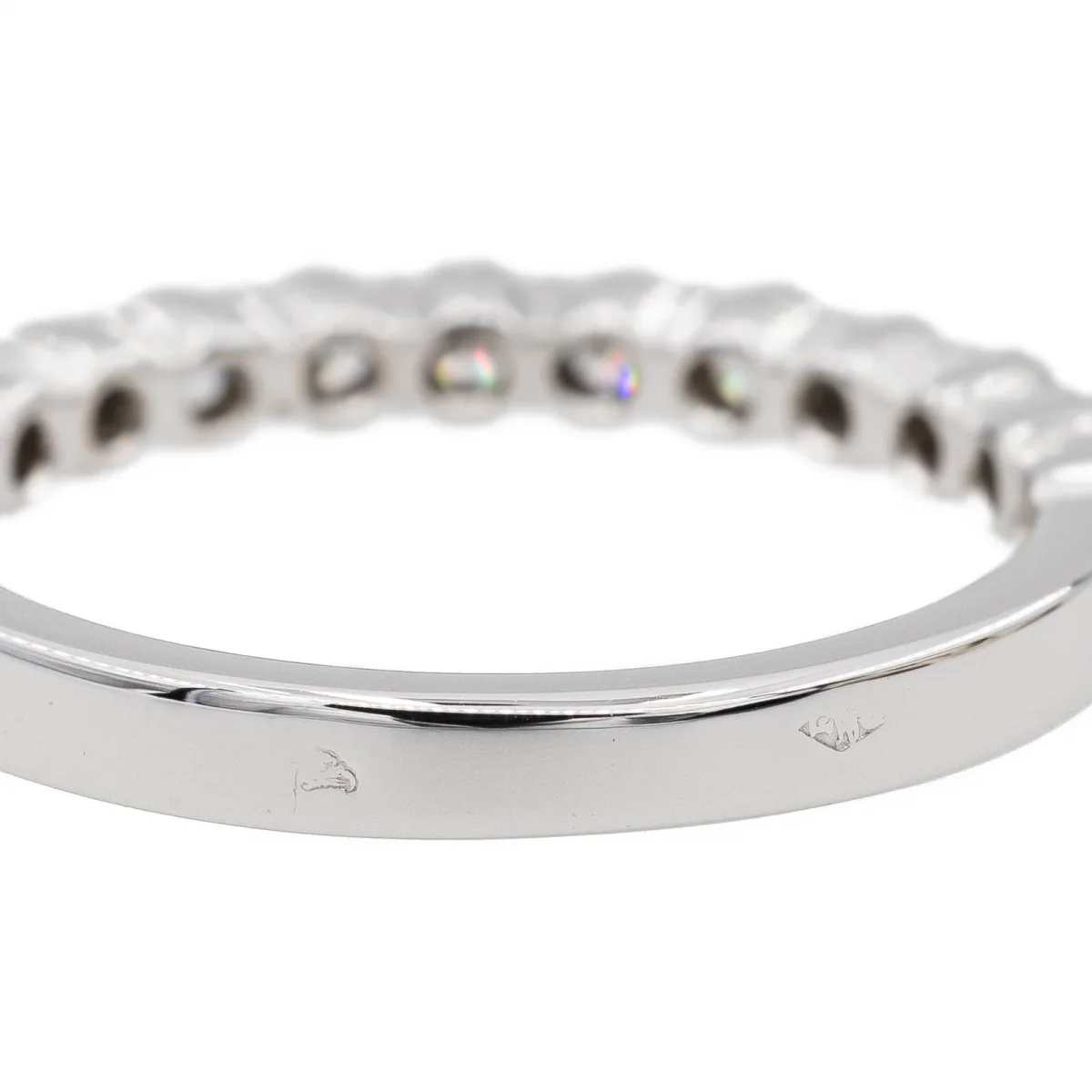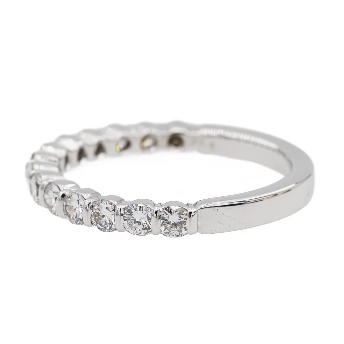 Demi alliance en or blanc 750 millièmes (18 carats), sertie de 14 diamants taille brillant environ G-SI, d’environ 0,05 ct chacun, poids total diamants: environ 0,70 ct, largeur sur le dessus: 0,24 cm, tour de doigt: 51, poids total: 2,79 g, poinçon tête d’aigle, excellent état