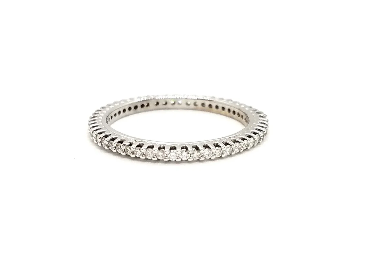 Bague en or blanc 750 millièmes (18 carats) testé, alliance tour complet, sertie de 52 diamants taille brillant G-H SI pour environ 0,35 ct au total, taille: 56, largeur: 0,18 cm, poids total: 2,17 g, excellent état