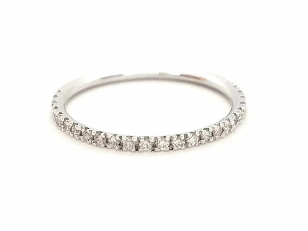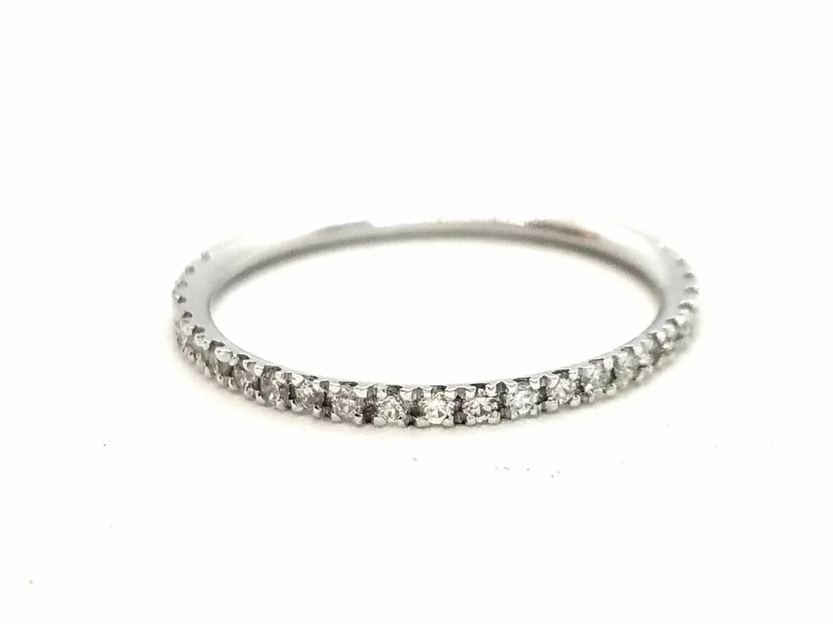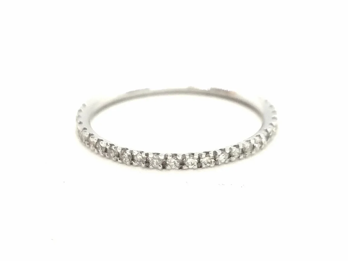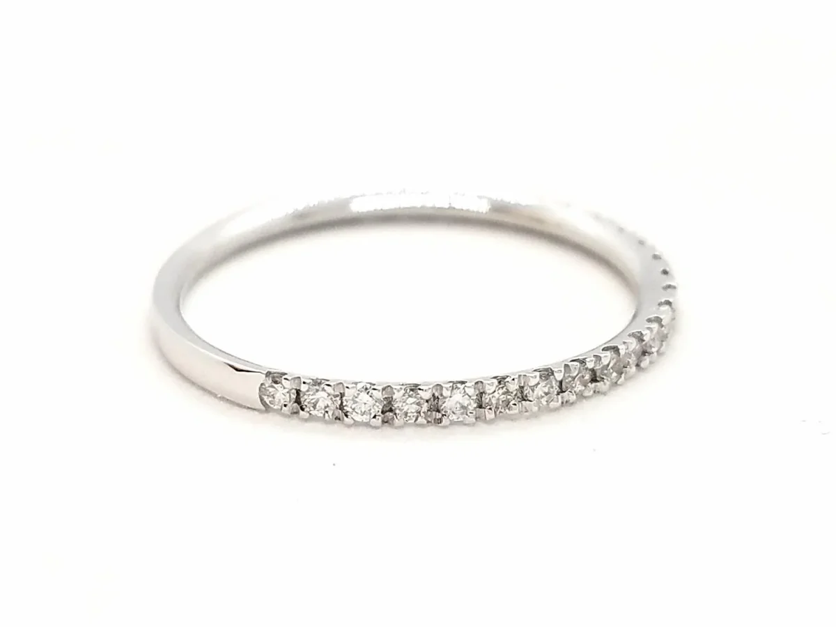 demi alliance en or blanc 750 millièmes (18 carats), pavée de 25 diamants taille brillant F-VS pour un total de 0,25 ct, micro serti, tour de doigt: 54, largeur de l’anneau: 0,14 cm, poids total: 1 g, poinçon tête d’aigle, état neuf