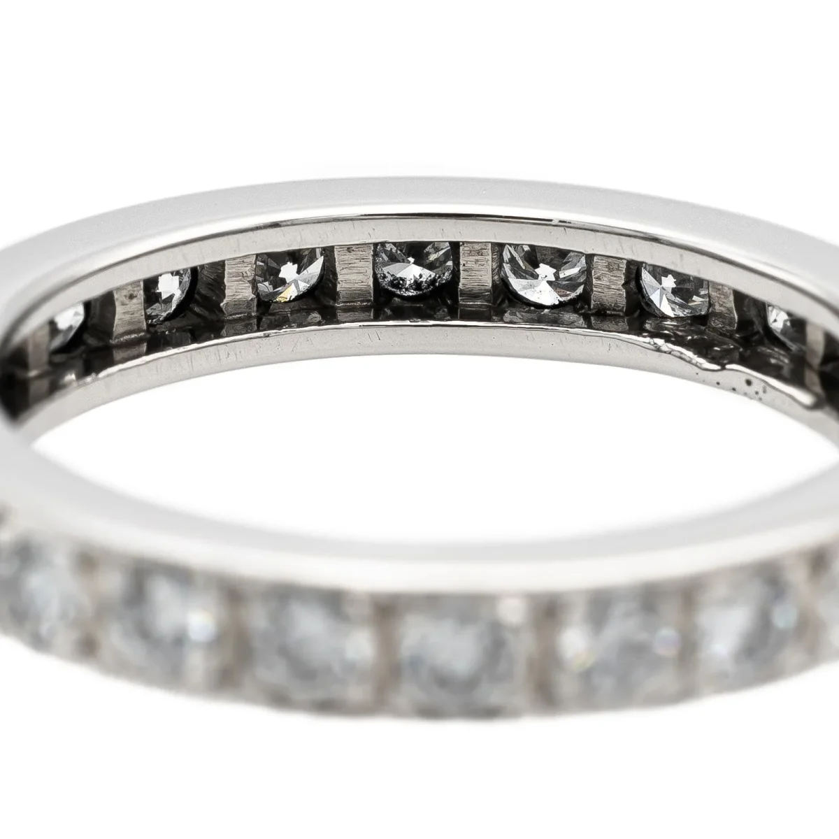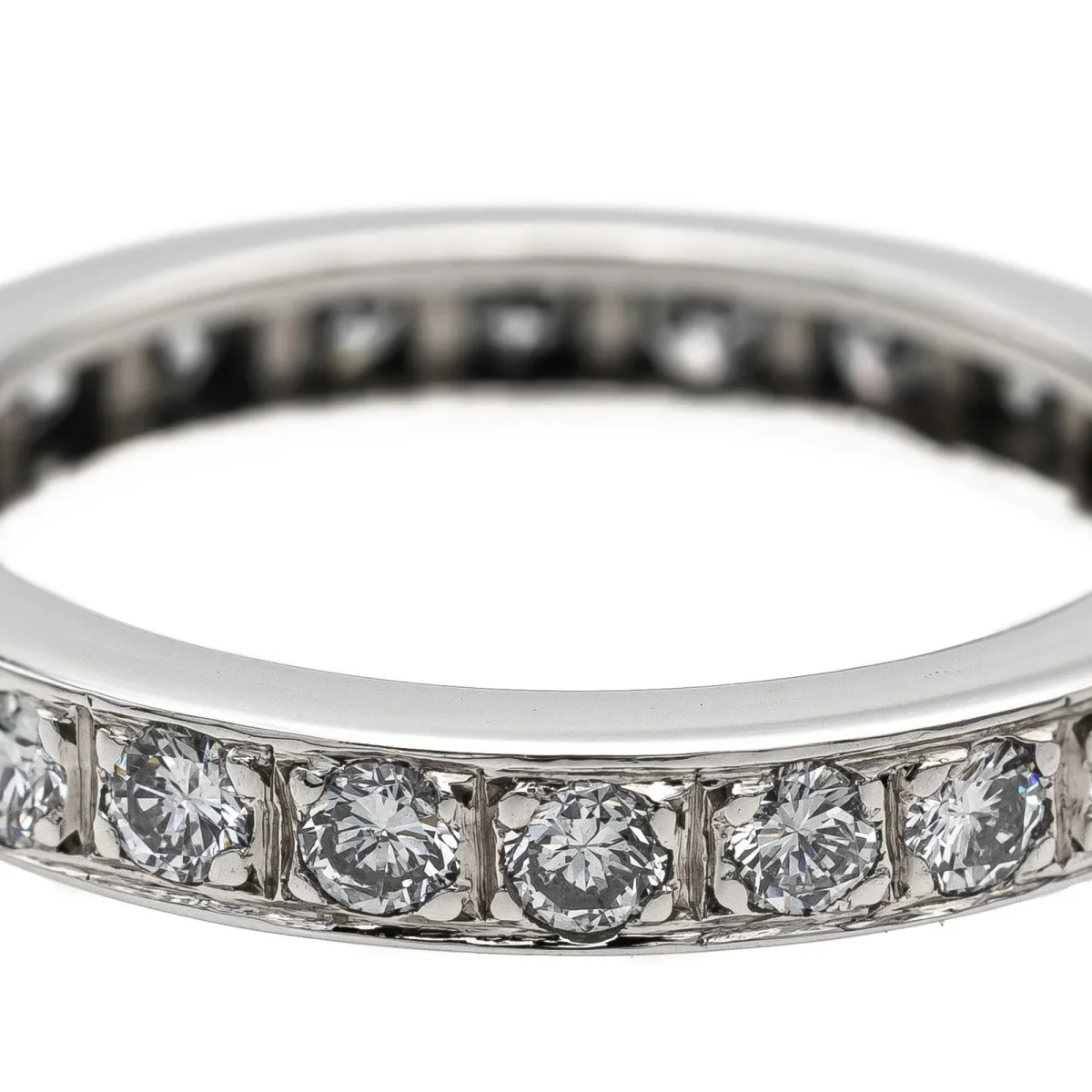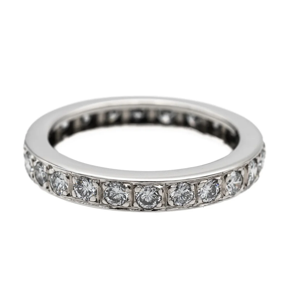 Alliance tour complet en or blanc 750 millièmes (18 carats), sertie de 24 diamants taille brillant estimés F/VS, d’environ 0,03 ct chacun, poids total diamants: environ 0,72 ct, largeur sur le dessus: 0,33 cm, tour de doigt: 53, poids total: 5,13 g, poinçon tête d’aigle, excellent état