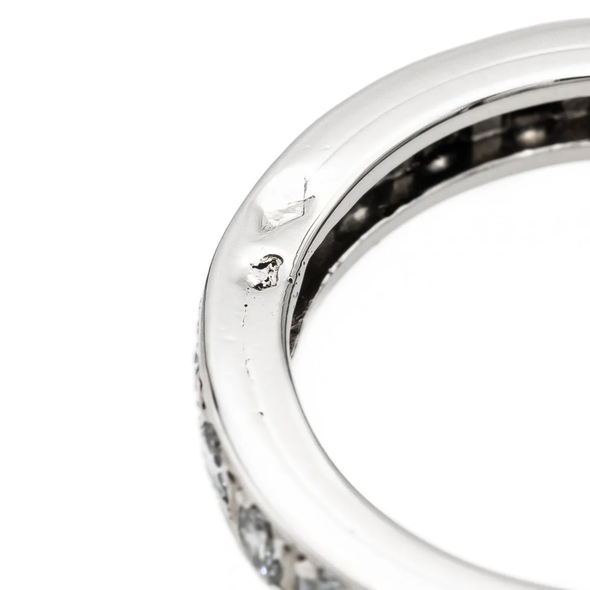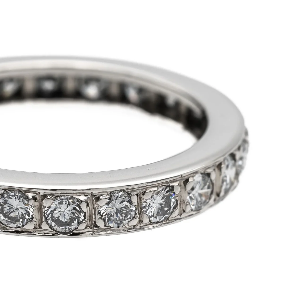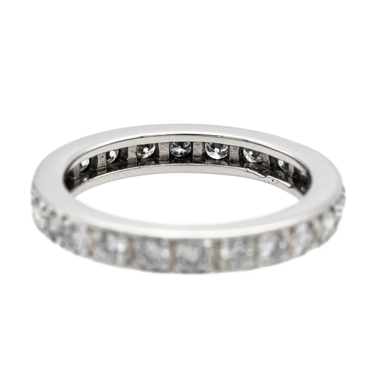 Alliance tour complet en or blanc 750 millièmes (18 carats), sertie de 24 diamants taille brillant estimés F/VS, d’environ 0,03 ct chacun, poids total diamants: environ 0,72 ct, largeur sur le dessus: 0,33 cm, tour de doigt: 53, poids total: 5,13 g, poinçon tête d’aigle, excellent état