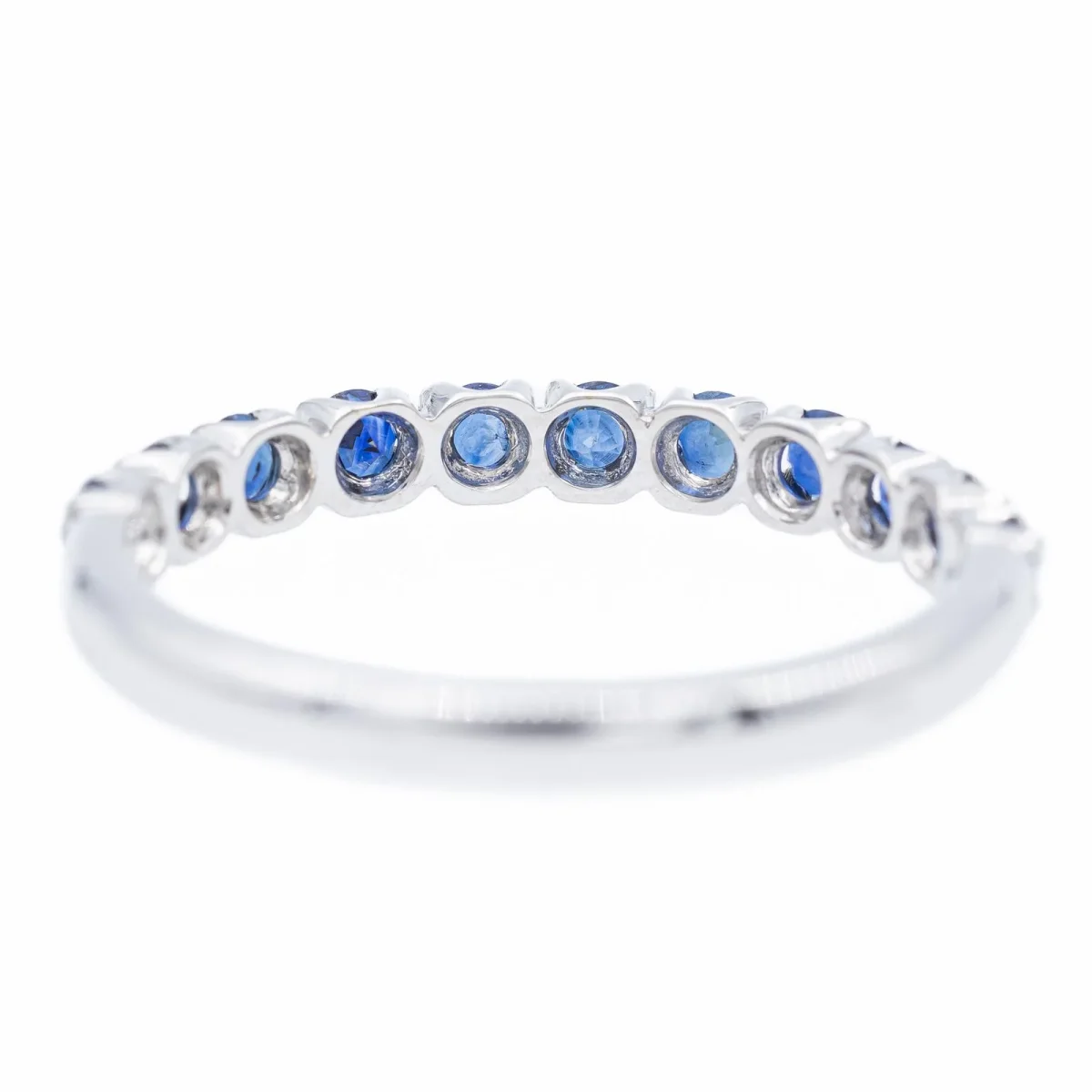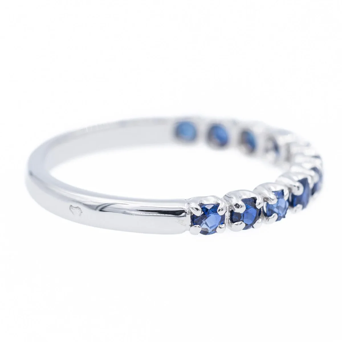 Demi alliance en or blanc 750 millièmes (18 carats), sertie de 11 saphir taille ronde, d’environ 0,01 cts chacun, largeur sur le dessus: 0,25 cm, tour de doigt: 56, poids total: 2,54 g, poinçon tête d’aigle, excellent état