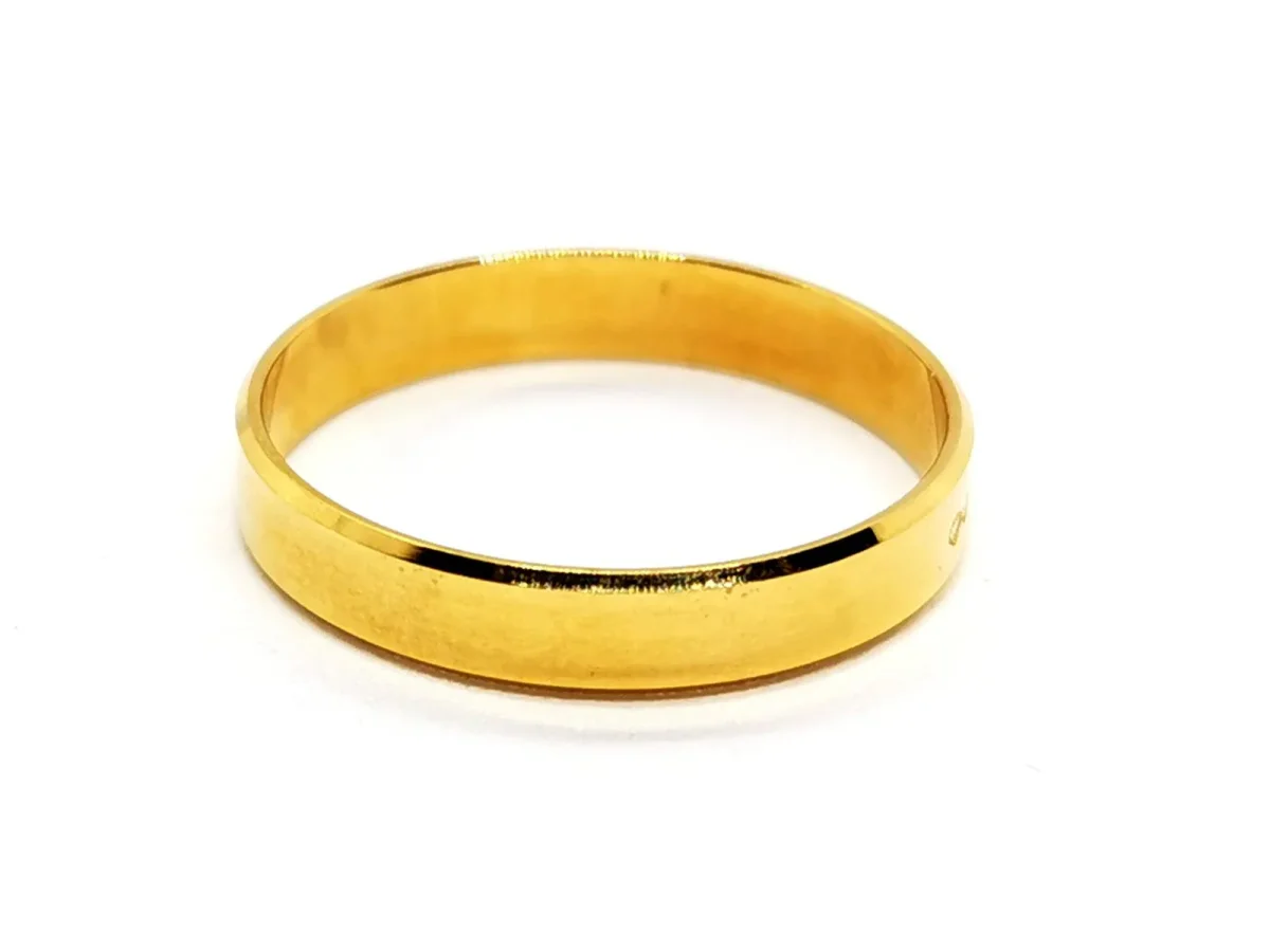 Alliance en or jaune 750 millièmes (18 carats), tour de doigt: 64, largeur: 0,38 cm, poids total: 3,28 g, poinçon tête d’aigle, état neuf