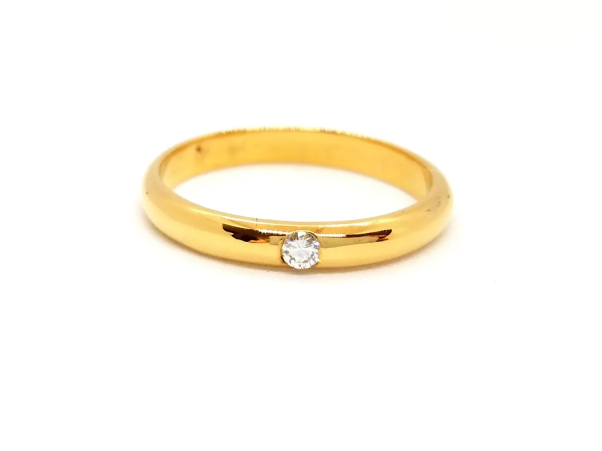 Alliance en or jaune 750 millièmes (18 carats), sertie d’un diamant taille brillant G-H VSI d’environ 0,06 ct, taille: 59, largeur: 0,3 cm, poids total: 3,84 g, poinçonné, excellent état