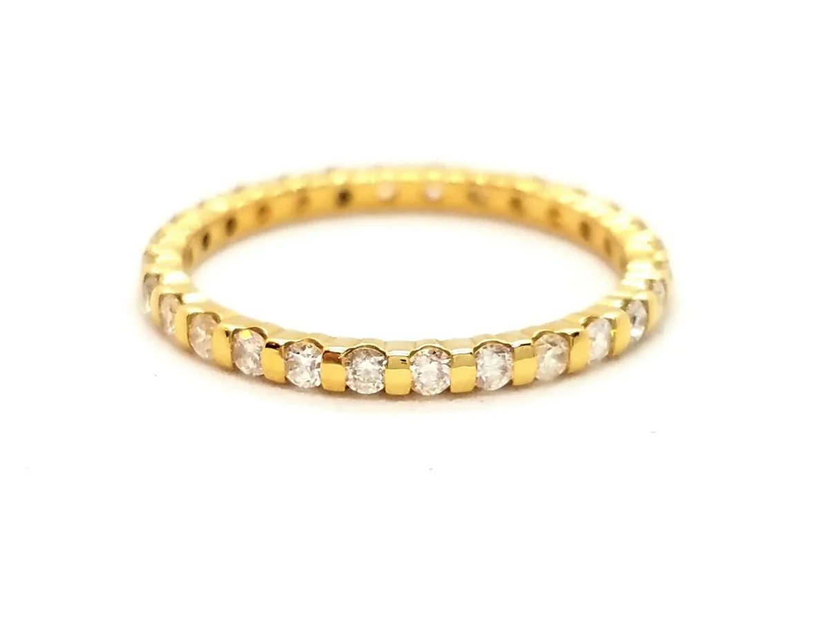 Bague en Or jaune 750 millièmes (18 carats), alliance tour complet serti de 28 diamants taille brillant G-H V-SI pour environ 0,28 ct au total, largeur: 0,17 cm, Tour de doigt: 51, Poids total: 1,47 g, Poinçon tête d’aigle, excellent état