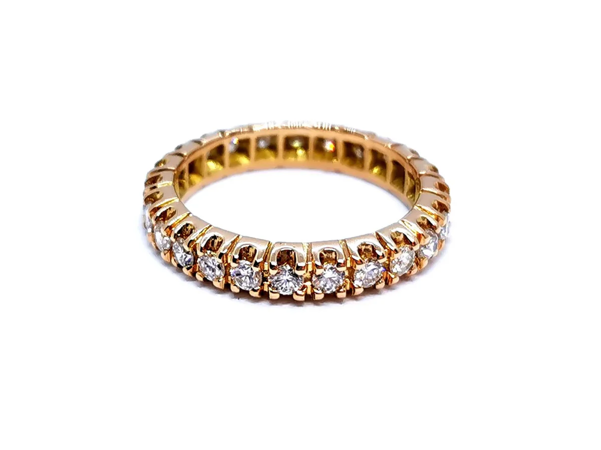 Alliance en or jaune 750 millièmes (18 carats), tour complet de 24 diamants, pour un total d’environ 0,84 ct, G-H /VSI, serti griffe, taille: 49, largeur: 0,35 cm, poids total: 3,22 g, ppoinçon tête d’agle, excellent état