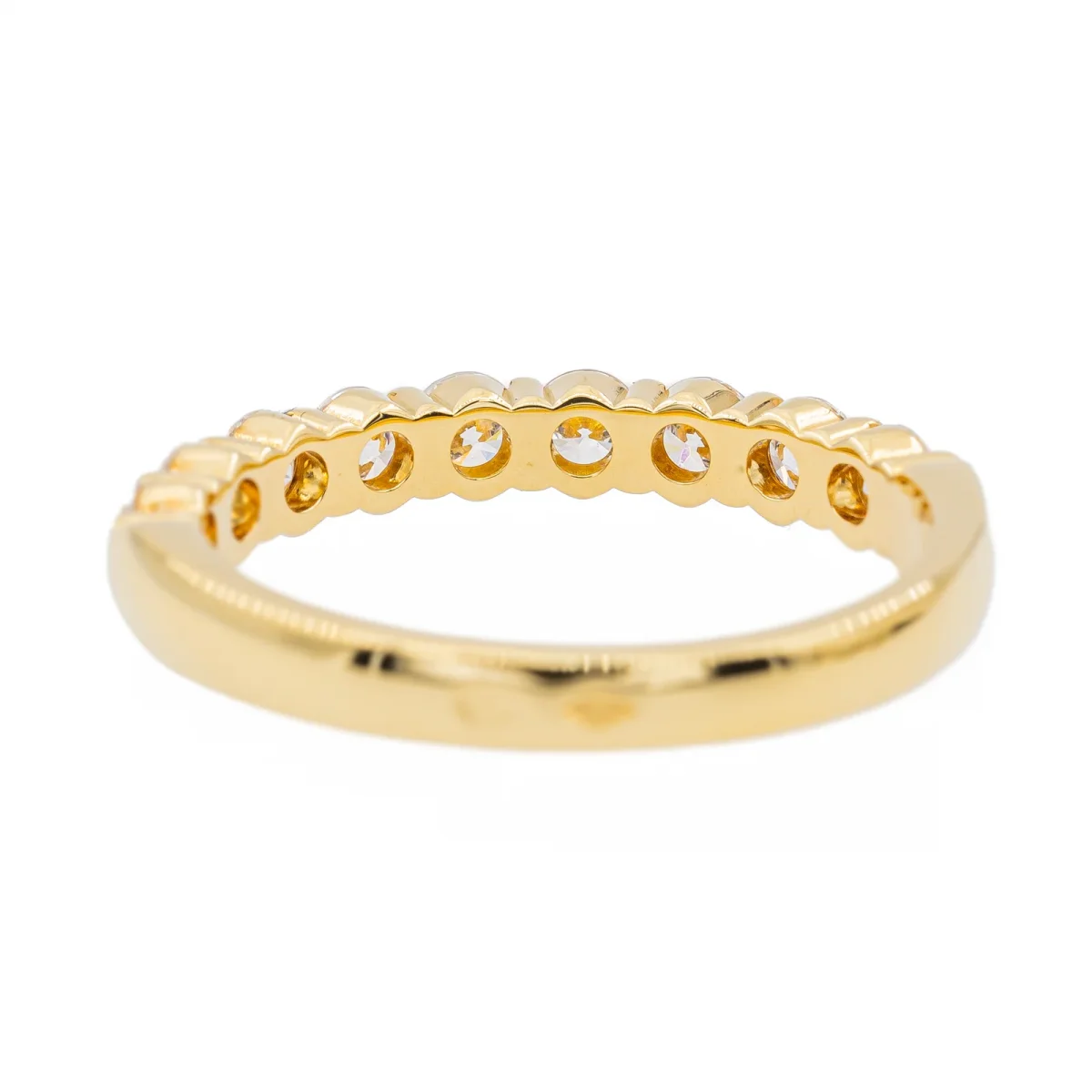 Bague en or jaune 750 millièmes (18 carats) pavée de diamants, 9 diamants taille brillant, environ G-SI, d’un poids total d’environ 0,63 ct, (chaque diamant d’un poids d’environ 0,07 ct), largeur sur le dessus: 0,27 cm, tour de doigt: 49, poids total: 2,48 g, poinçon tête d’aigle, excellent état