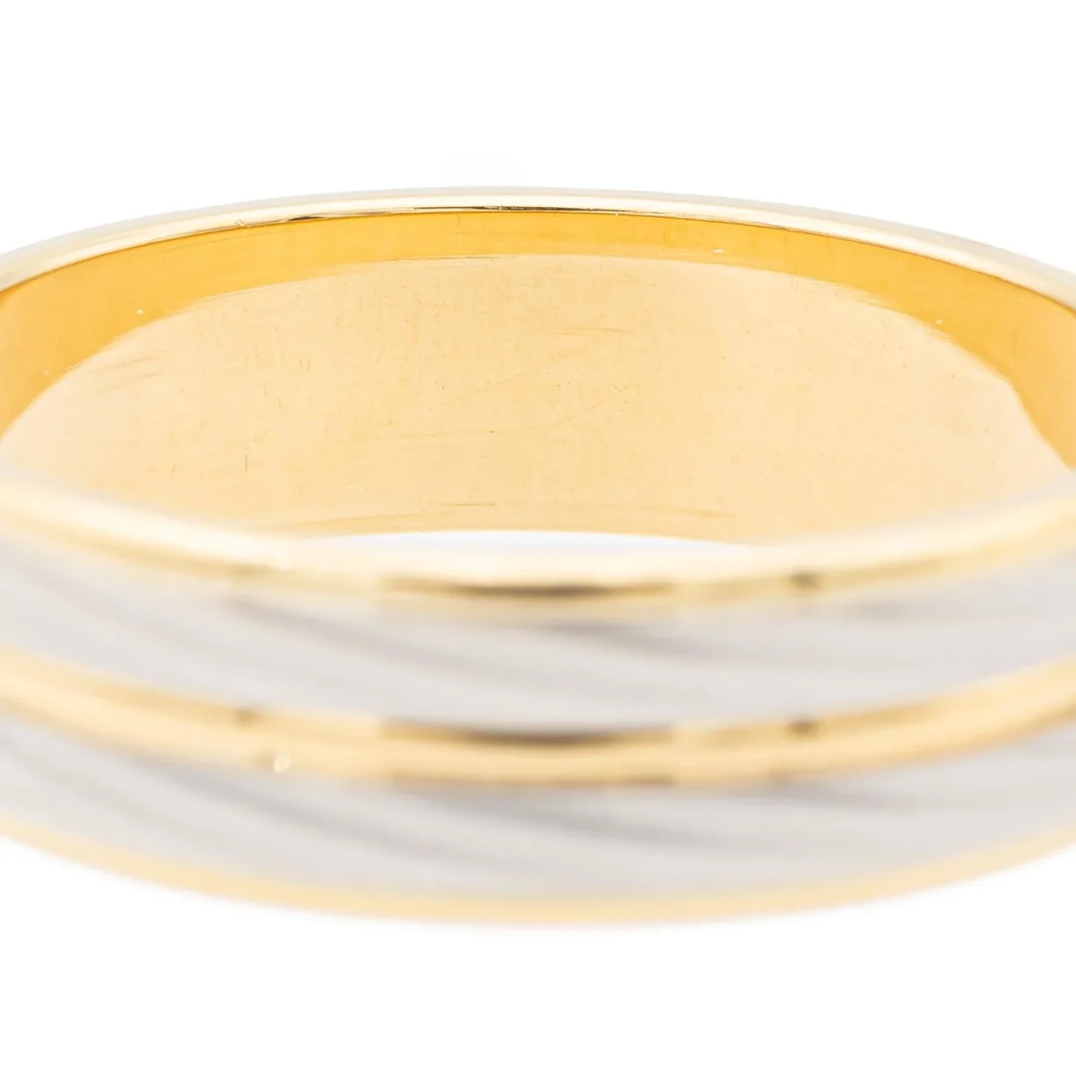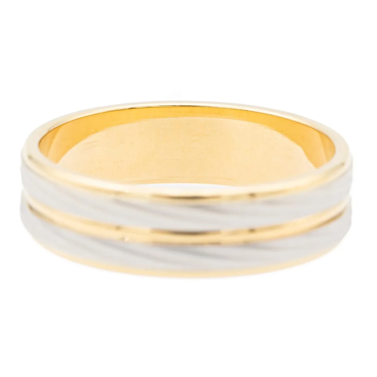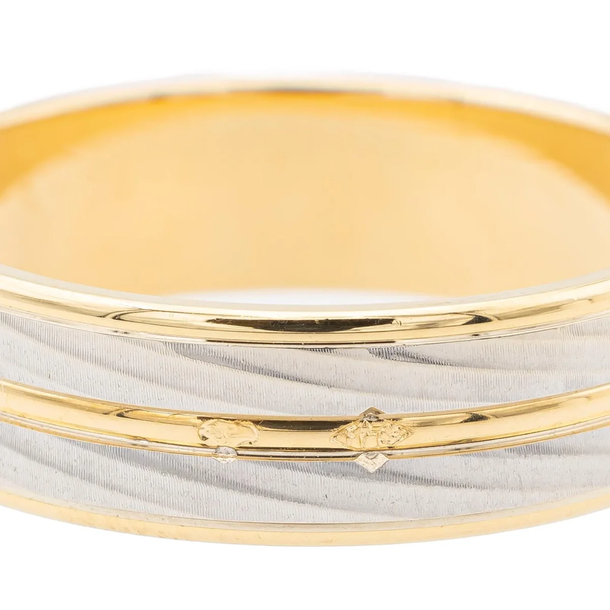 Alliance bicolore, en or jaune et blanc 750 millièmes (18 carats), taille: 62, largeur: 0,6 cm, poids total: 6,89 g, poinçon tête d’aigle, excellent état