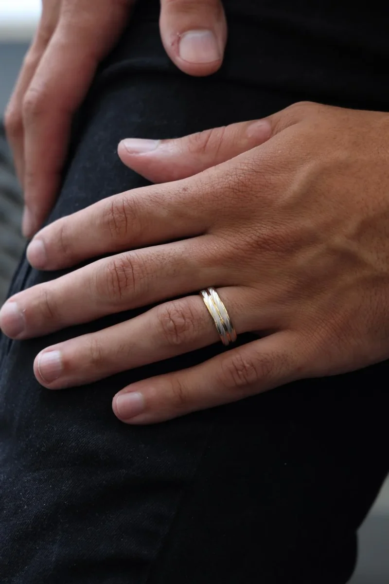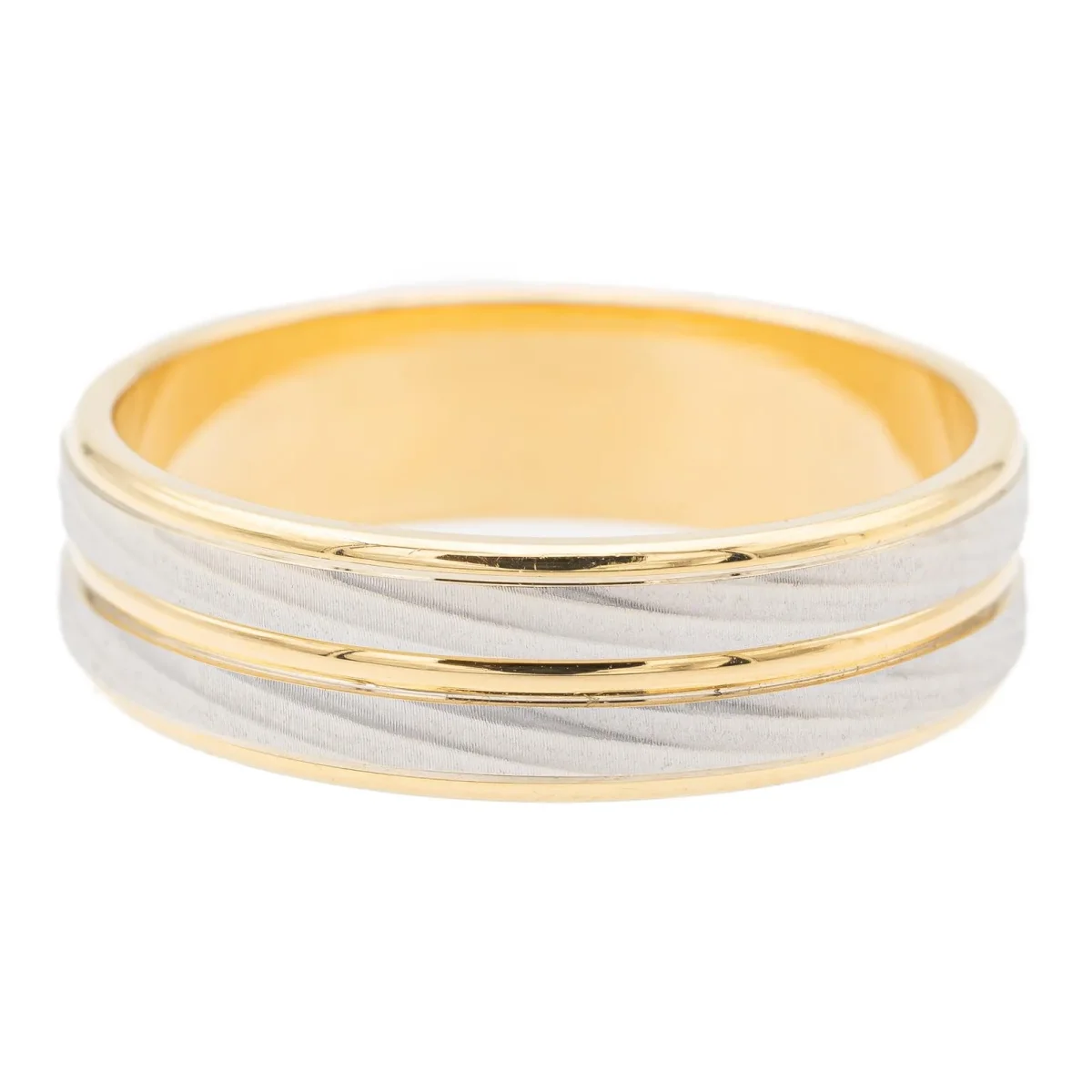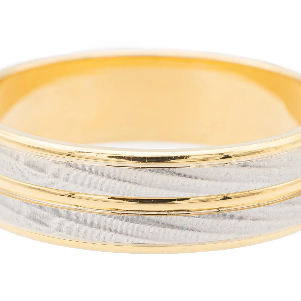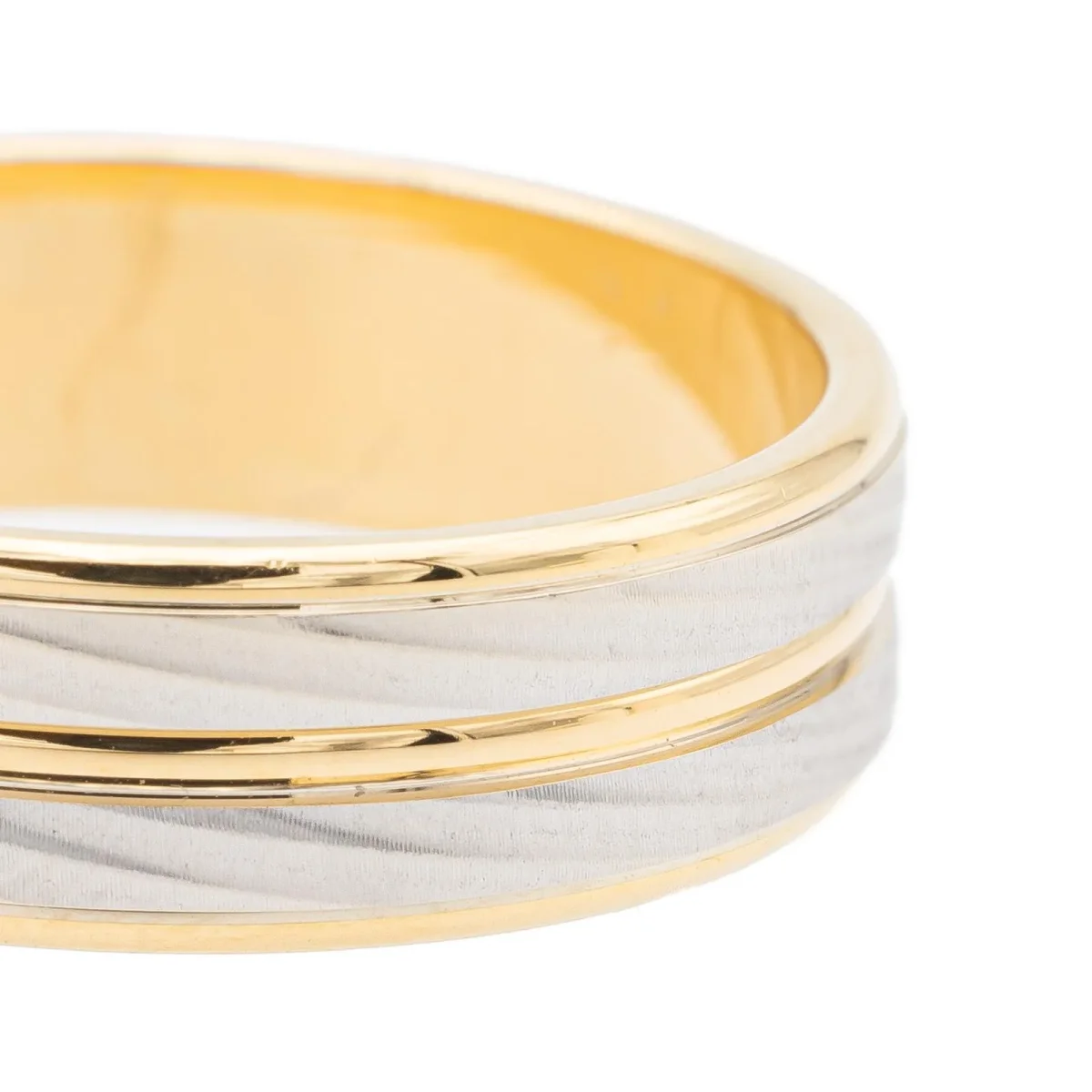 Alliance bicolore, en or jaune et blanc 750 millièmes (18 carats), taille: 62, largeur: 0,6 cm, poids total: 6,89 g, poinçon tête d’aigle, excellent état