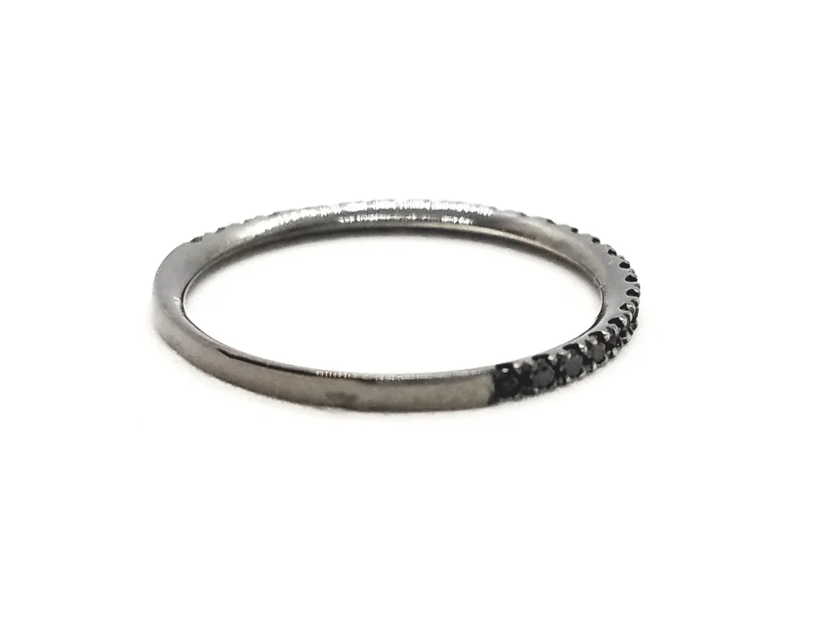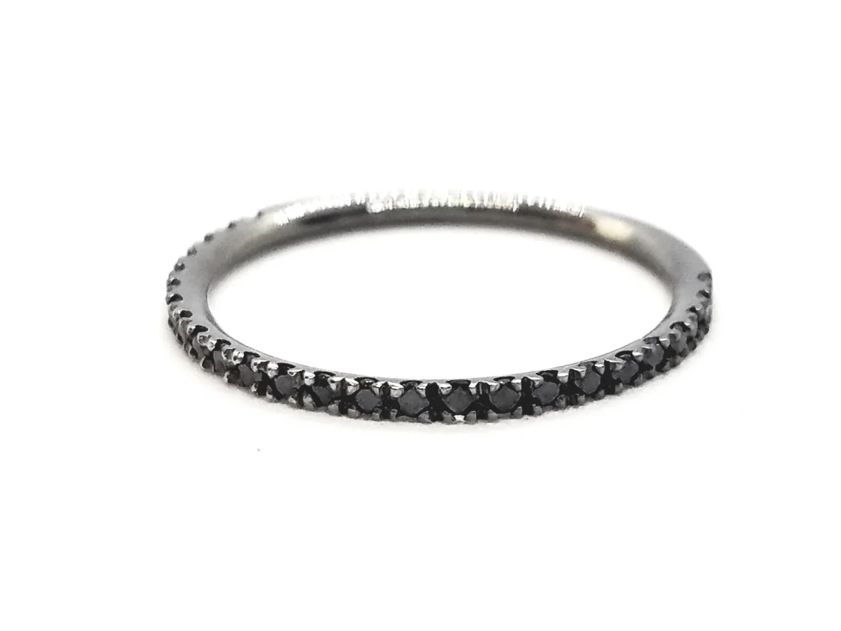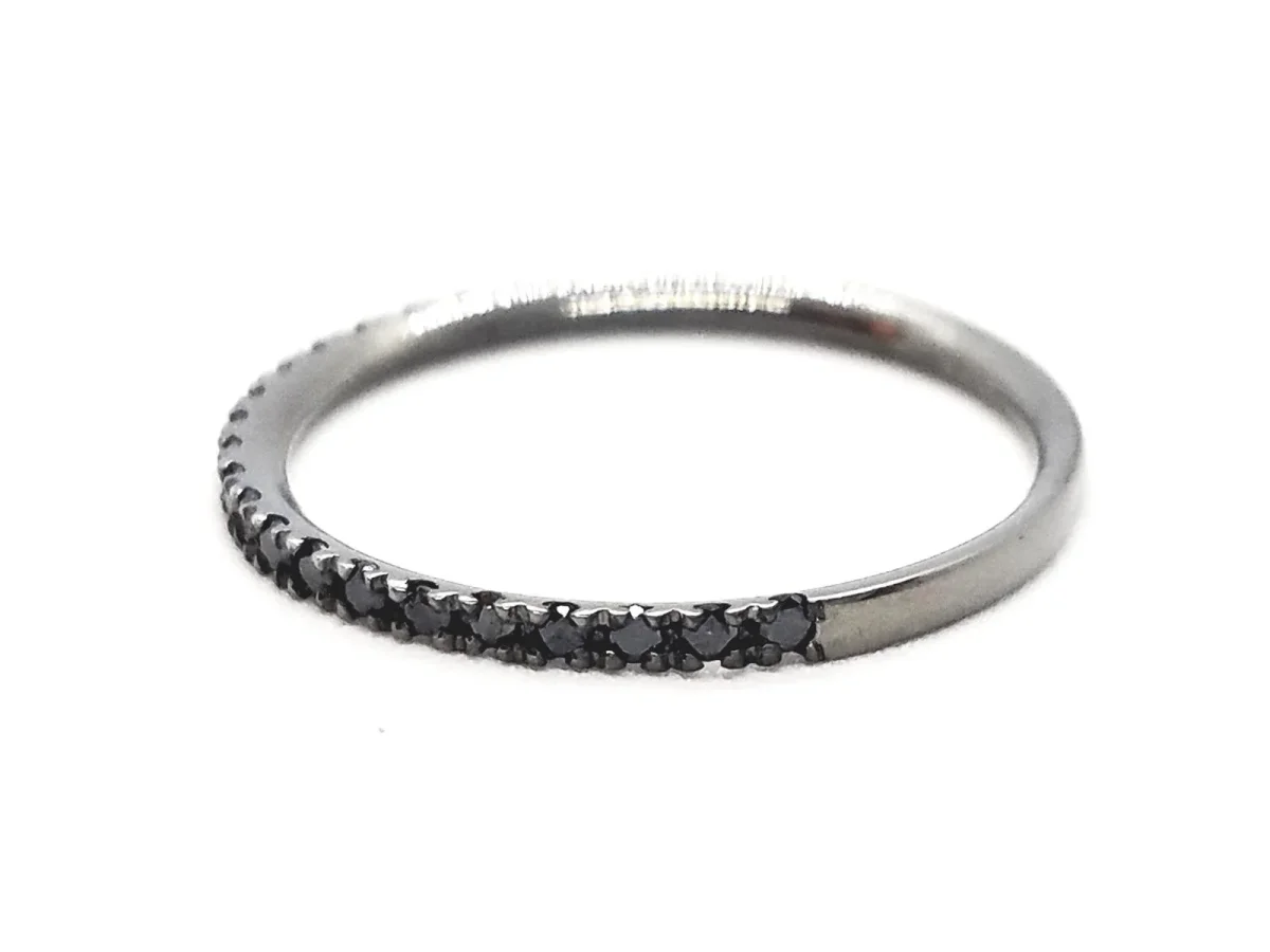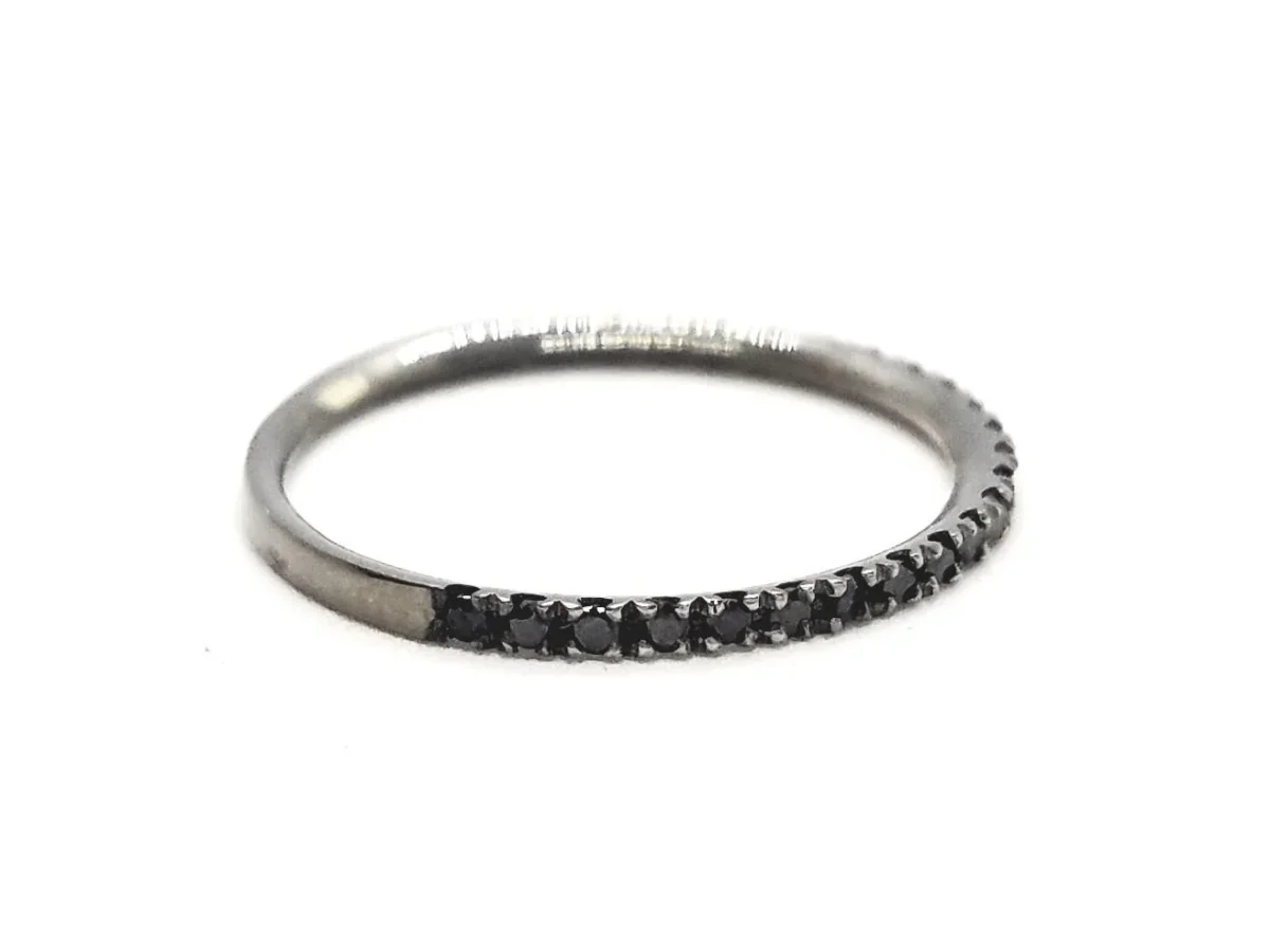 demi alliance en or noir 750 millièmes (18 carats), pavée de 25 diamants taille noirs pour un total de 0,25 ct, tour de doigt: 54, largeur de l’anneau: 0,13 cm, poids total: 1,02 g, poinçon tête d’aigle, état neuf