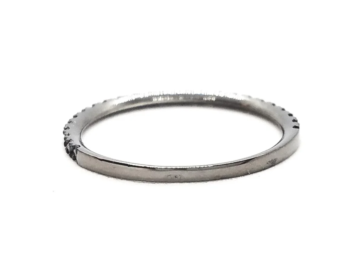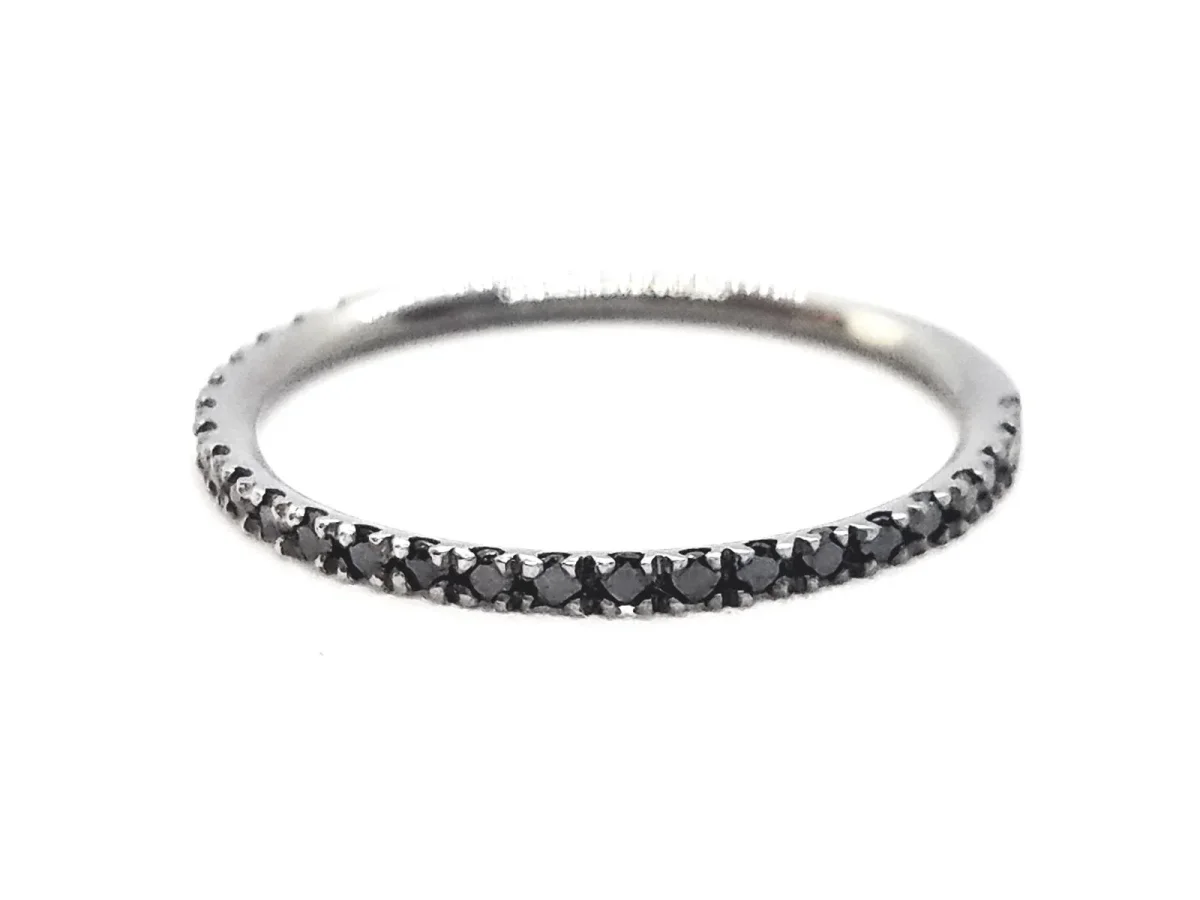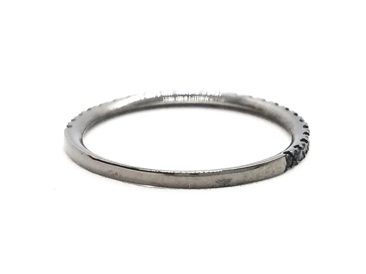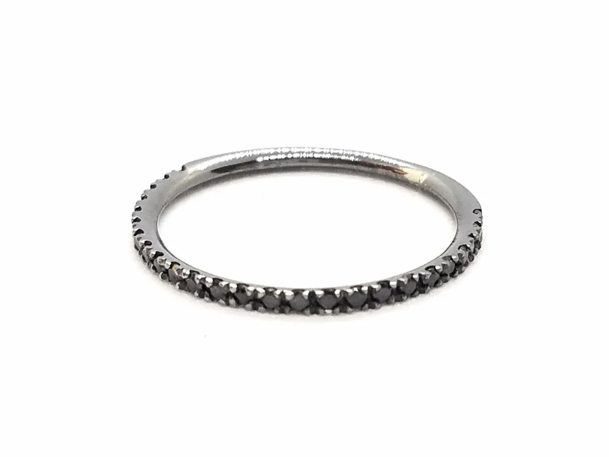 demi alliance en or noir 750 millièmes (18 carats), pavée de 25 diamants taille noirs pour un total de 0,25 ct, tour de doigt: 54, largeur de l’anneau: 0,13 cm, poids total: 1,02 g, poinçon tête d’aigle, état neuf