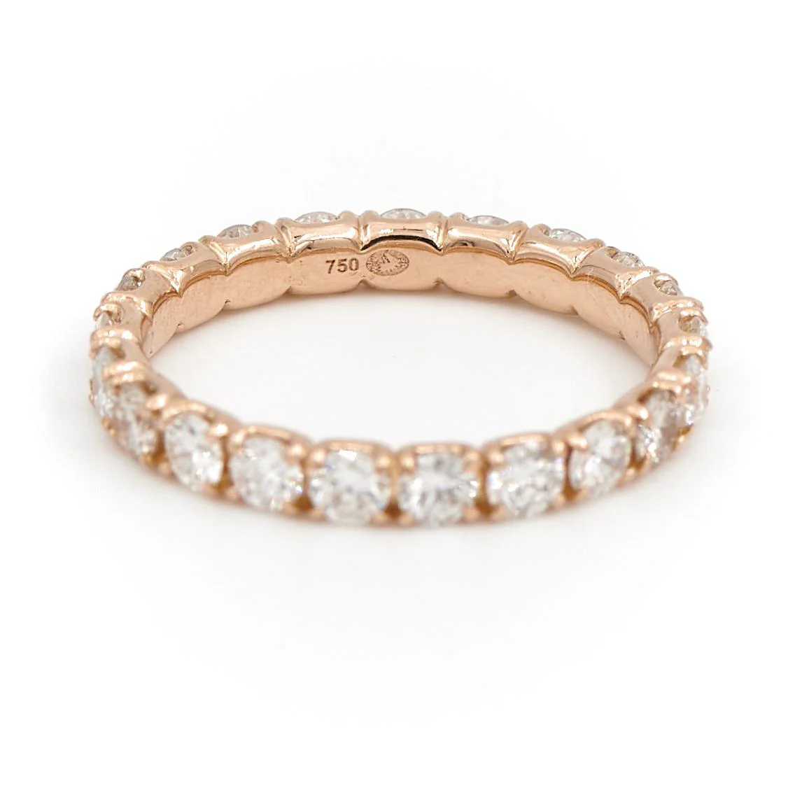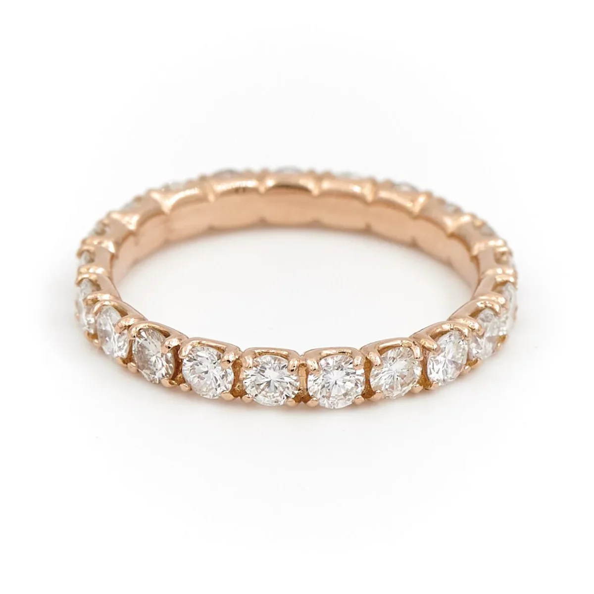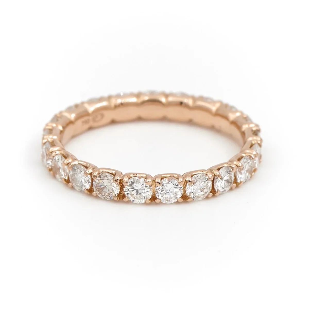Alliance en or rose 750 millièmes (18 carats) testé, 22 diamants taille brillant, environ G-VS de 0,07 ct chacun, poids total diamants : 1,54 ct, largeur sur le dessus : 0,26 cm, tour de doigt : 55, poids total : 2,48 g, excellent état