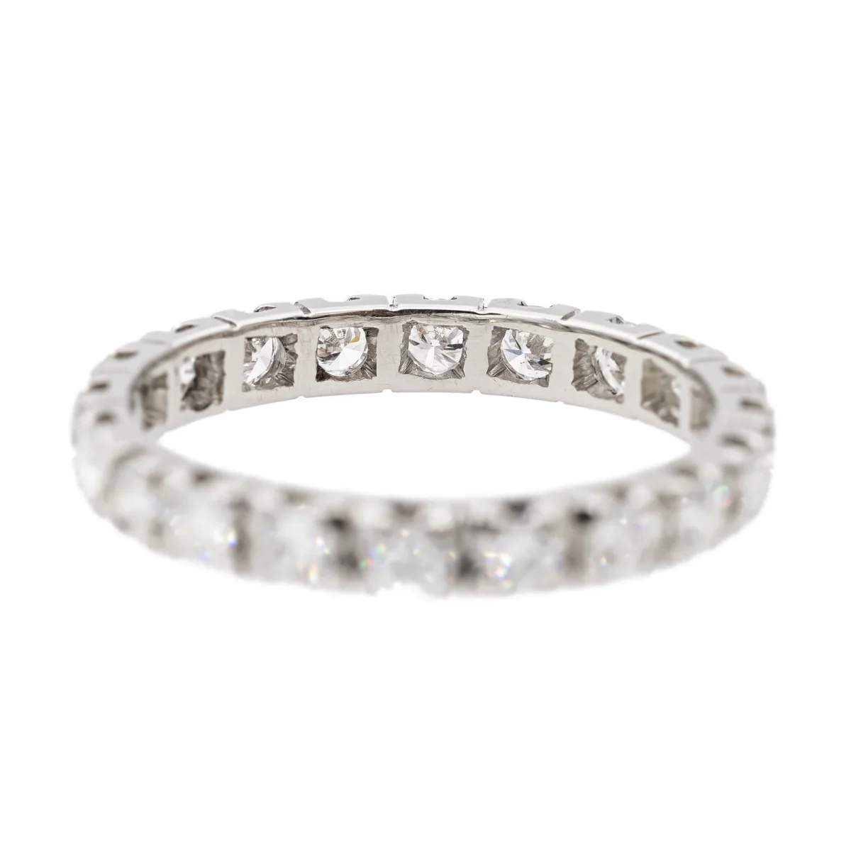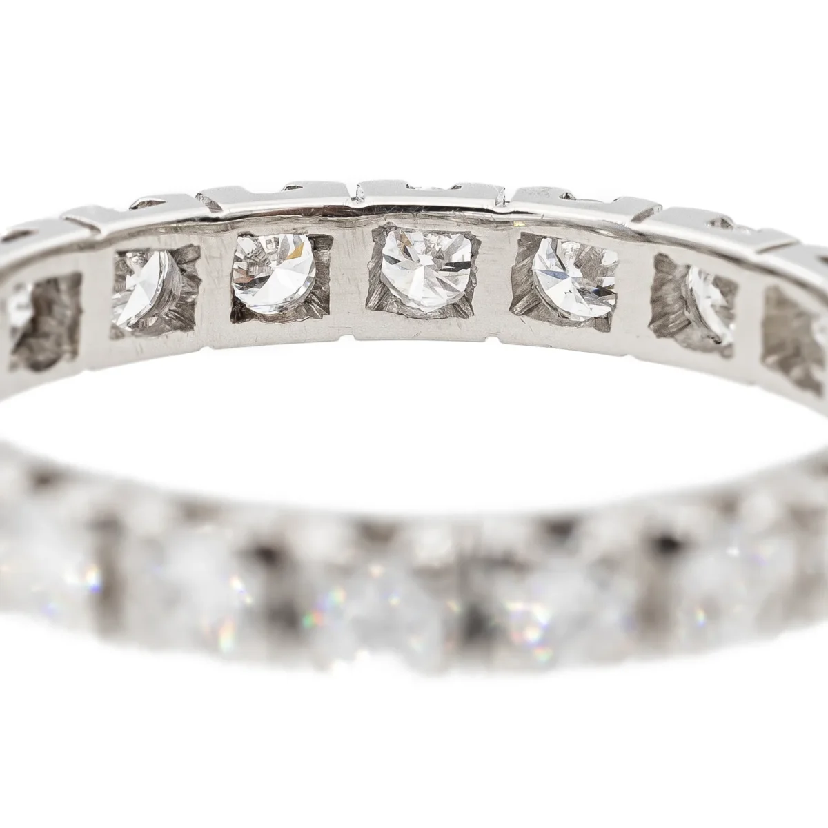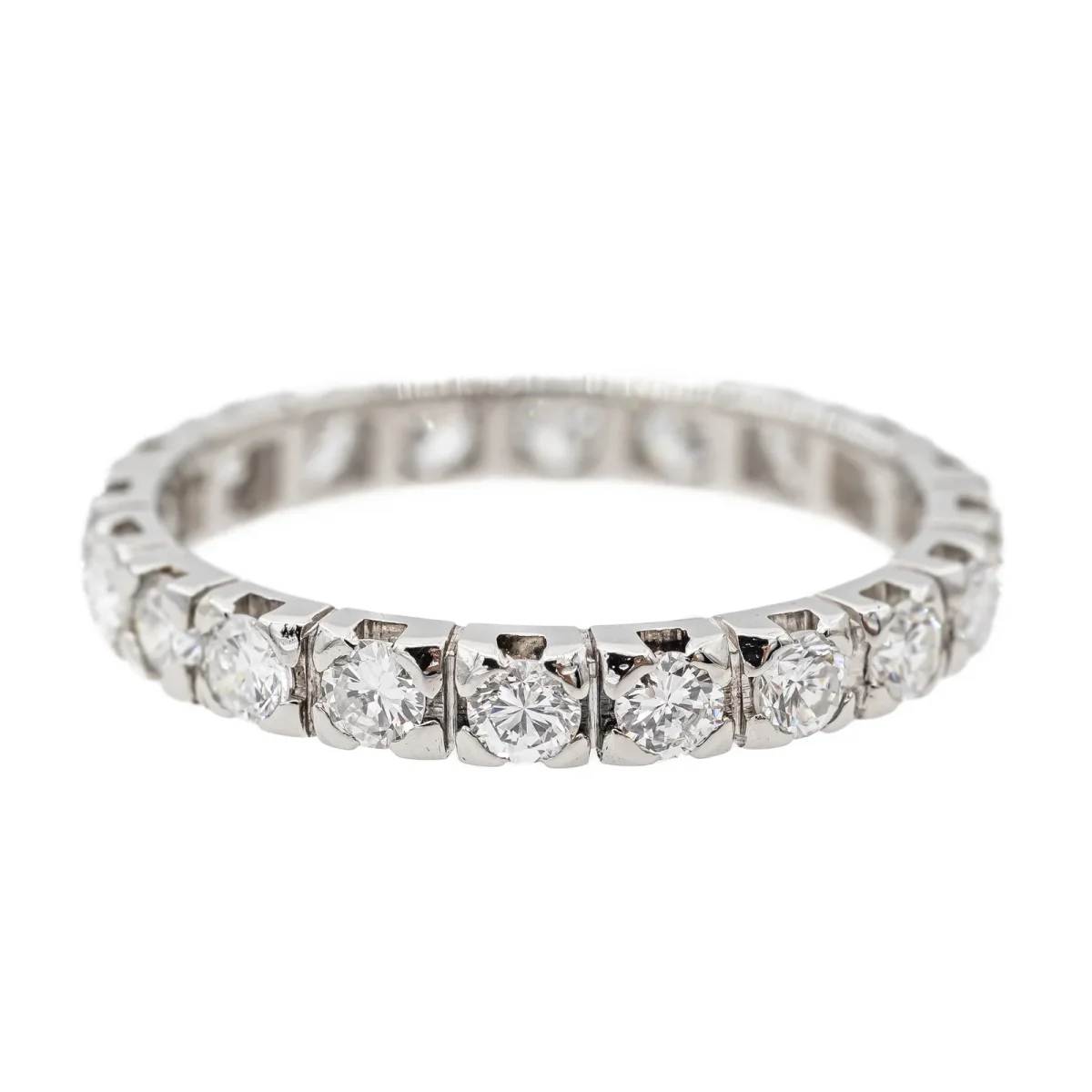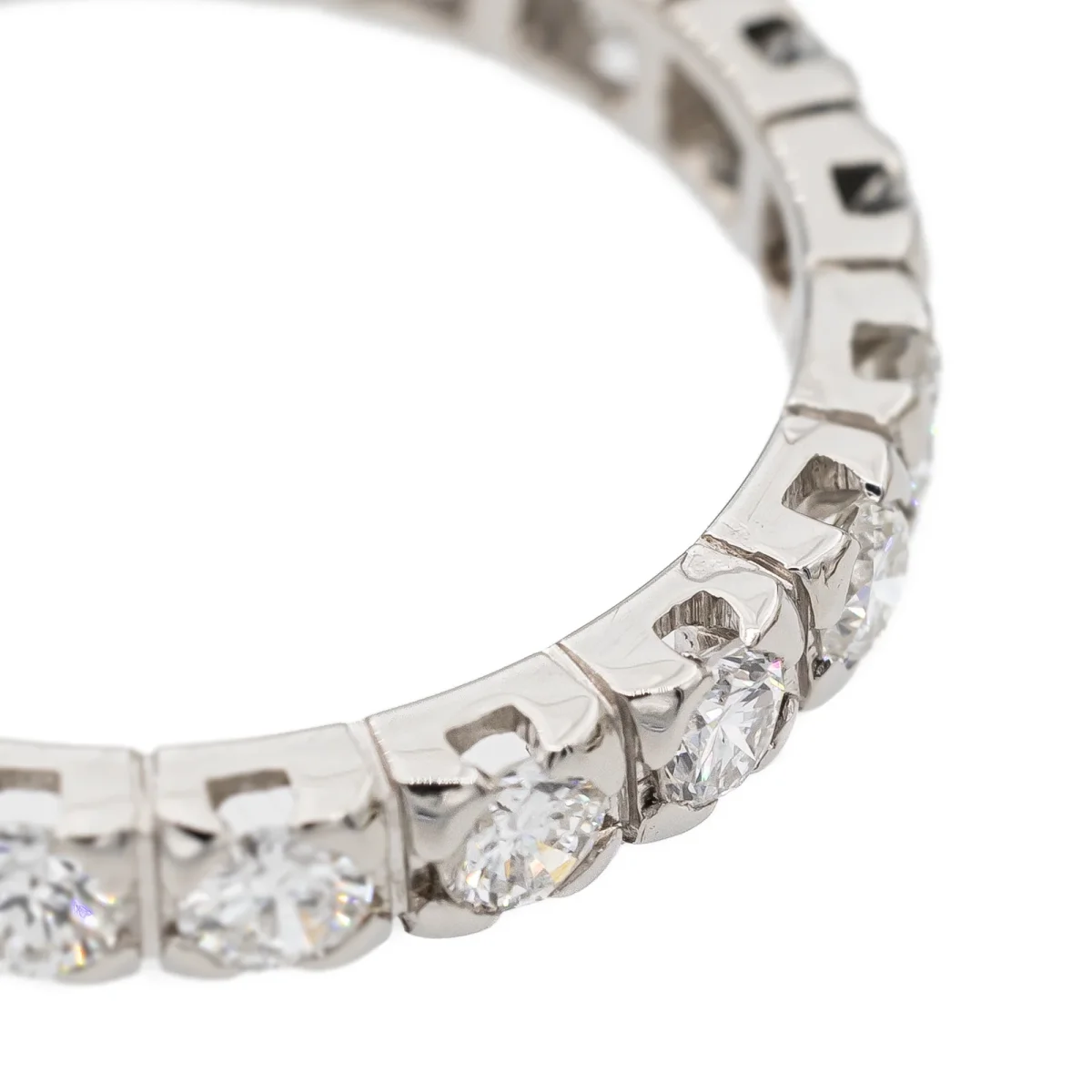 Alliance tour complet en platine 950 millièmes, sertie de 20 diamants taille brillant environ G-SI, d’un poids total d’environ : 1,20 cts, (chaque diamant d’un poids d’environ 0.06 ct chacun), largeur sur le dessus: 0,28 cm, tour de doigt: 55, poids total: 3.21 g, poinçon tête de chien, excellent état