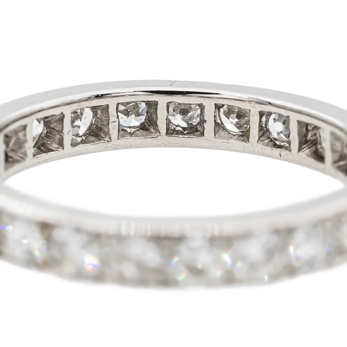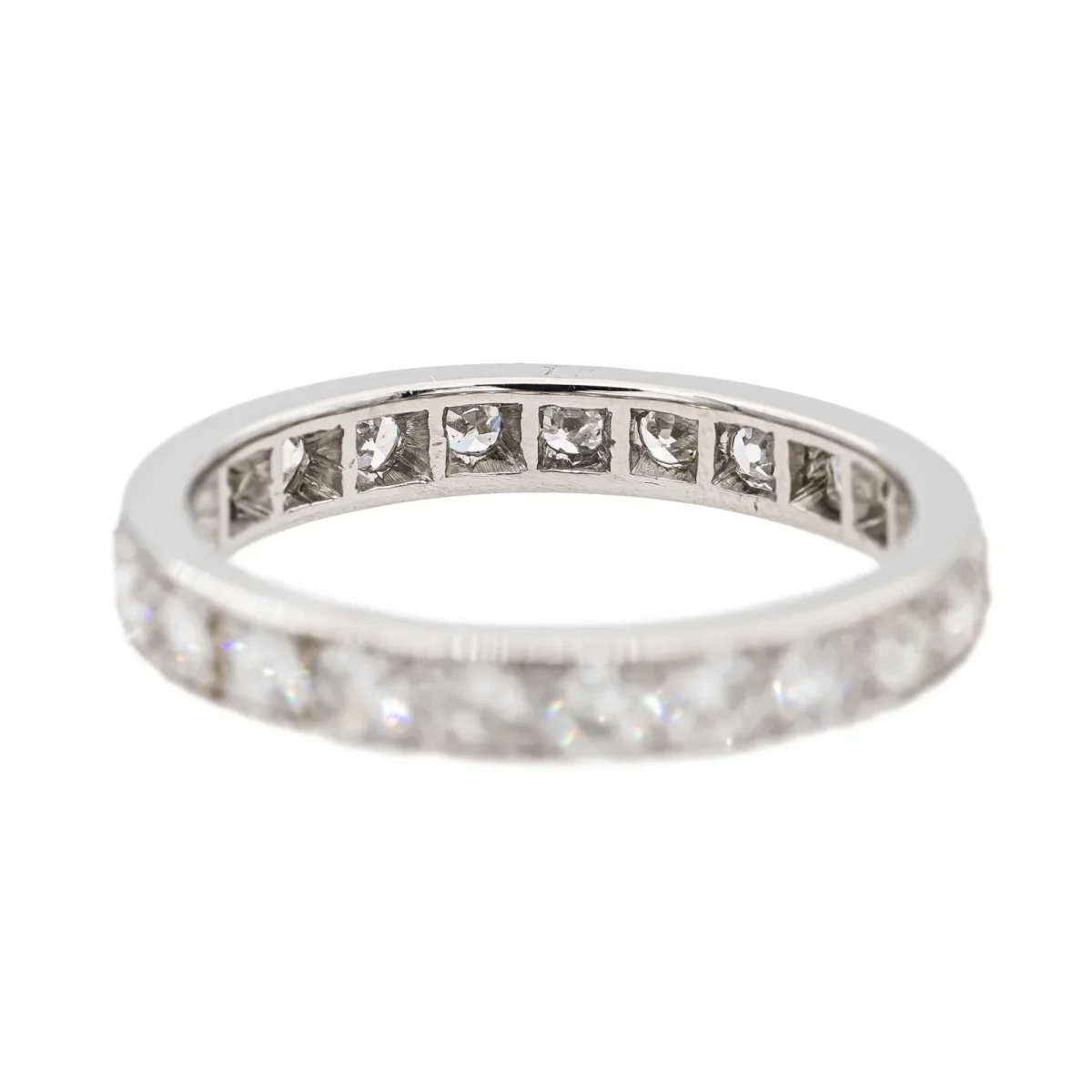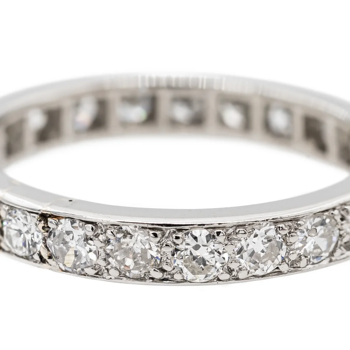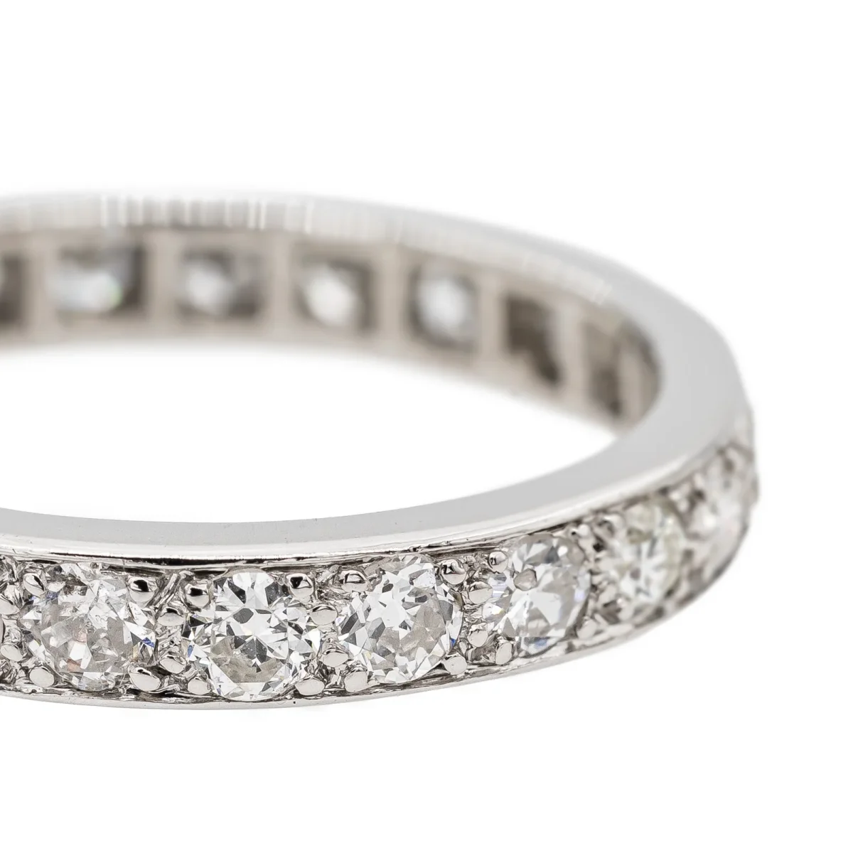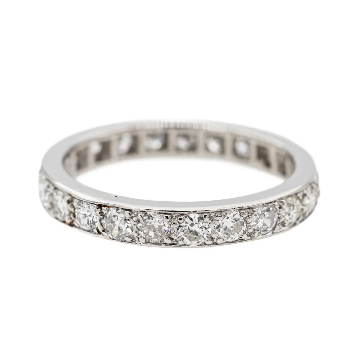 Alliance tour complet en platine 950 millièmes, sertie de 23 diamants taille brillant environ H-SI, (d’environ 0,055 ct chacun), d’un poids total d’environ 0,69 ct, largeur sur le dessus: 0,30 cm, tour de doigt: 52, poids total: 3,88 g, poinçon tête de chien, excellent état