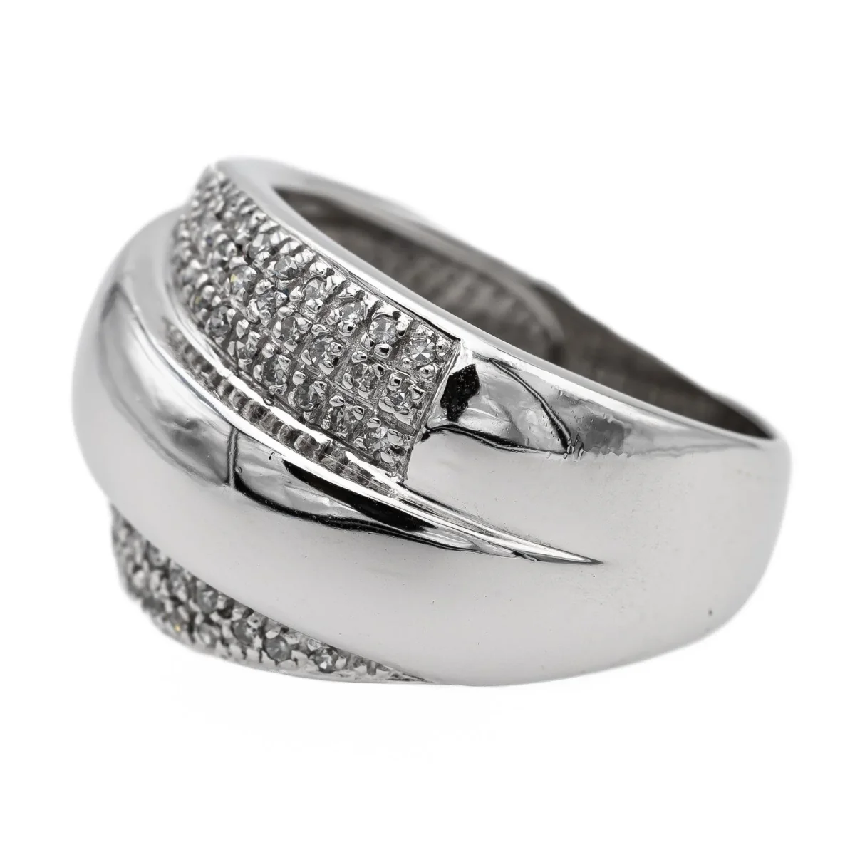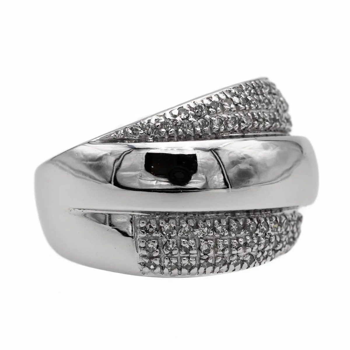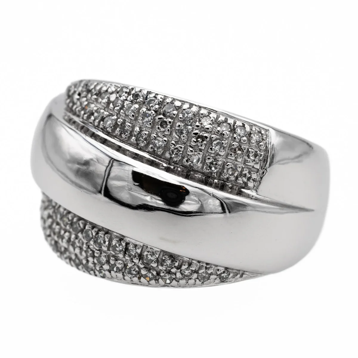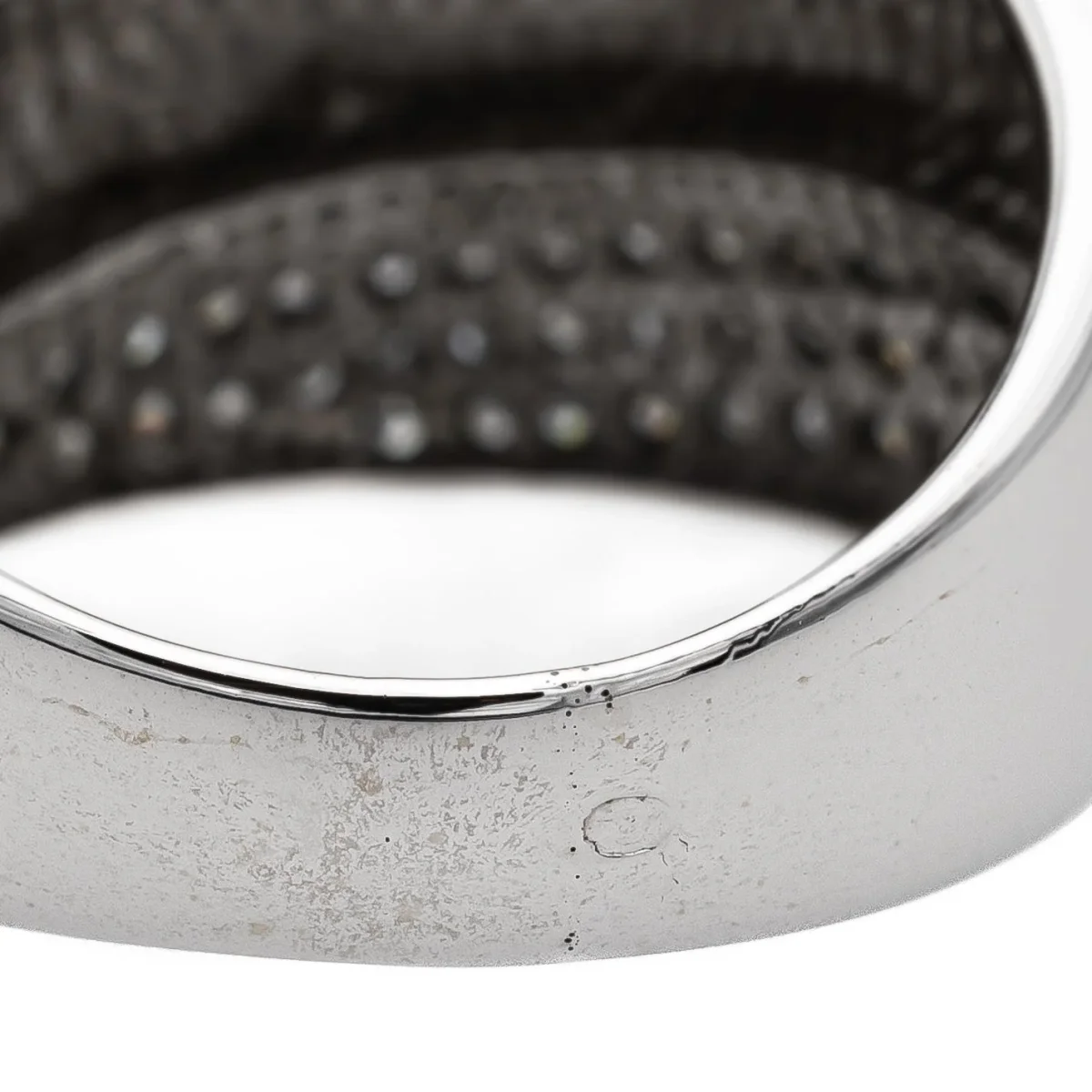 Bague bandeau en or blanc 750 millièmes (18 carats), sertie de 76 diamants taille huit/huit, estimés H/SI, d’environ 0,005 ct chacun, poids total diamants: environ 0,38 ct, largeur sur le dessus: 1,52 cm, tour de doigt: 56, poids total: 9,31 g, poinçon hibou, excellent état