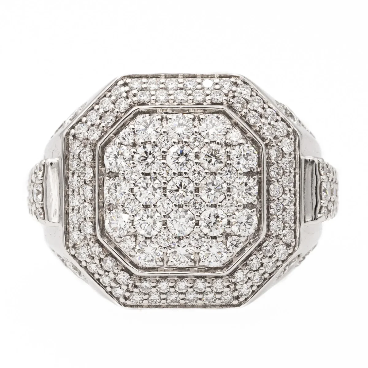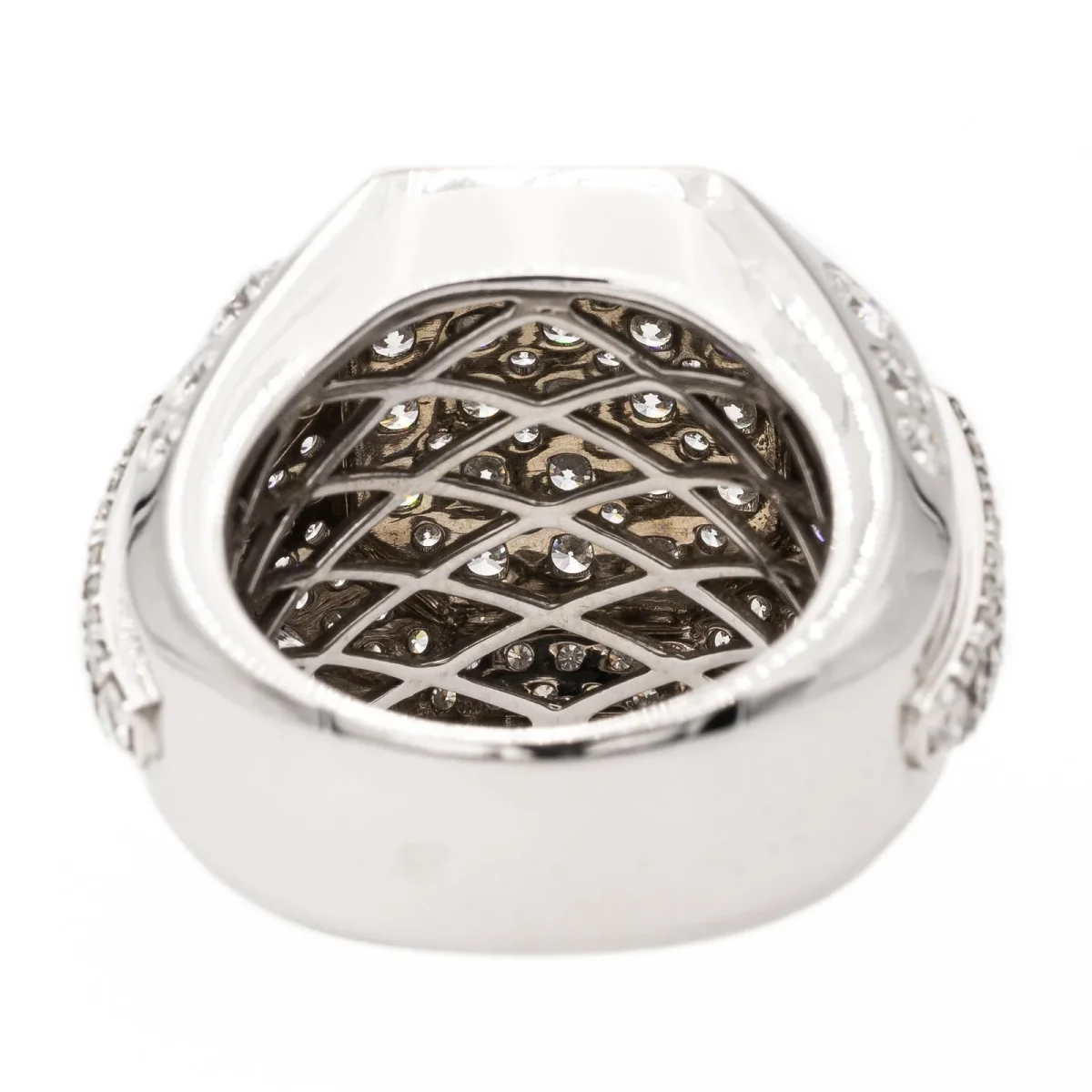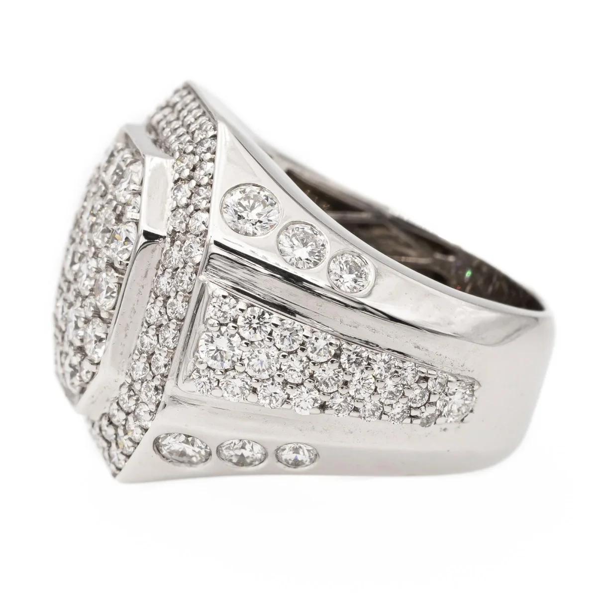Bague cocktail en or blanc 750 millièmes (18 carats), sertie d’un pavage de diamants taille brillant environ G/VS, poids total diamants: environ 2,20 cts, largeur sur le dessus: 1,9 cm, tour de doigt: 51, poids total: 14,29 g, poinçon hibou, excellent état