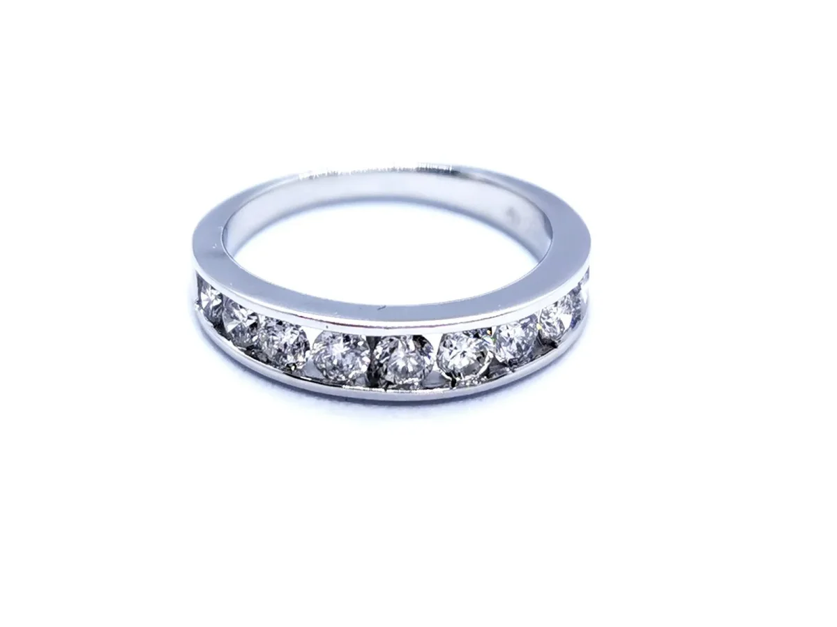 Bague en or blanc 750 millièmes (18 carats), demie alliance sertie de 10 diamants, taille brillant G-H VSI pour environs 0,60 ct au total, taille: 50, largeur sur le dessus: 0,41 cm, poids total: 3,21 g, poinçonné, excellent état