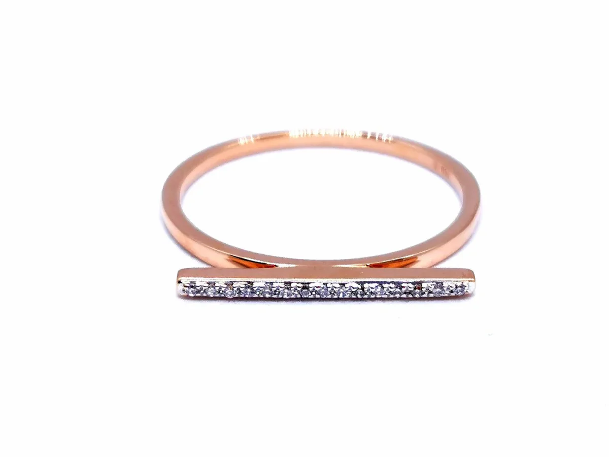 Bague en rose 750 millièmes (18 carats) testé, sertie d’une ligne de 15 diamants, taille brillant H-SI pour environ 0,075 ct au total, taille: 56, dimensions de la ligne pavée: 1,73 cm x 0,13 cm, poids total: 1,73 g, excellent état