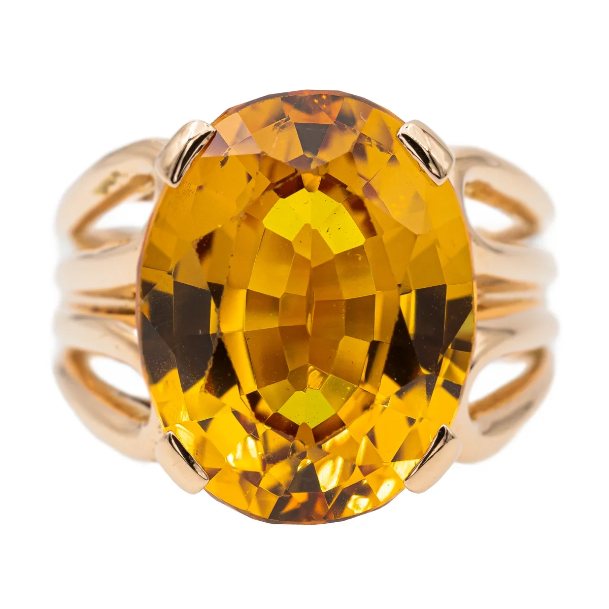 Bague en or rose 750 millièmes (18 carats), sertie d’une citrine ovale d’environ 7,91 cts, tour de doigt: 54, Dimensions sur le dessus: 1,62 x 1,26 cm. Poids total: 9,36 g, Poinçon hibou, Excellent état