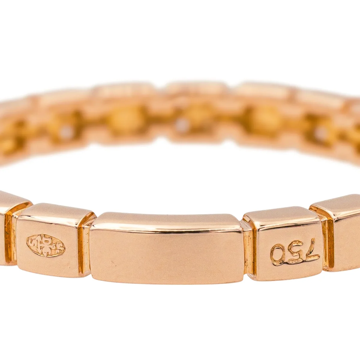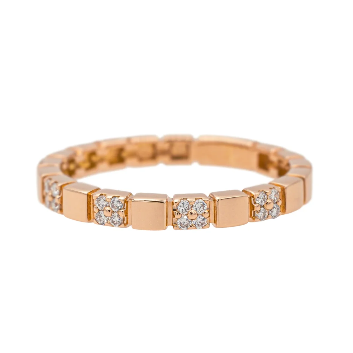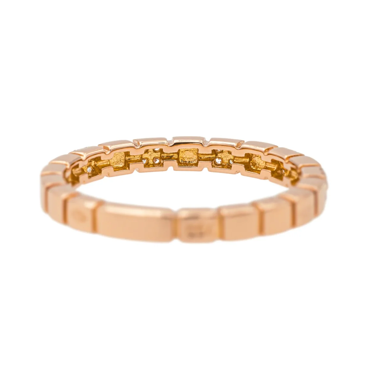 Bague en or rose 750 millièmes (18 carats) testé, sertie de diamants taille brillant, environ H-VS, d’un poids total d’environ 0,10 ct, (chaque diamant d’un poids d’environ 0,005 ct), largeur sur le dessus : 0,24 cm, tour de doigt : 53, poids total : 2,75 g, excellent état