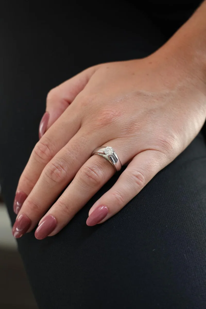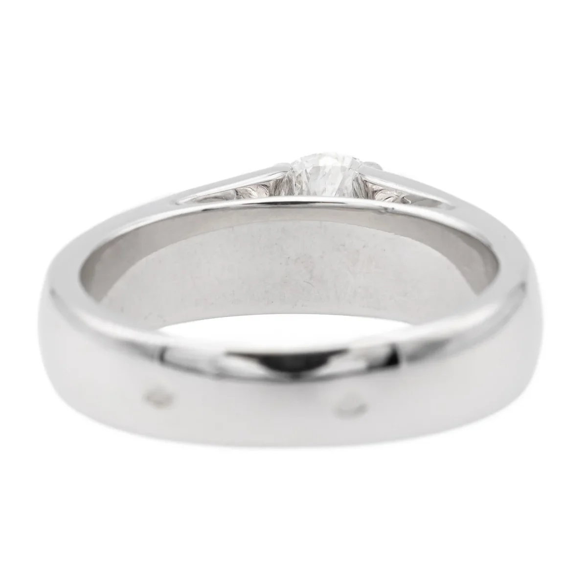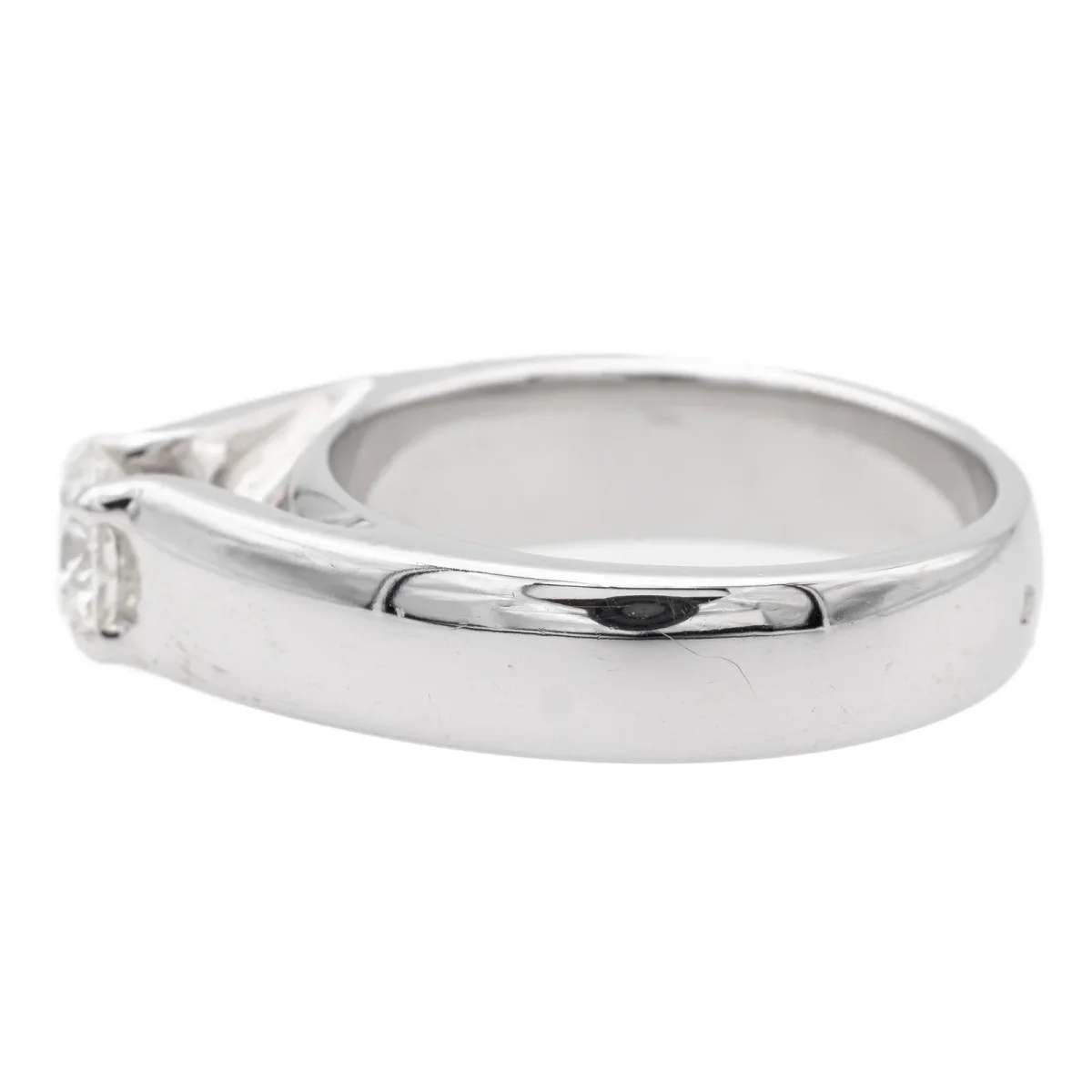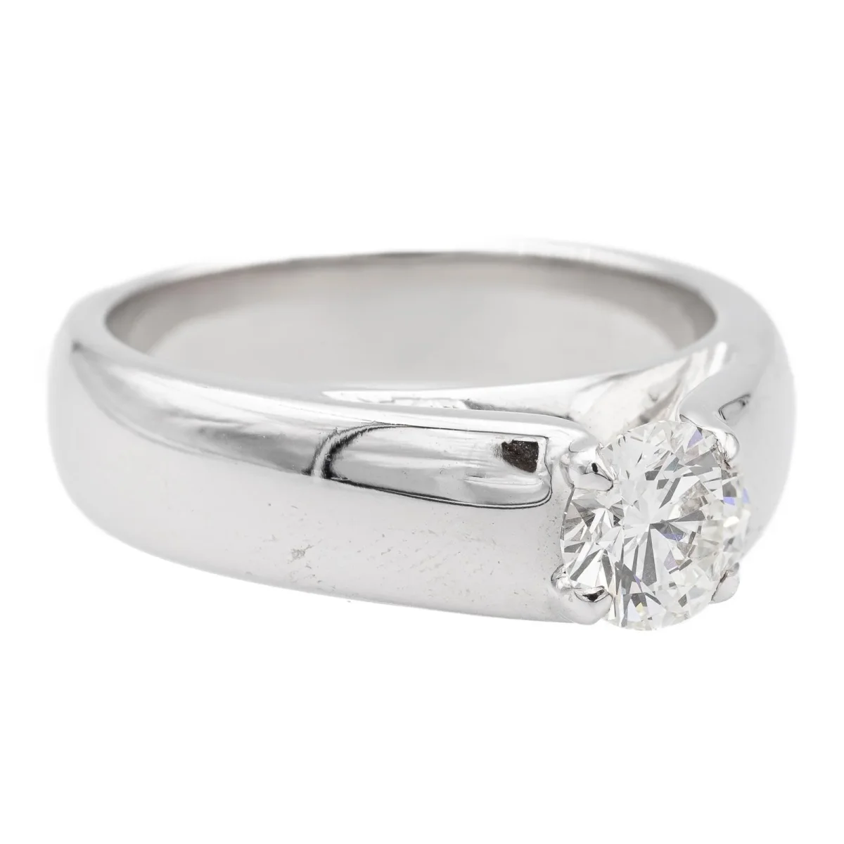 Solitaire en or blanc 750 millièmes (18 carats), serti d’un diamant taille brillant de 0,70 ct H-SI2 certifié GIA, tour de doigt: 54, largeur de l’anneau: 0,52 cm, poids total: 9,56 g, poinçon tête d’aigle, état neuf