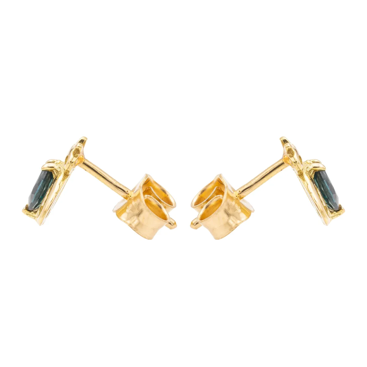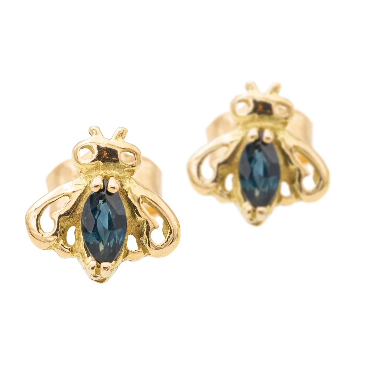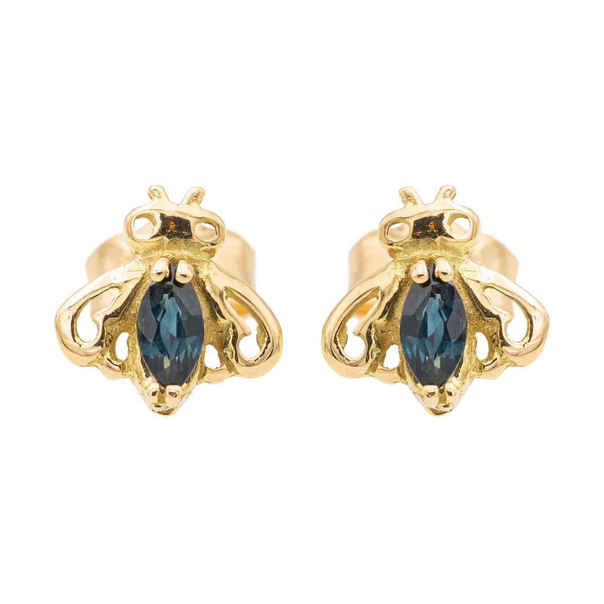 Boucles d’oreilles puces enfant en or jaune 750 millièmes (18 carats) testé, abeilles serties de saphir, serties de deux saphirs taille marquise, d’un poids total d’environ 0,08 ct, chaque saphir d’environ 0,04 ct, dimensions: 0,75 cm x 0,72 cm, poids total: 0,95 g, excellent état