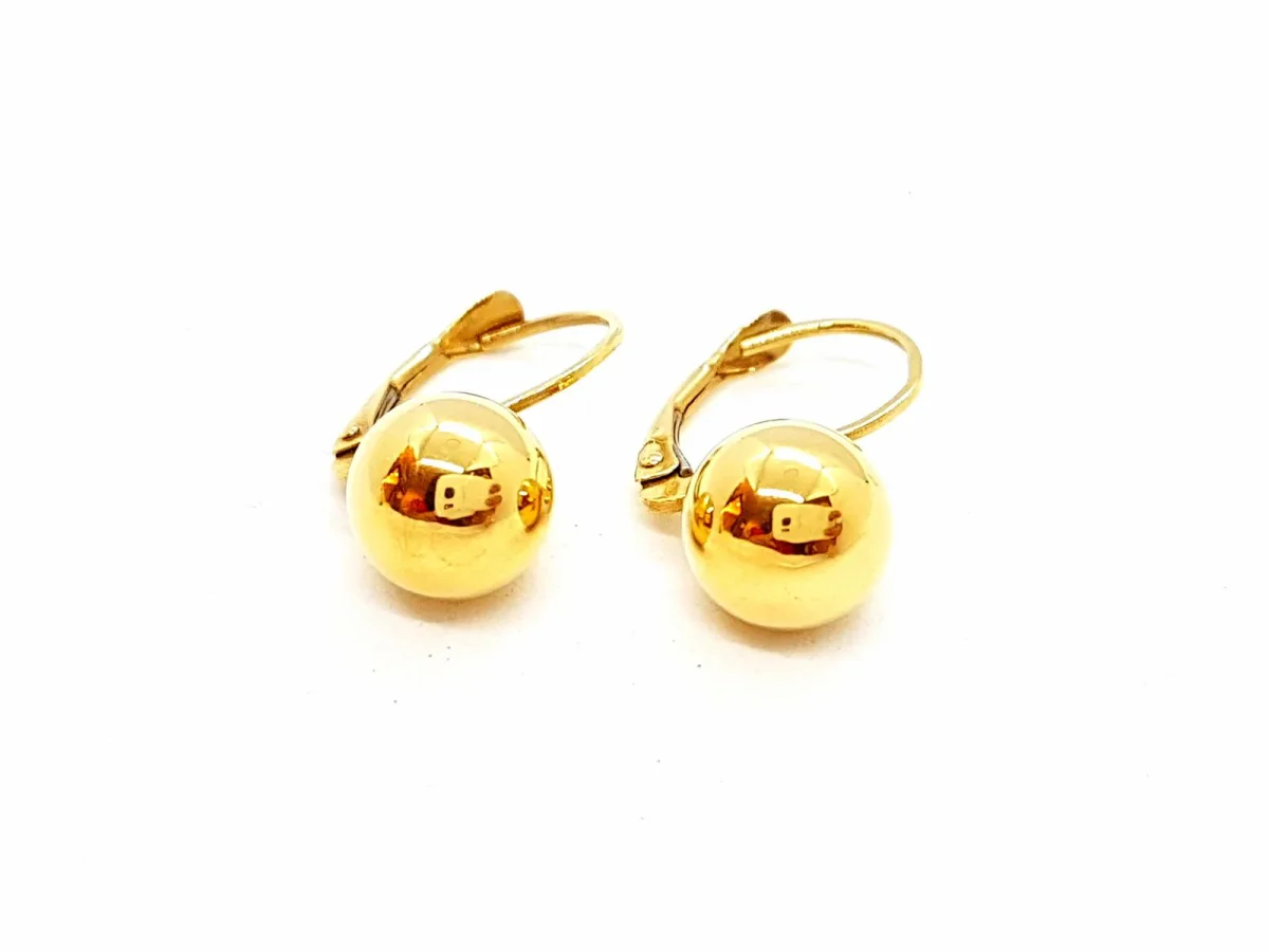 Boucles d’oreilles en or jaune 750 millièmes (18 carats), modèle boule, diamètre de la boule: 0,8 cm, hauteur totale: 1,3 cm, poids total: 2,15 g, état neuf